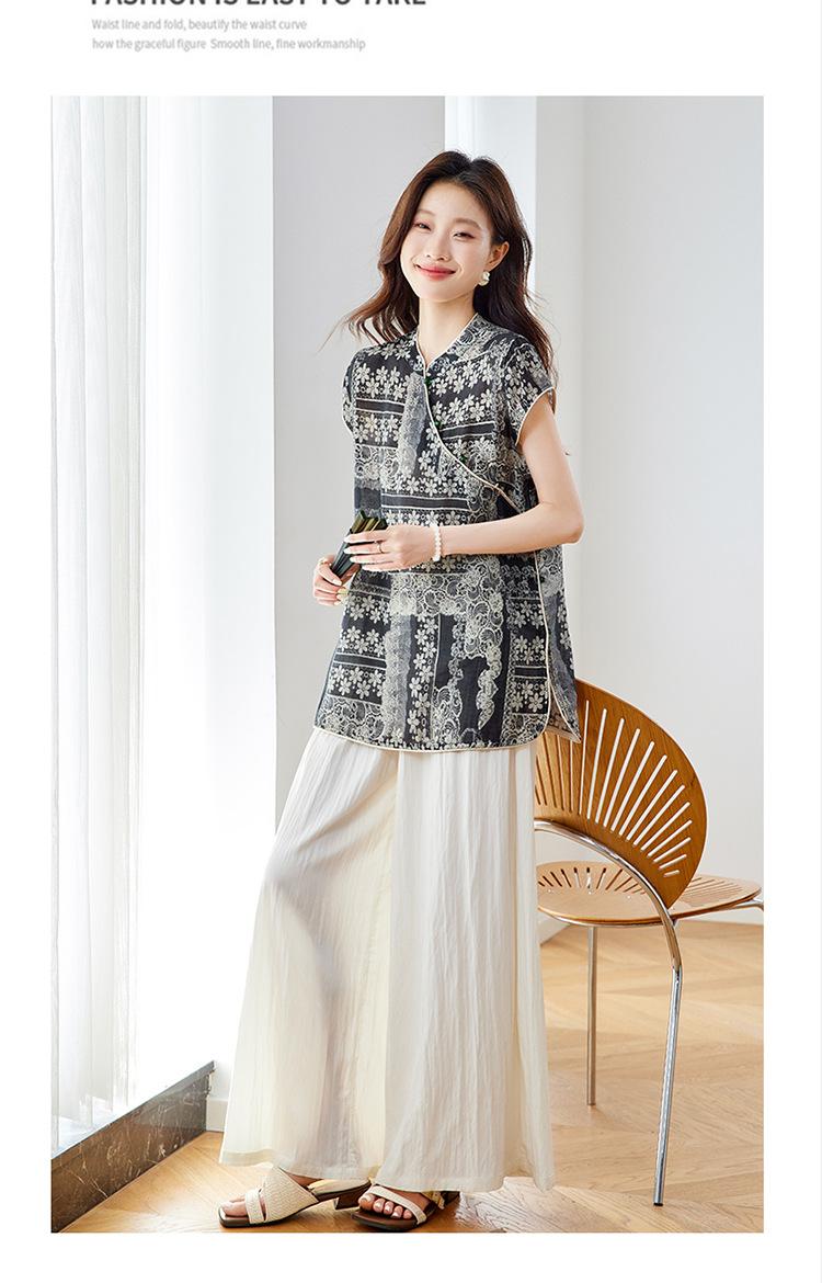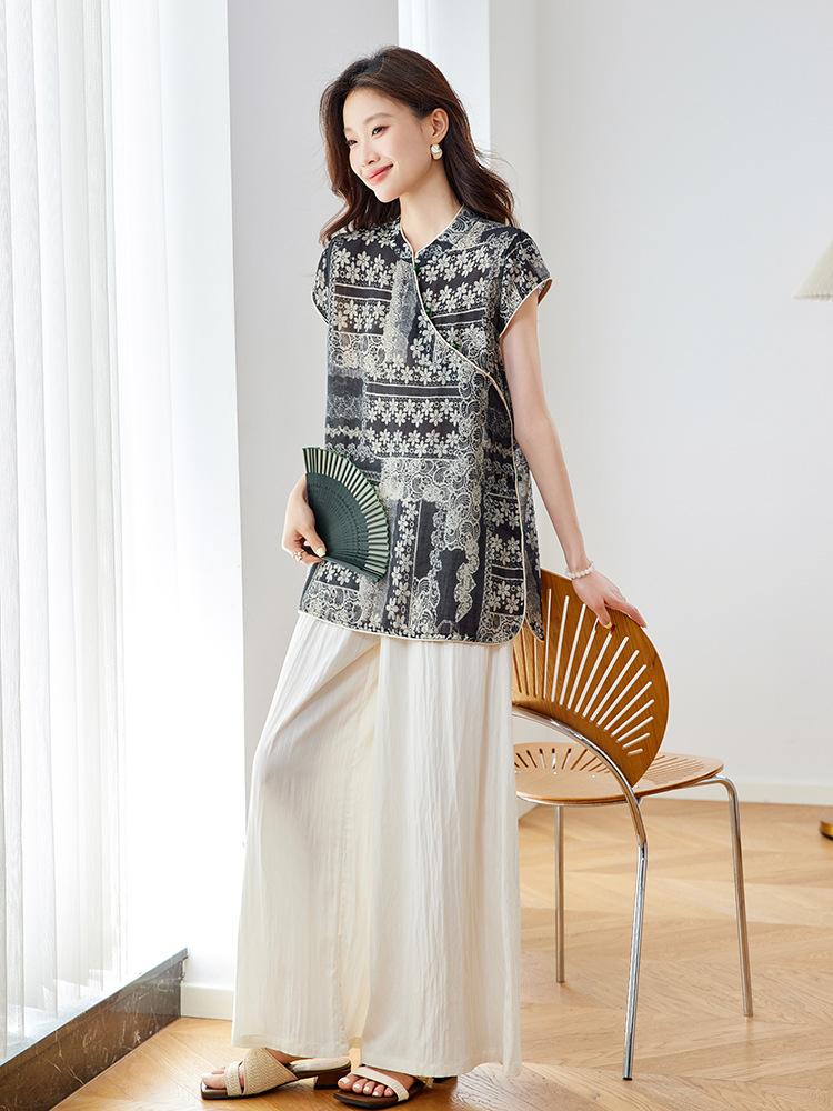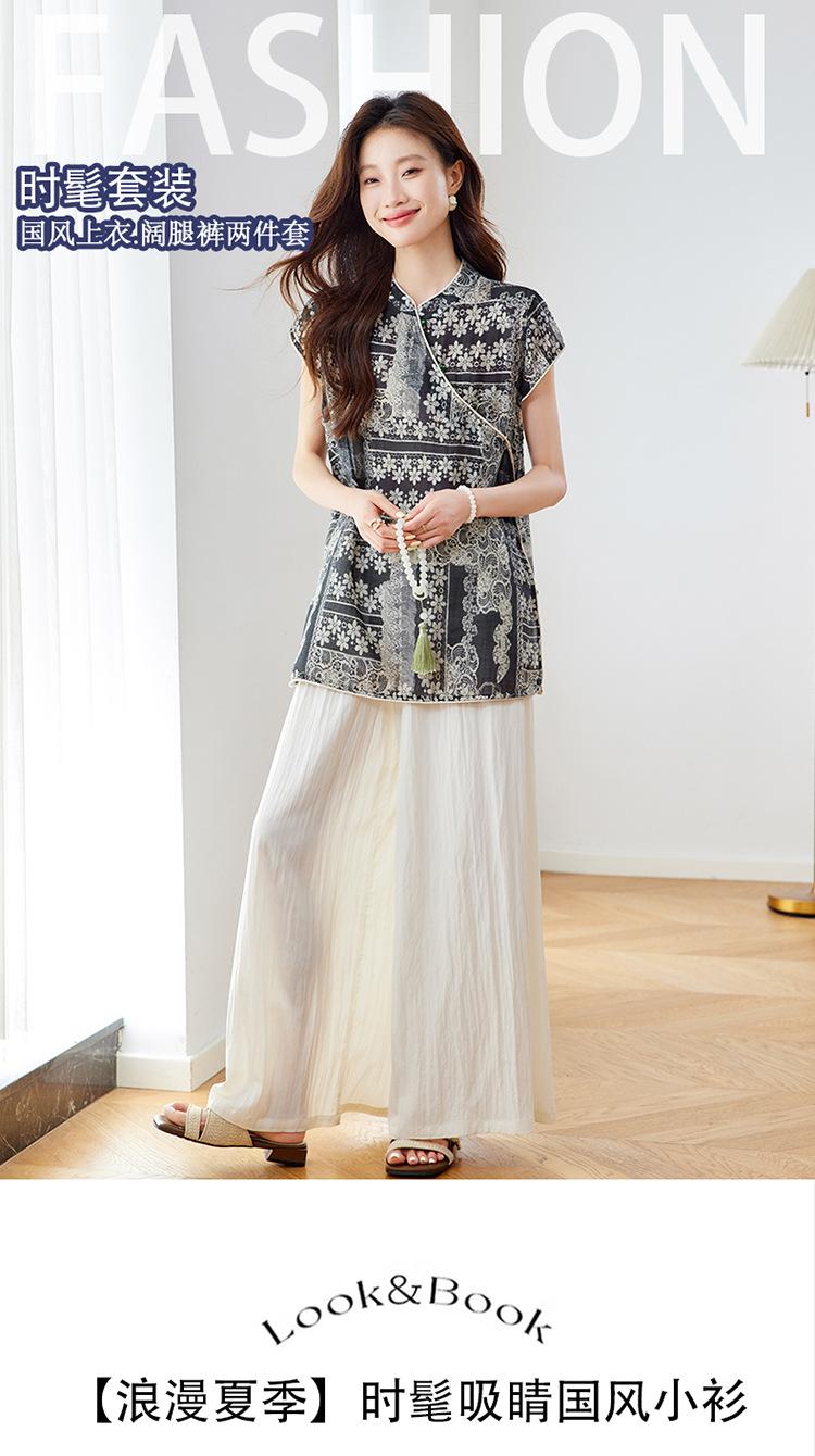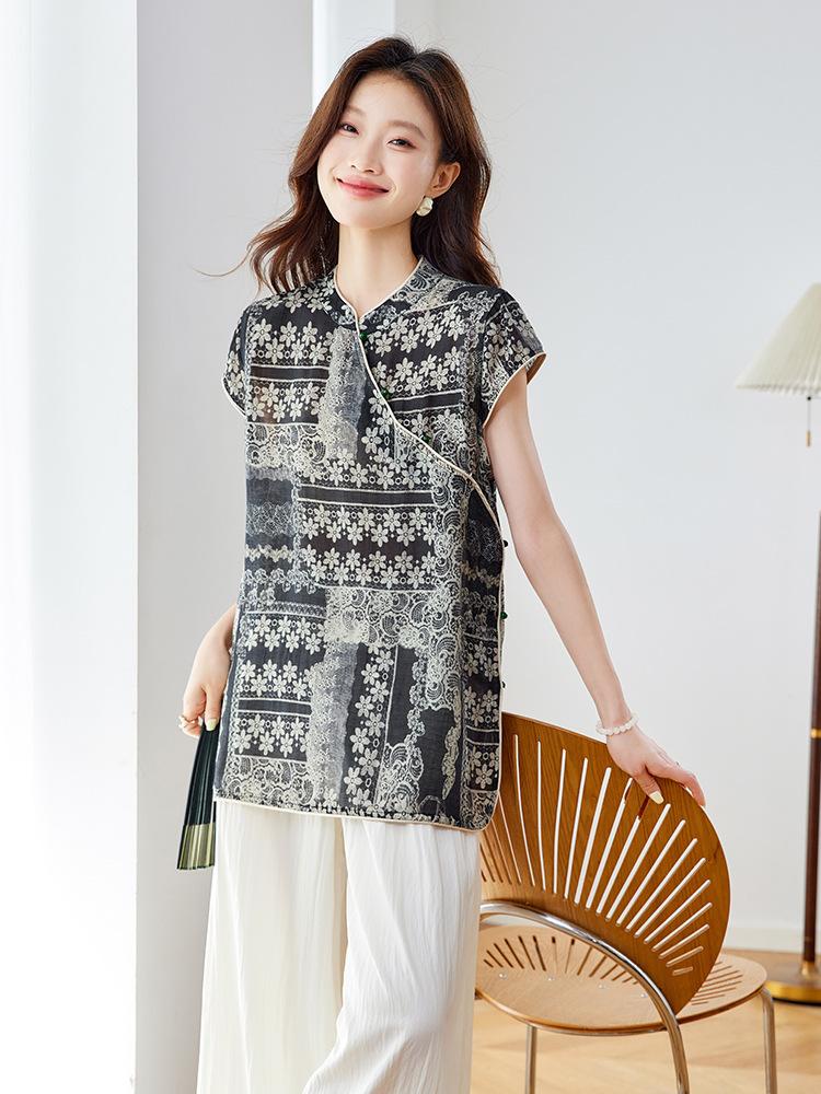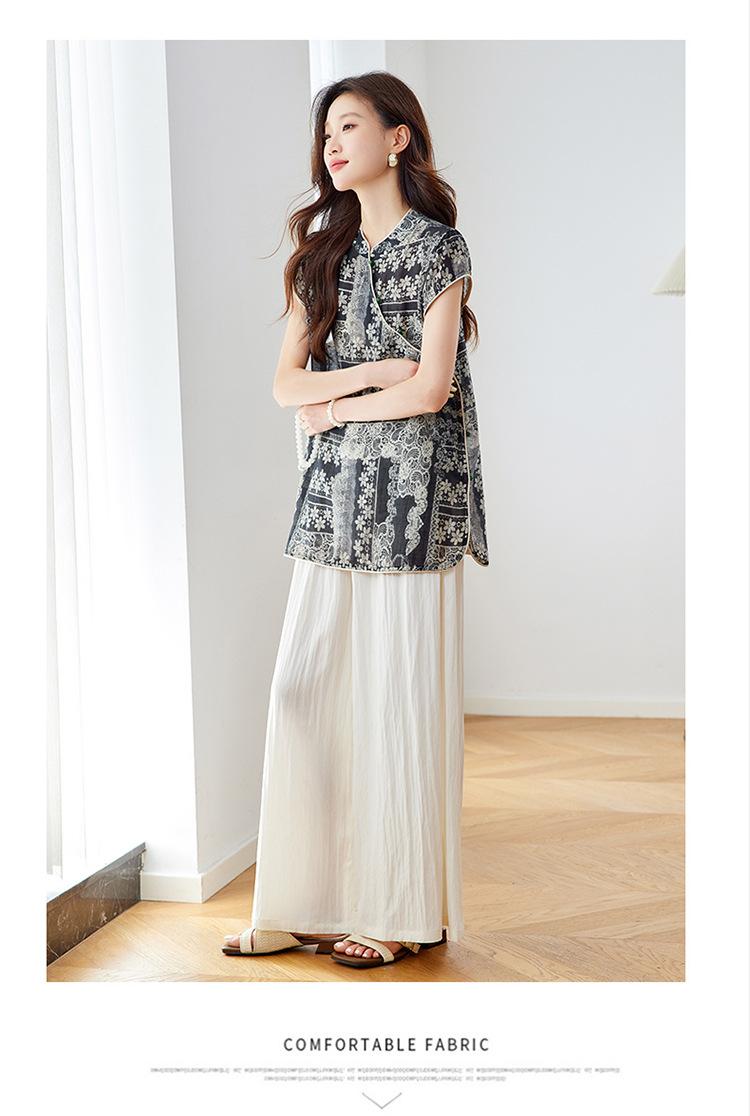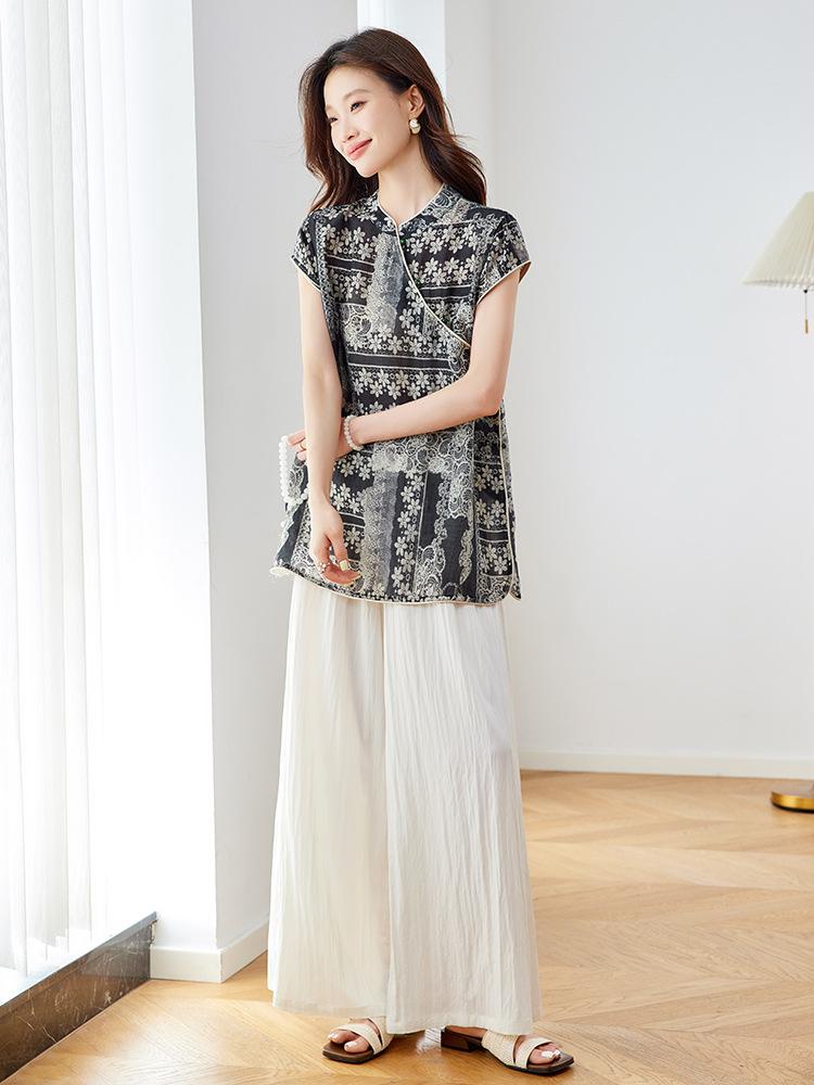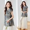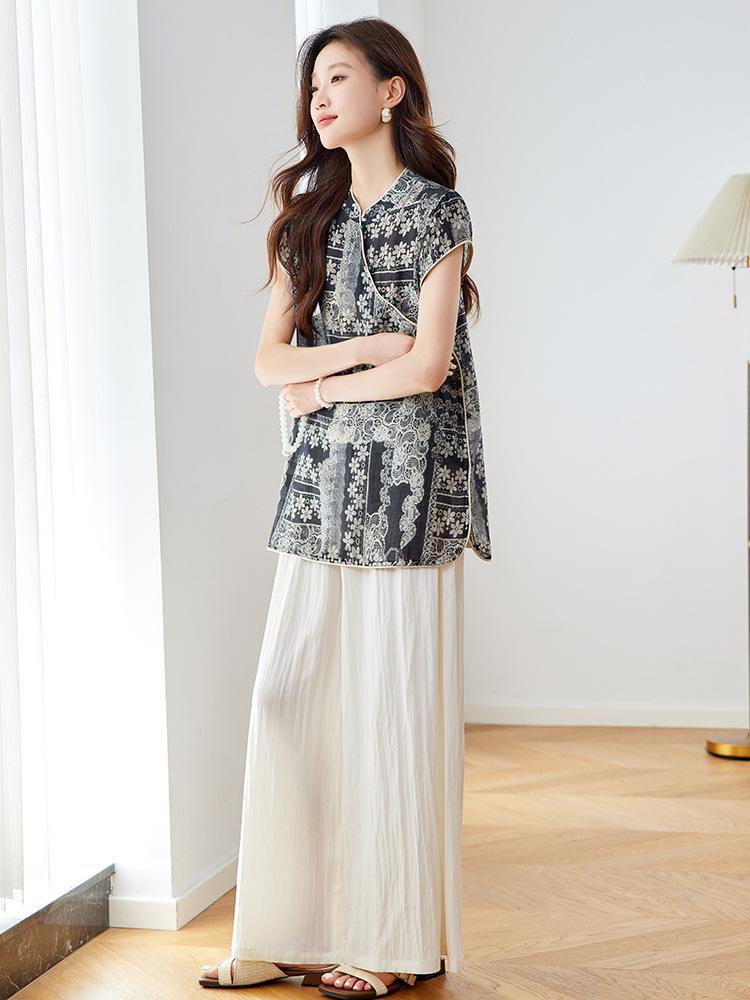 Traje de Estilo Nacional Nuevo 2025 Flor Negra Otro Dulce y Fresco Algodón Empalmado Traje de Falda Falda Midi