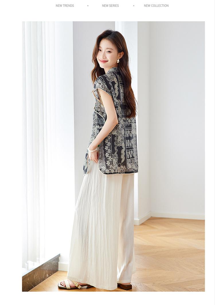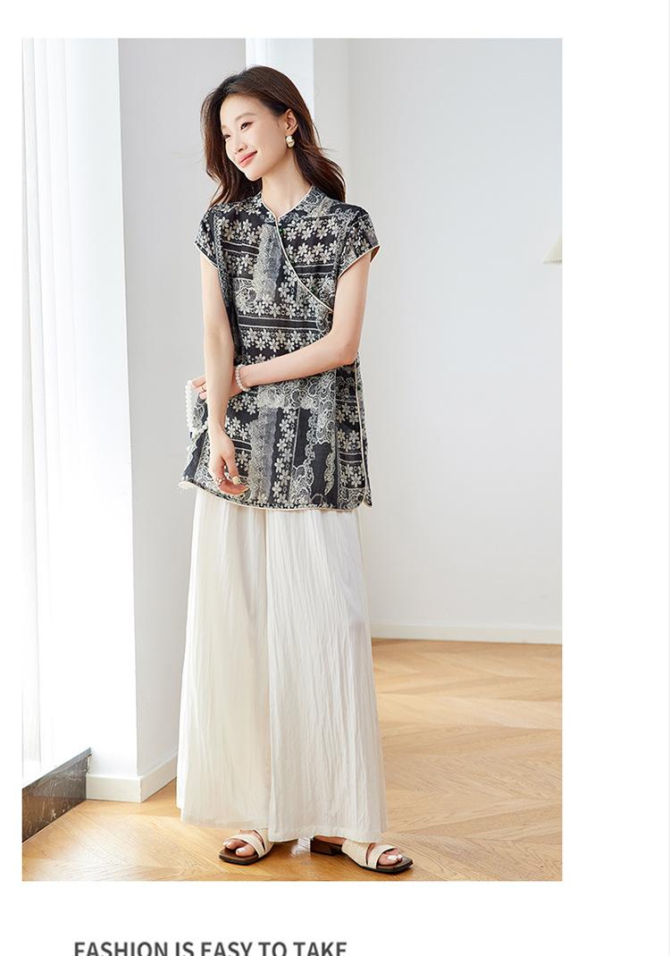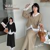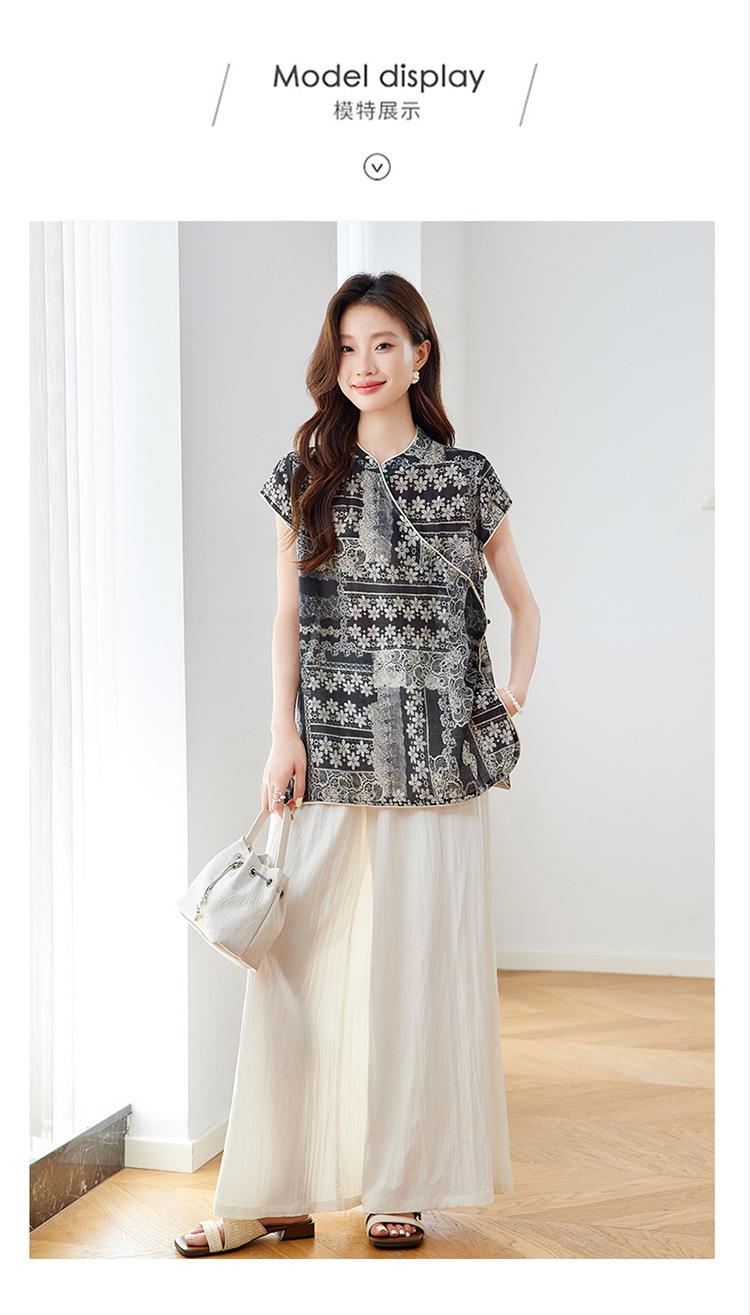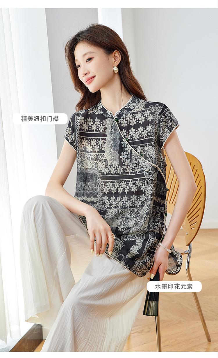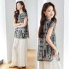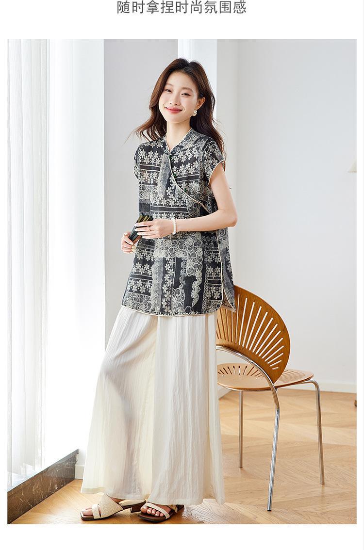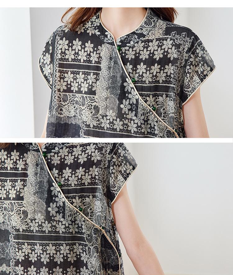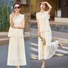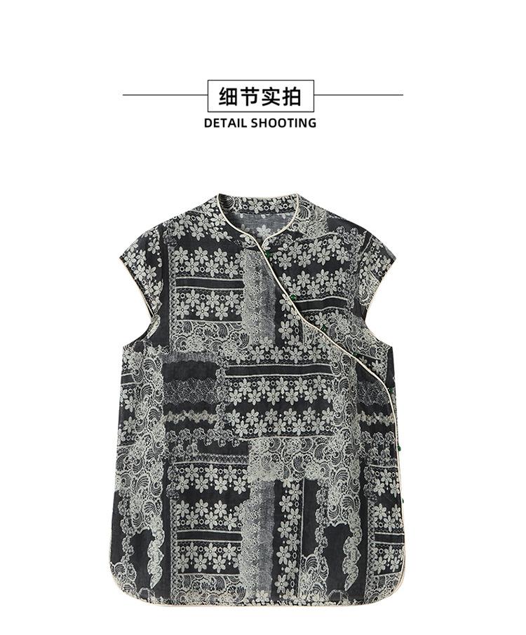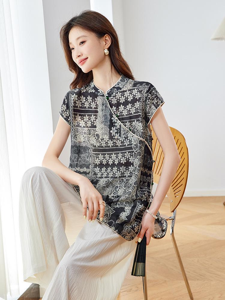 Traje de Estilo Nacional Nuevo 2025 Flor Negra Otro Dulce y Fresco Algodón Empalmado Traje de Falda Falda Midi