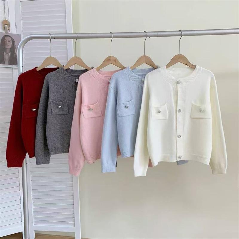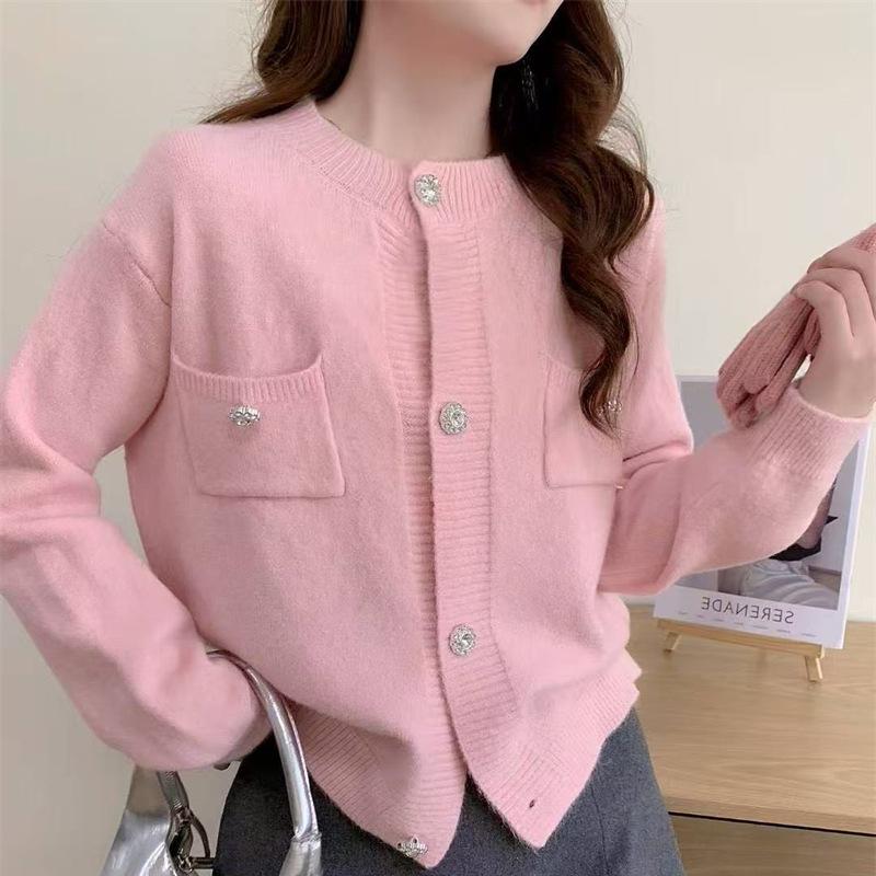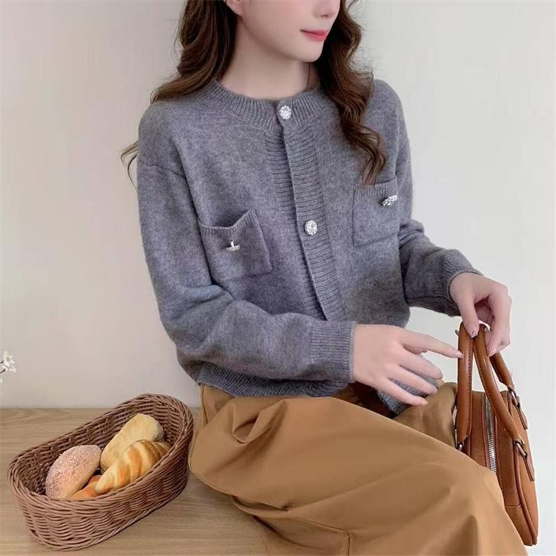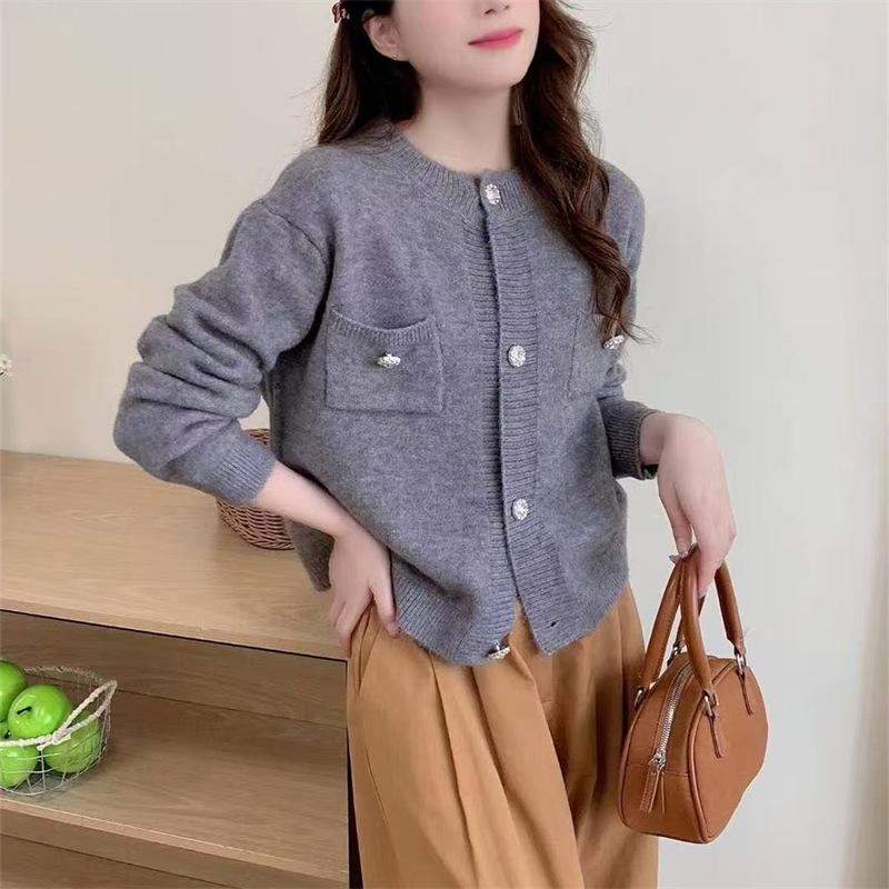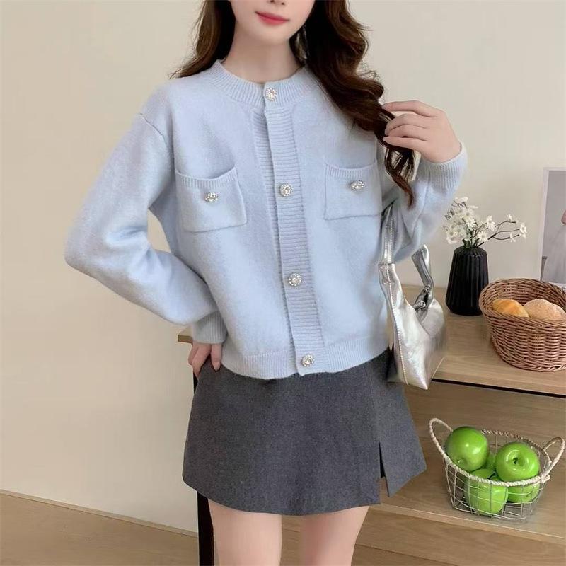 Cárdigan de Punto de Color Sólido Holgado con Cuello Redondo 2025 Suéter Tejido para Mujer Primavera Otoño Invierno Nuevo Estilo Top de Moda