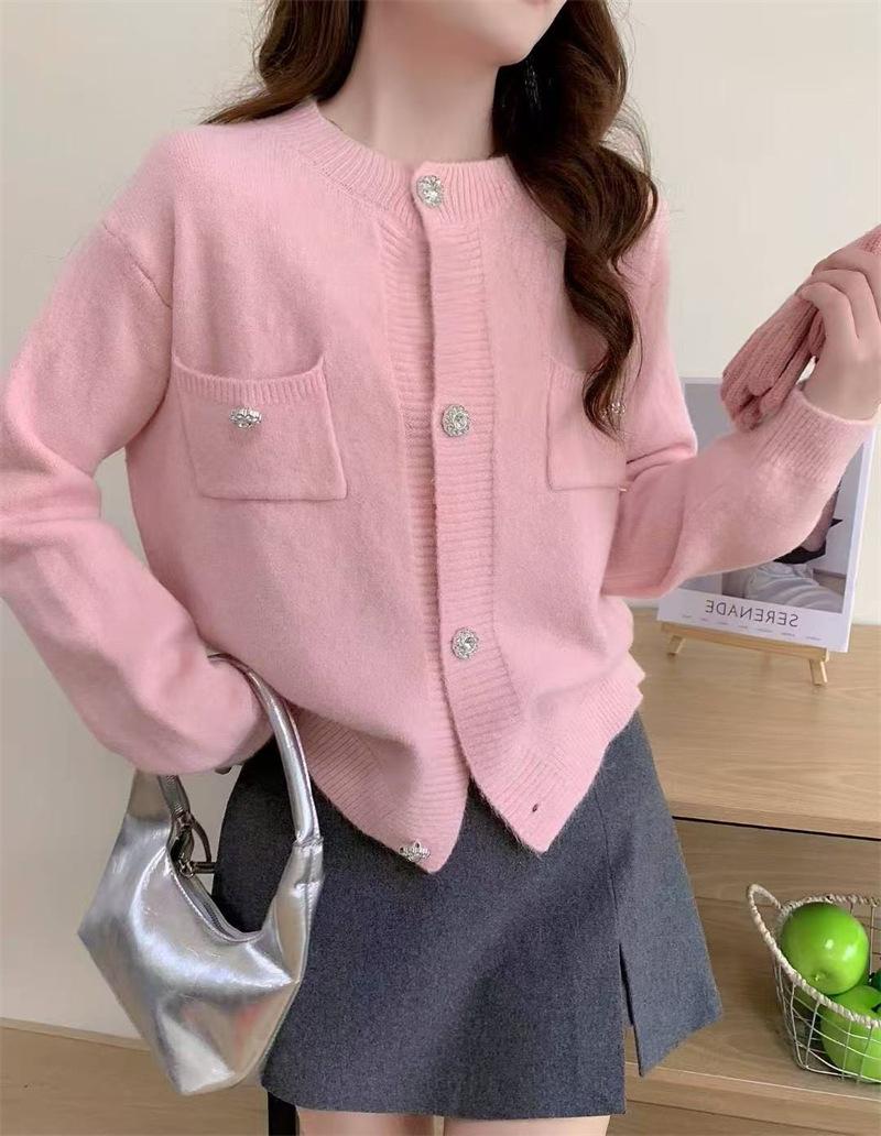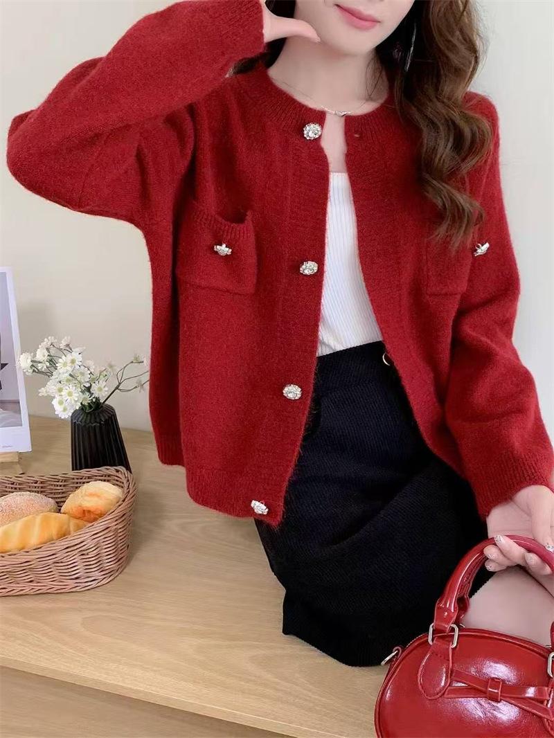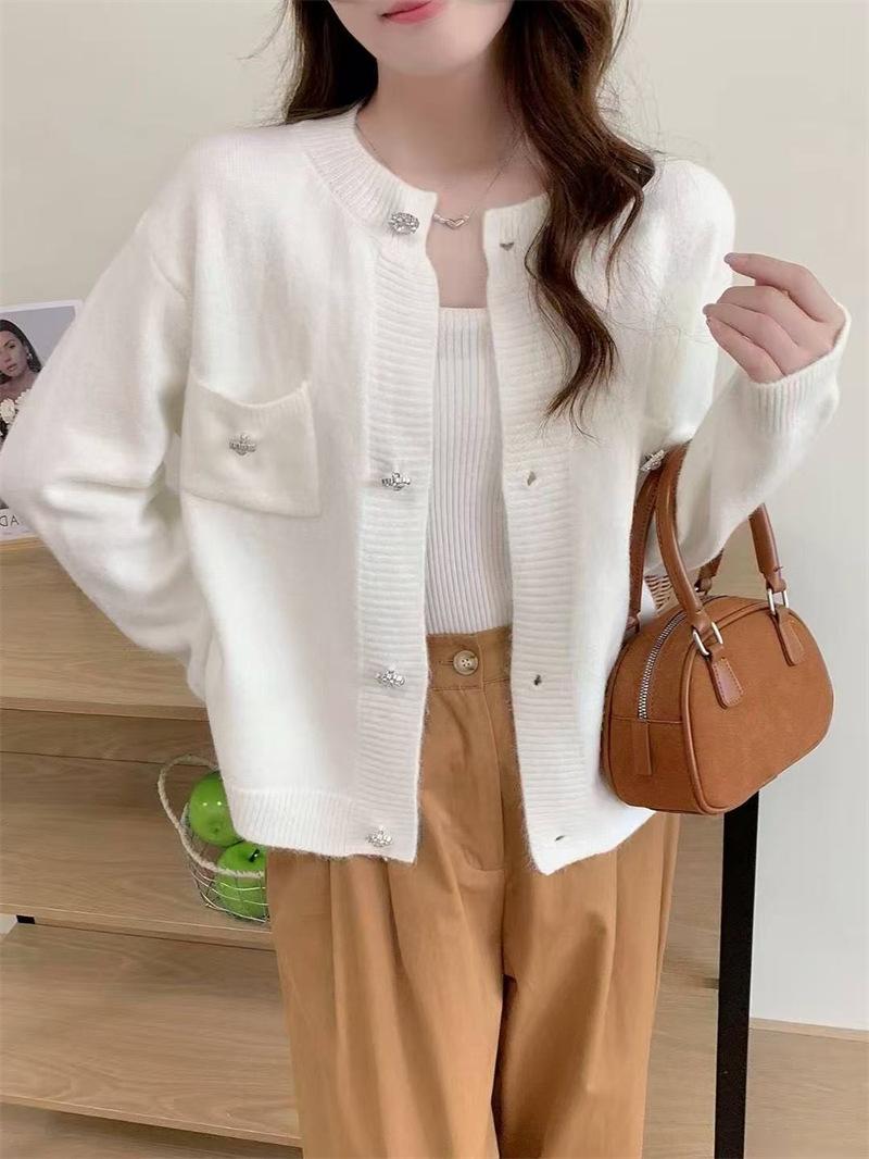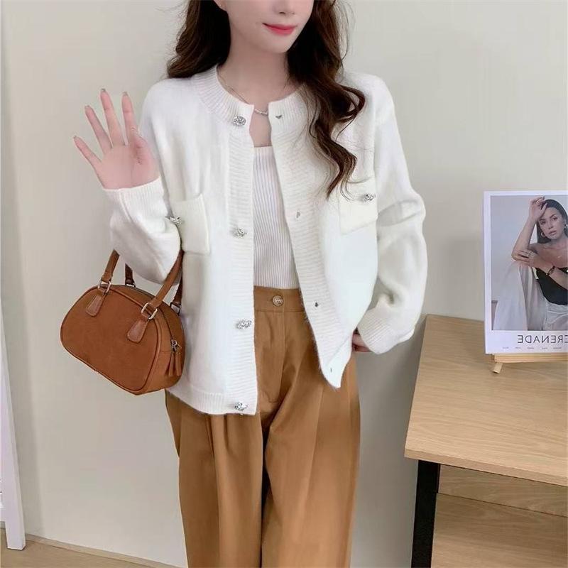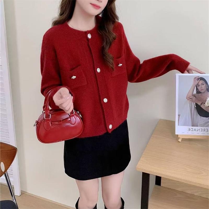 Cárdigan de Punto de Color Sólido Holgado con Cuello Redondo 2025 Suéter Tejido para Mujer Primavera Otoño Invierno Nuevo Estilo Top de Moda