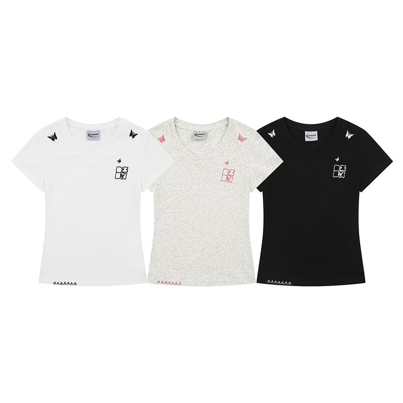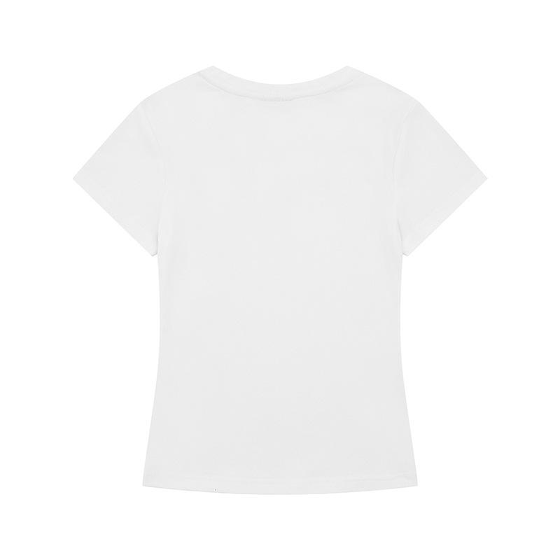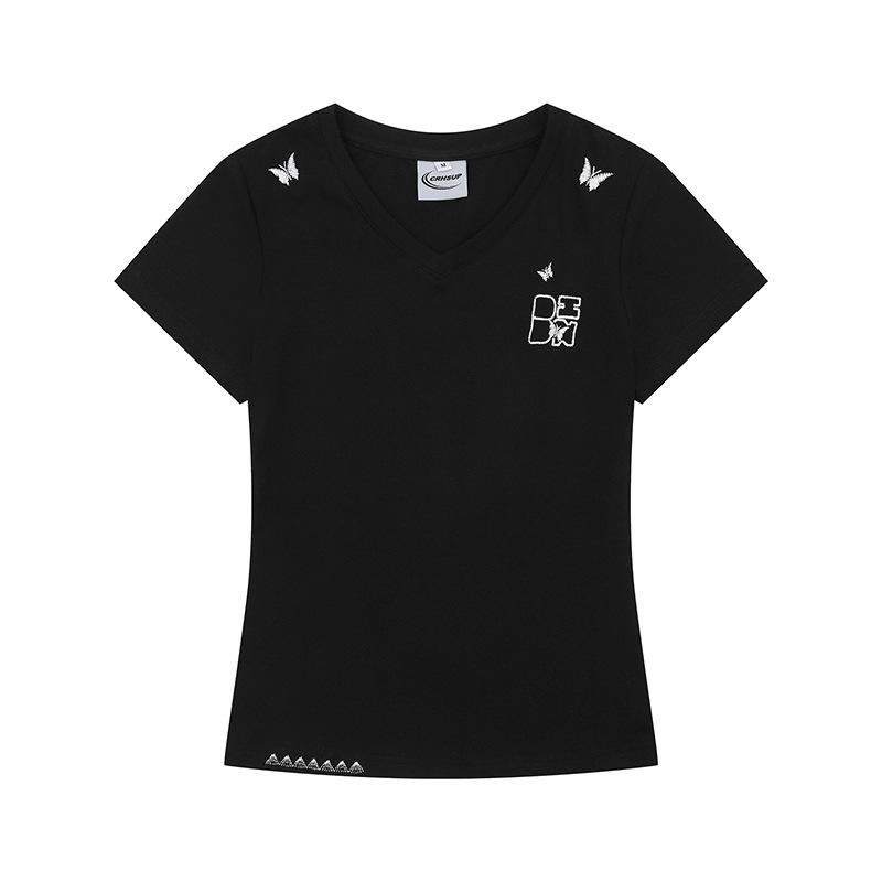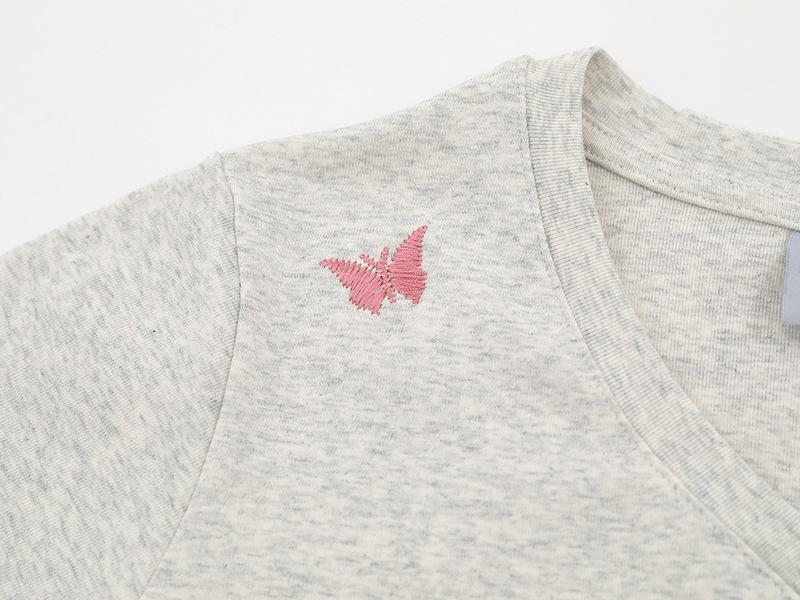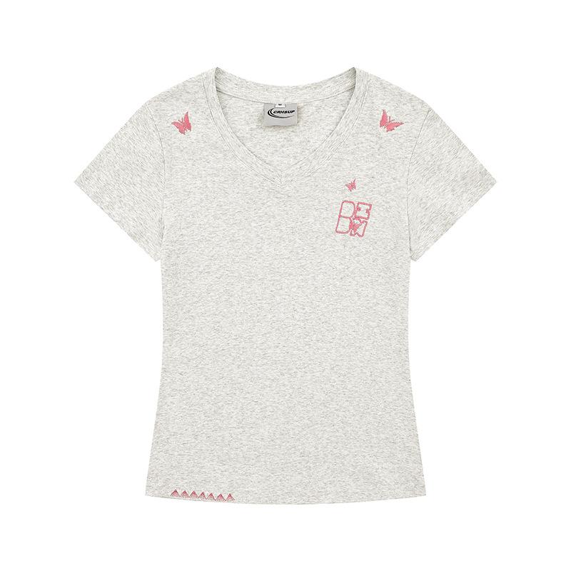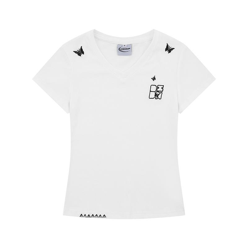 2025 American Butterfly Letter Bordado Sexy Cuello en V Hombro Derecho Manga Corta Camiseta Top Corto Adelgazante para Mujer