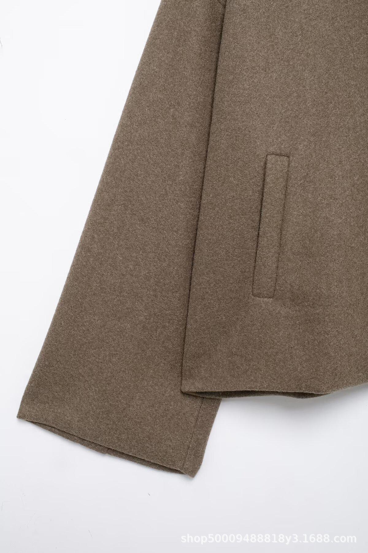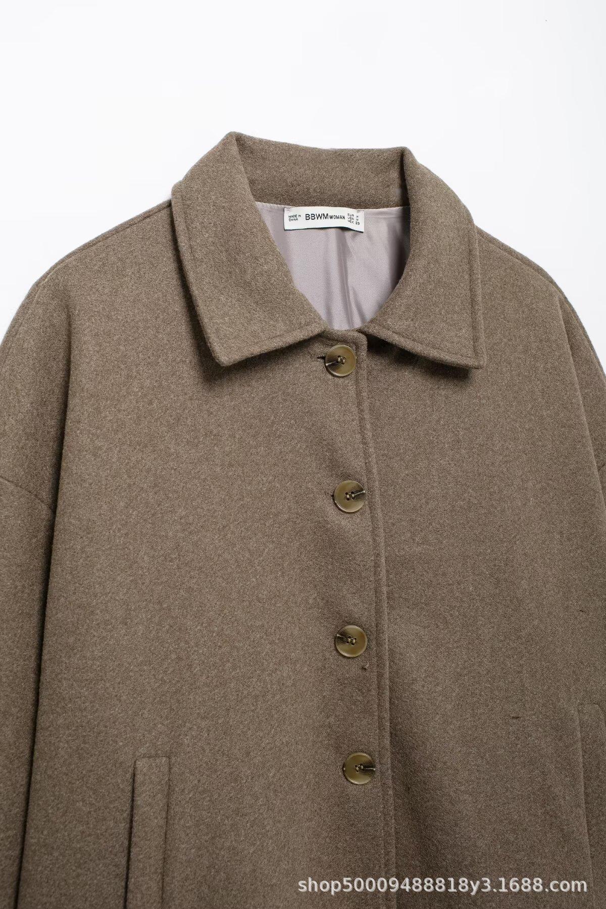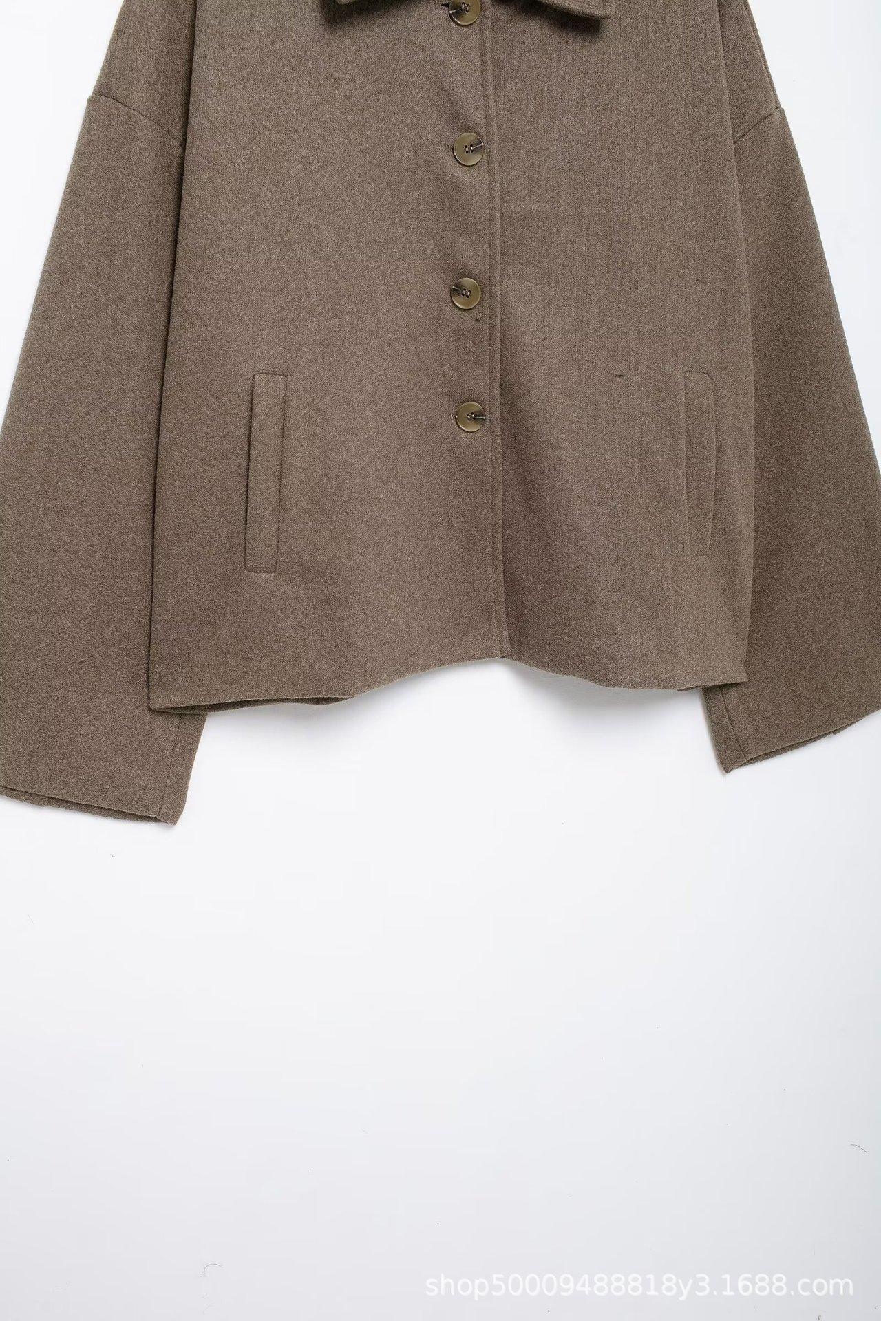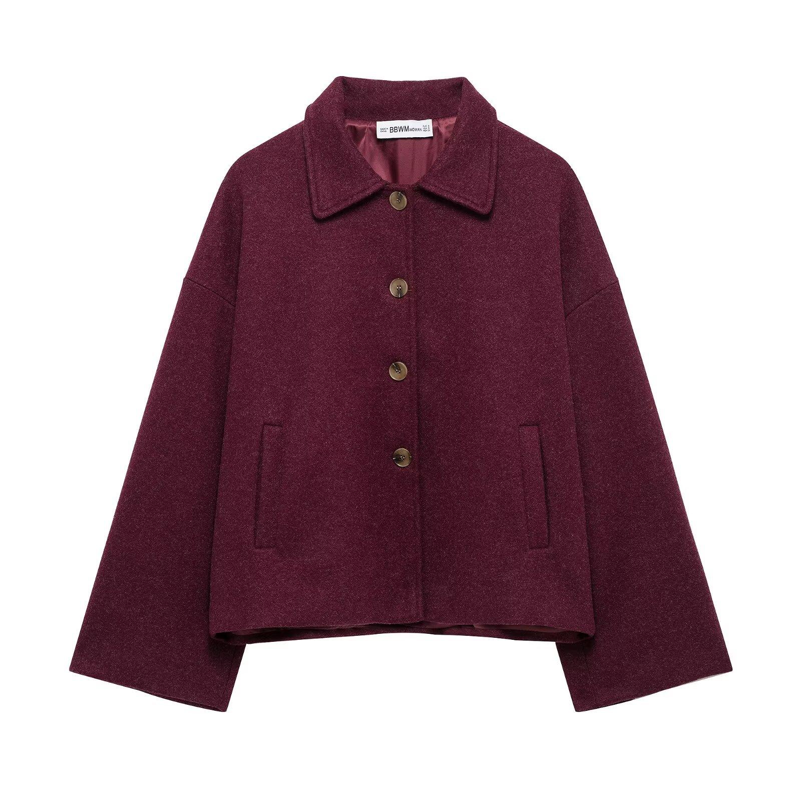 Estilo Caliente de AliExpress Moda Europea y Americana Temperamento Otoño Nueva Moda Simple Color Sólido Abrigo de Lana con Cuello Camisero Corto