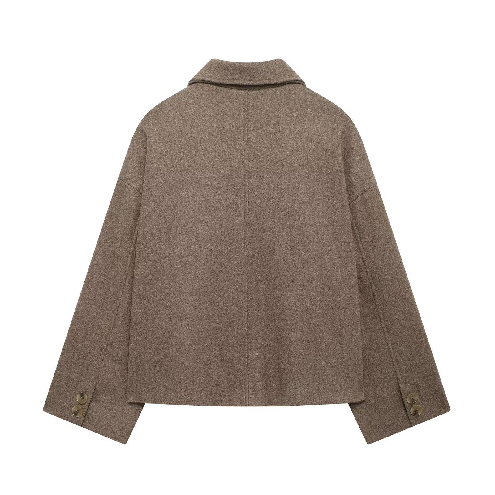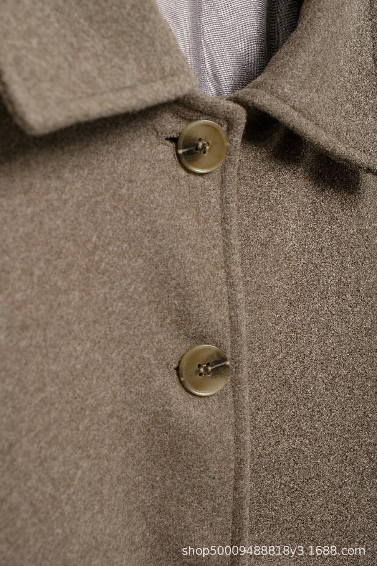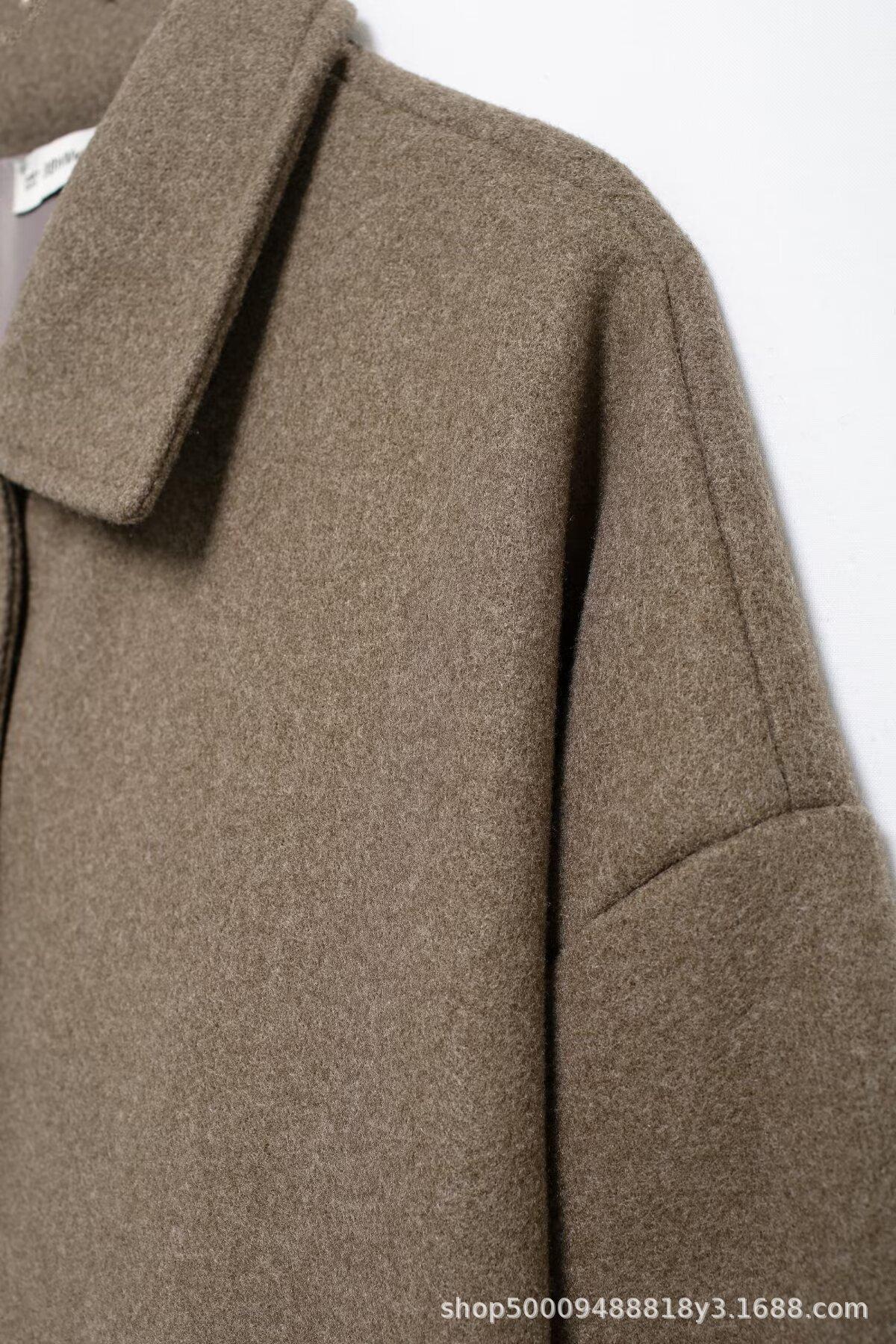 Estilo Caliente de AliExpress Moda Europea y Americana Temperamento Otoño Nueva Moda Simple Color Sólido Abrigo de Lana con Cuello Camisero Corto