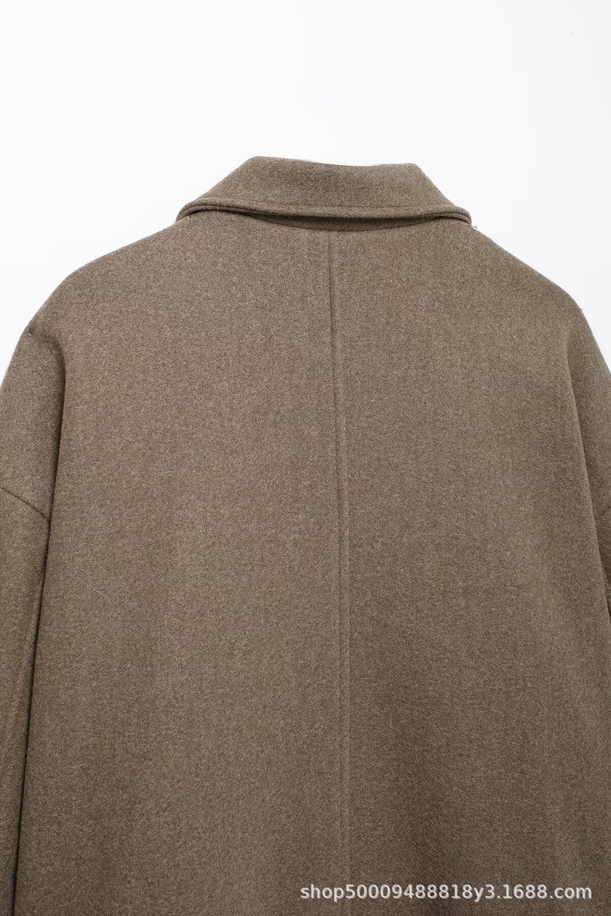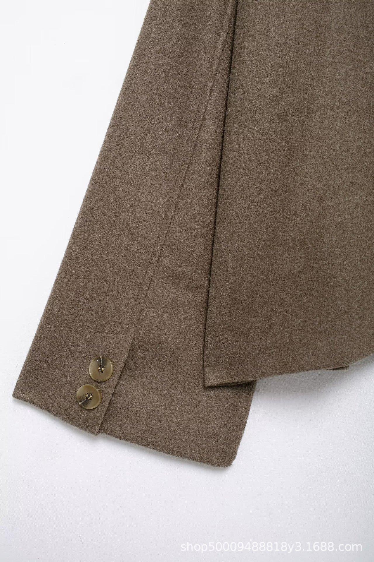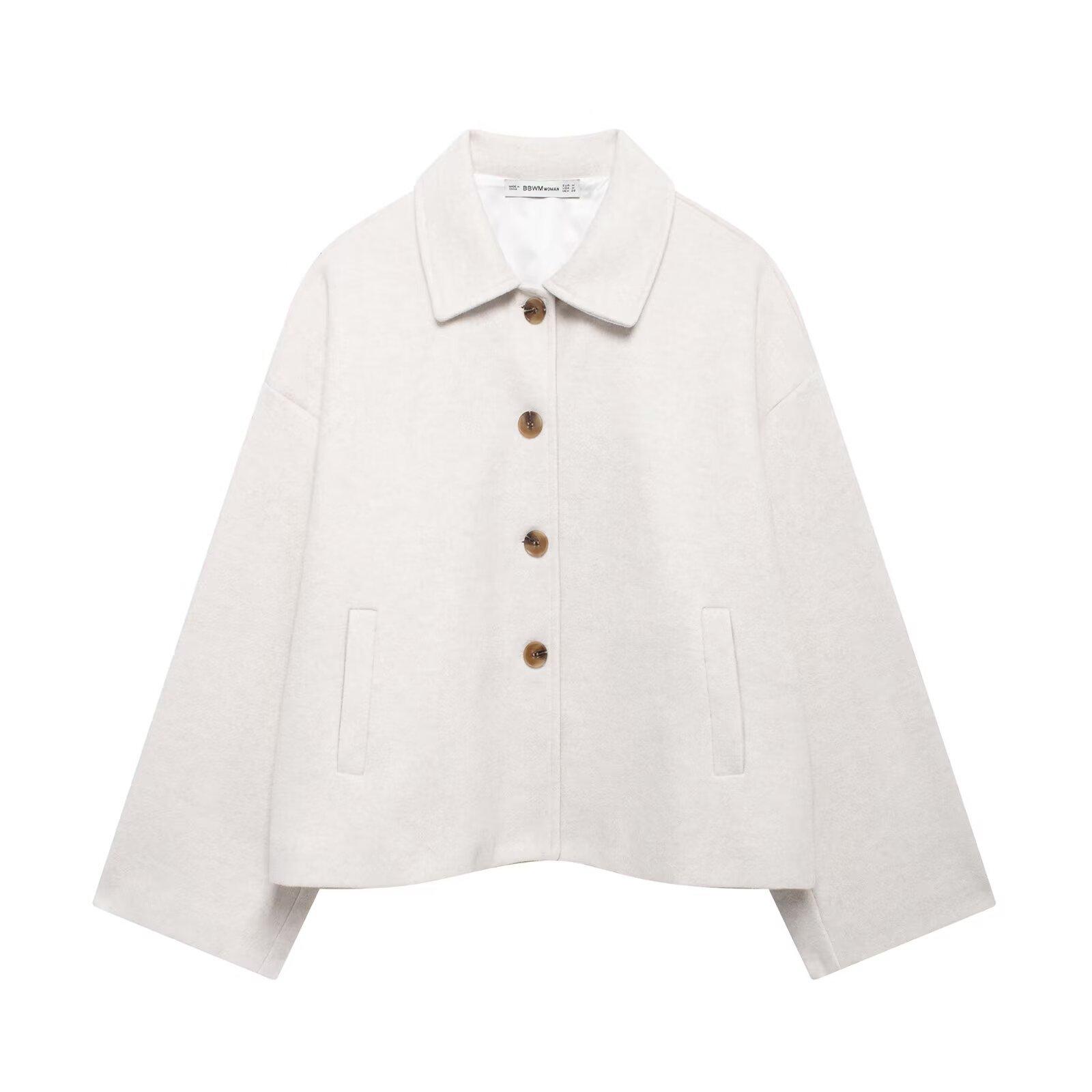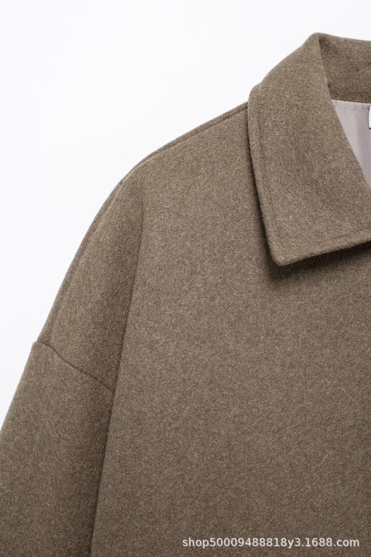 Estilo Caliente de AliExpress Moda Europea y Americana Temperamento Otoño Nueva Moda Simple Color Sólido Abrigo de Lana con Cuello Camisero Corto
