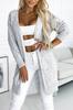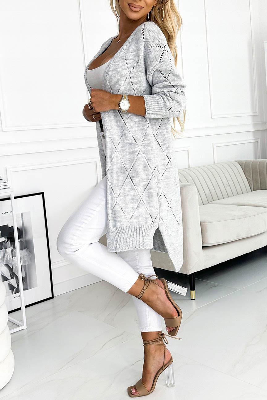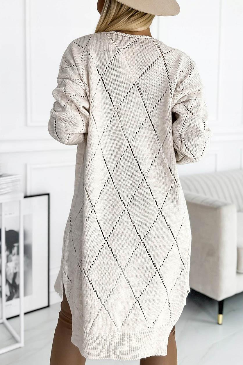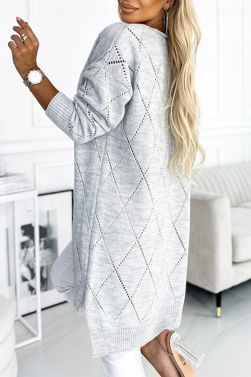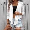 Cárdigan Tejido Calado Estilo Nuevo Transfronterizo Europeo y Americano para Mujer Suelto Casual Corto Delante y Largo Detrás Abertura en el Bajo Chaqueta Suéter
