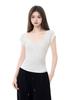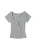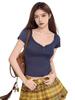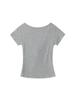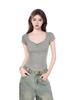 Compra Camiseta de Manga Corta con Cuello en V y Hombro Regular Estilo Americano Spicy Girl Gris para Mujer, Verano Ajustada Nicho No Repetitiva Top Corto al por mayor en Joom.pro