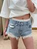 25 Shorts de mezclilla retro irregulares rasgados para mujer, verano, delgados, de chica sexy, cintura alta, con encaje en el borde, pierna ancha, pantalones cortos calientes