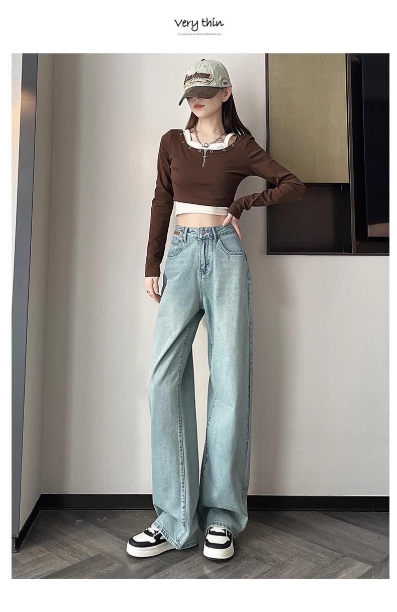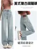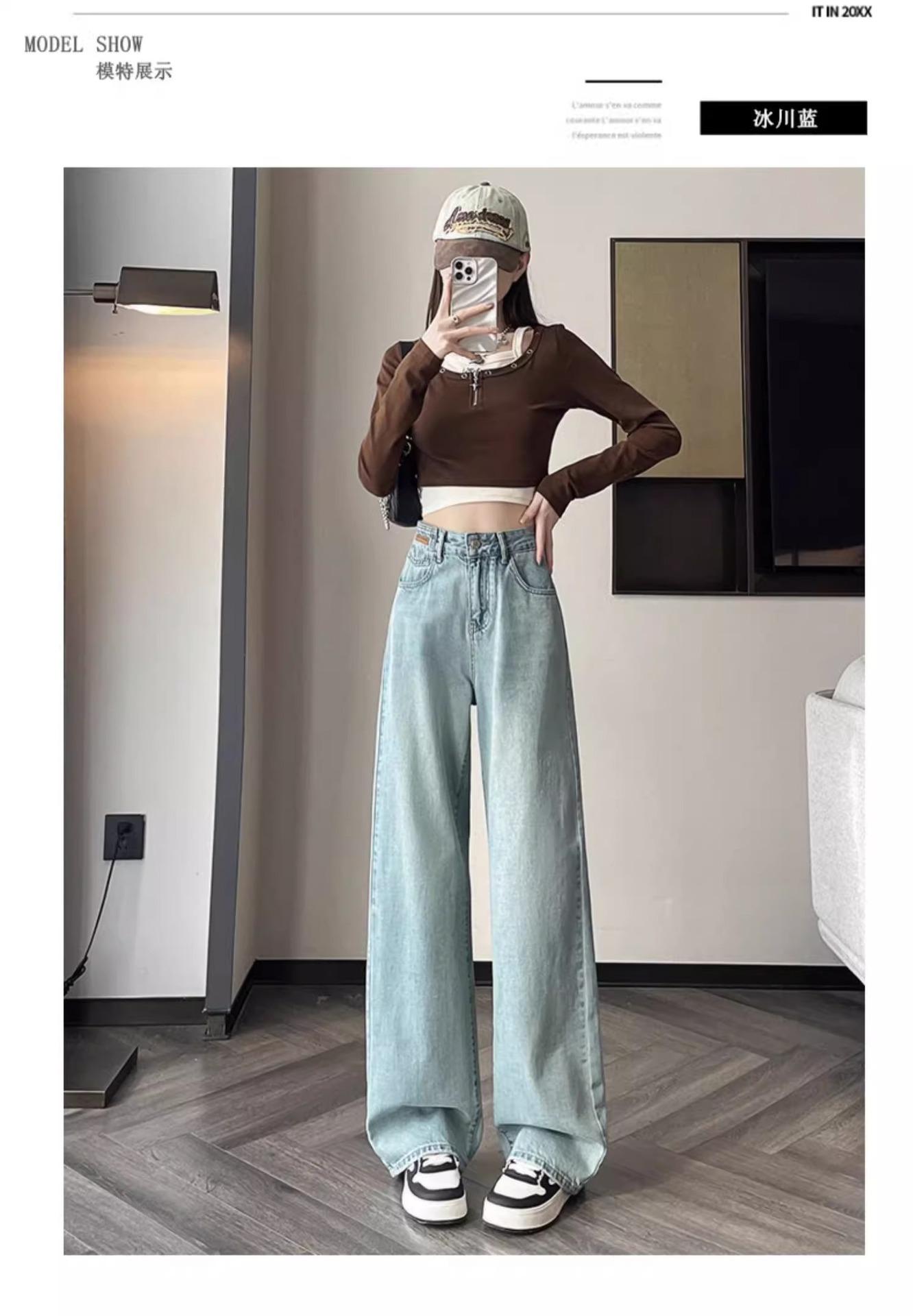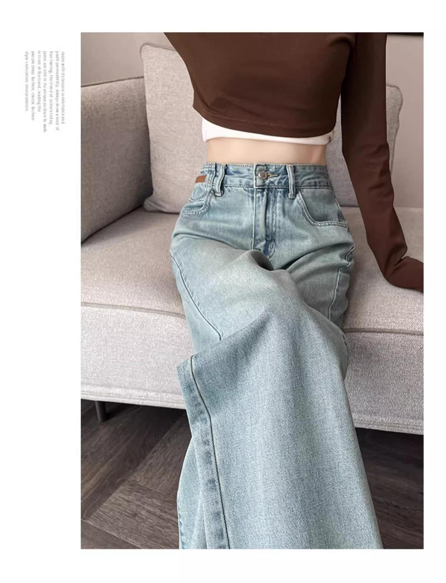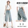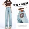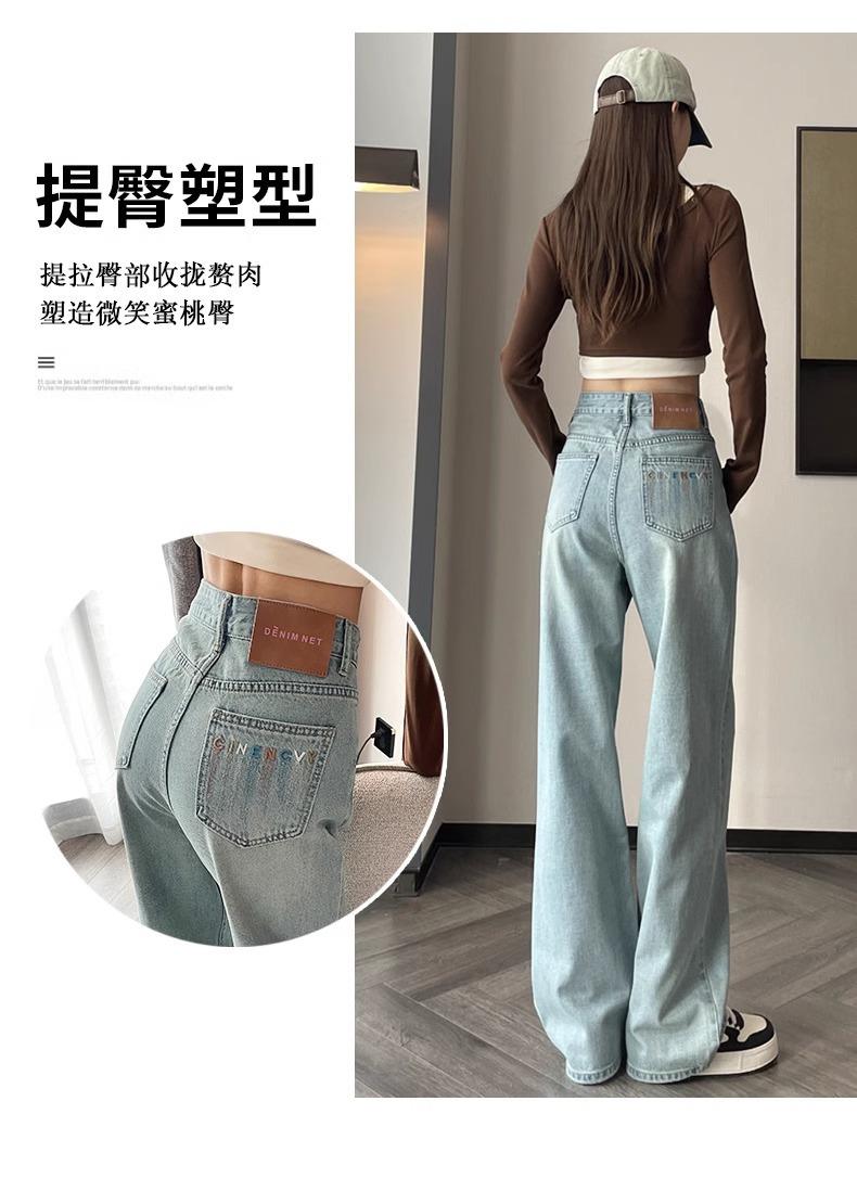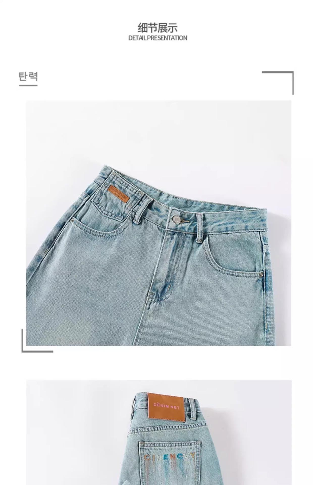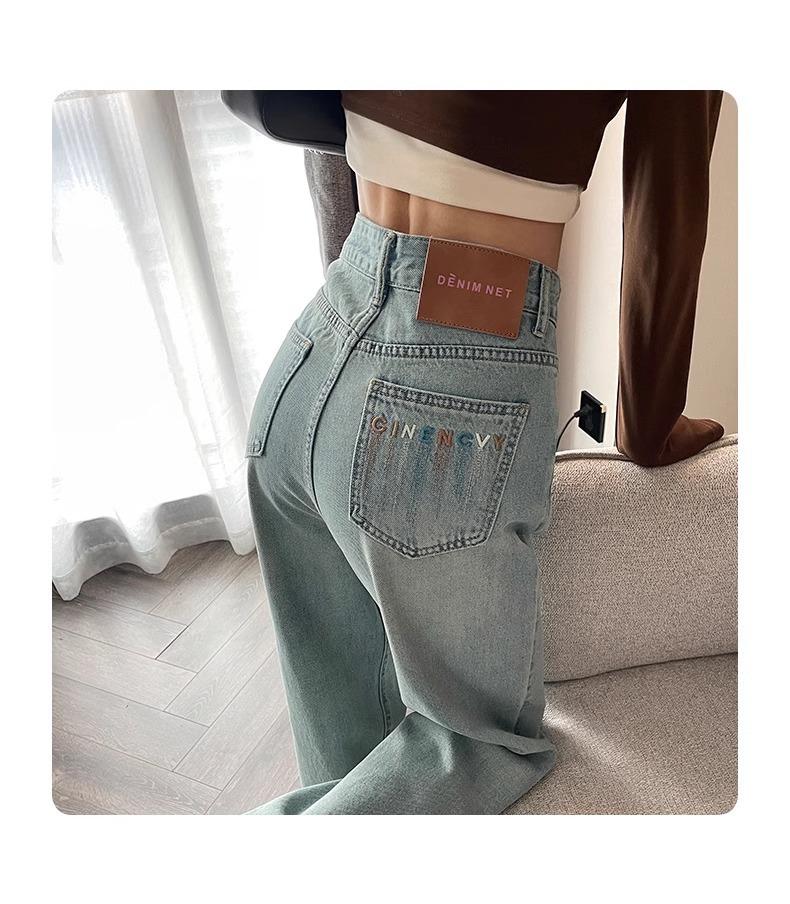Jeans Rotos Claros para Mujer 2024 Nuevo Primavera y Verano Cintura Alta Holgados Adelgazantes Bordados Cortos Estrechos Pierna Ancha
