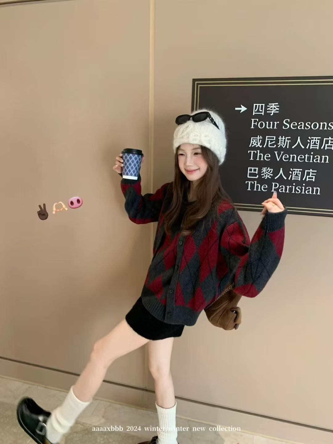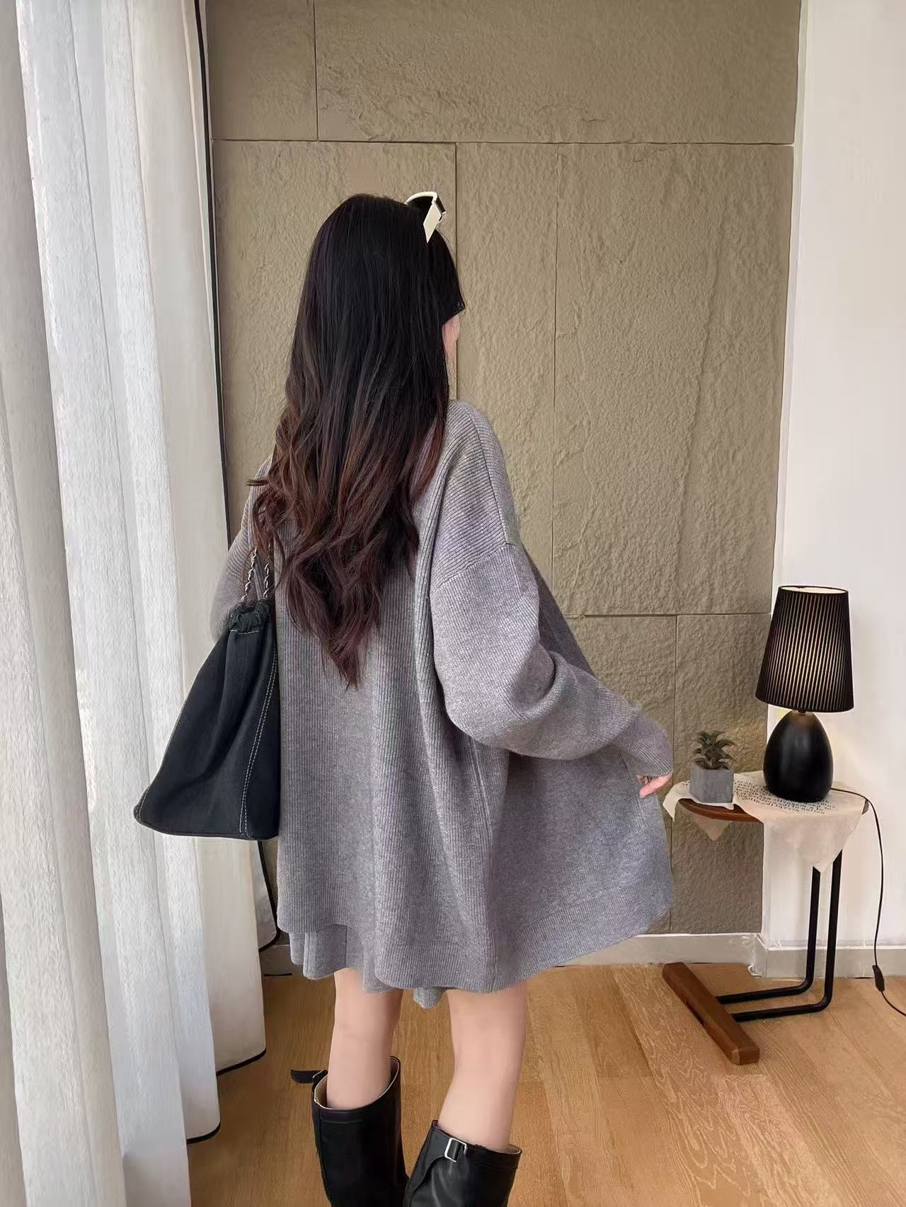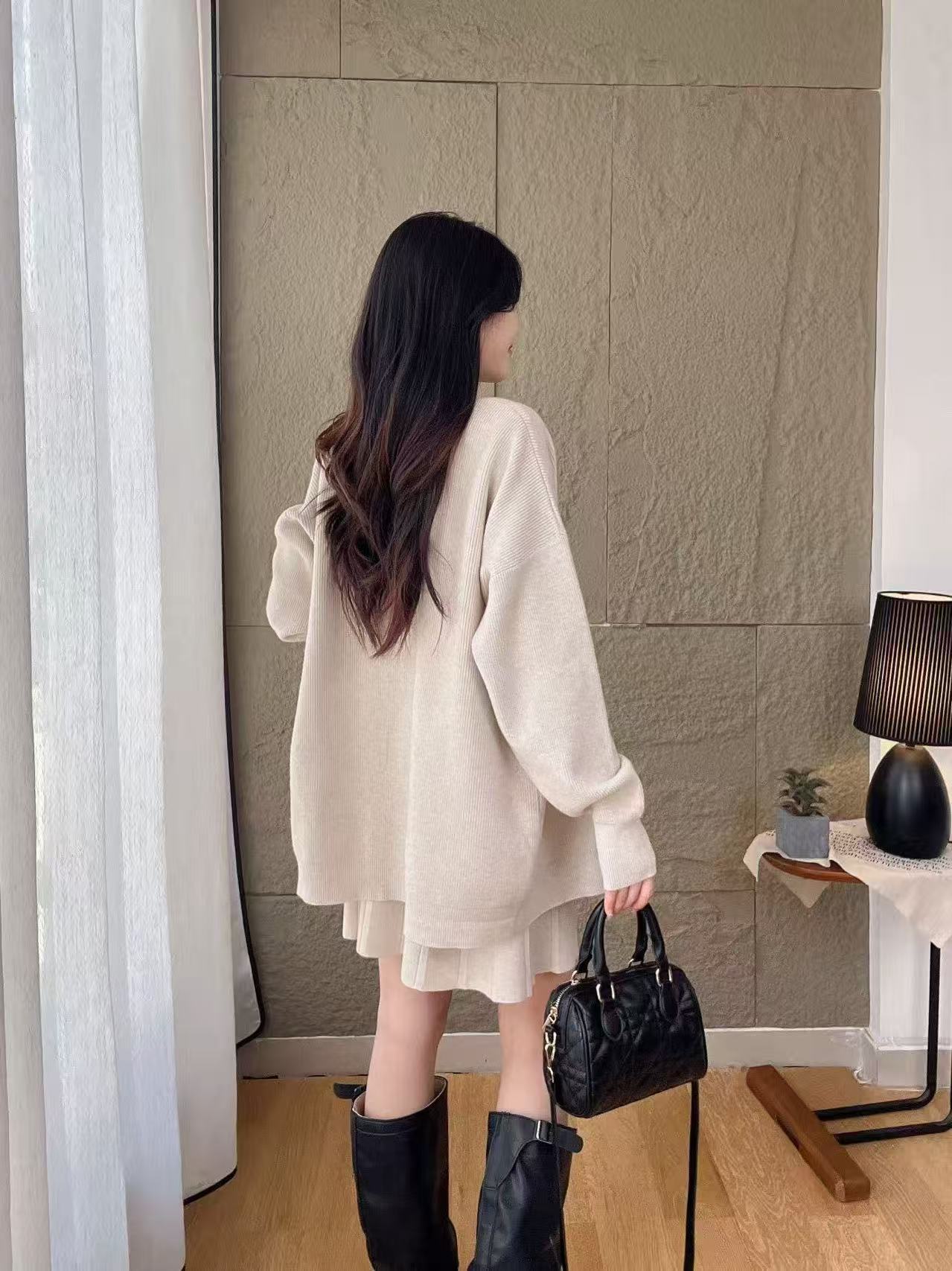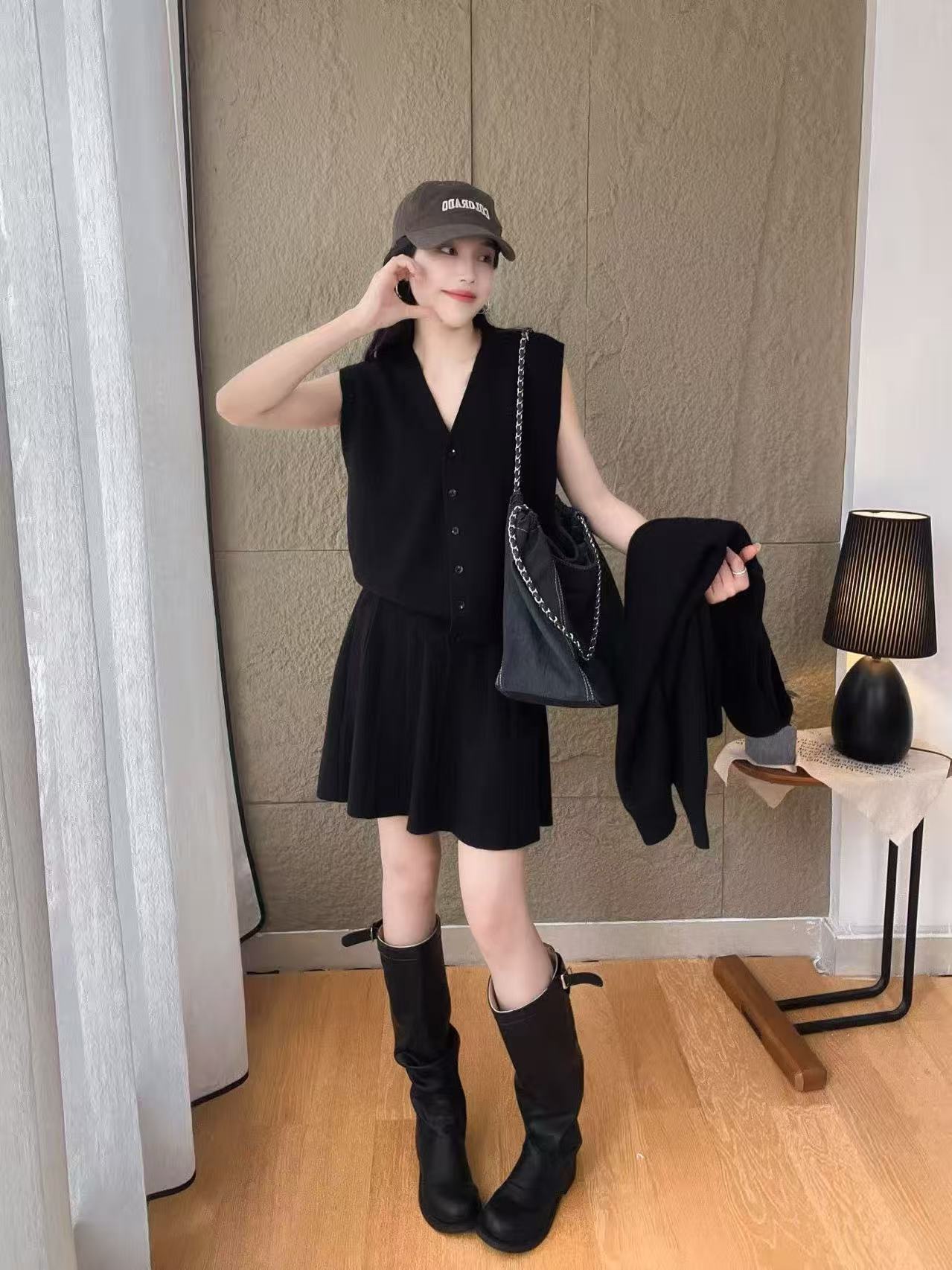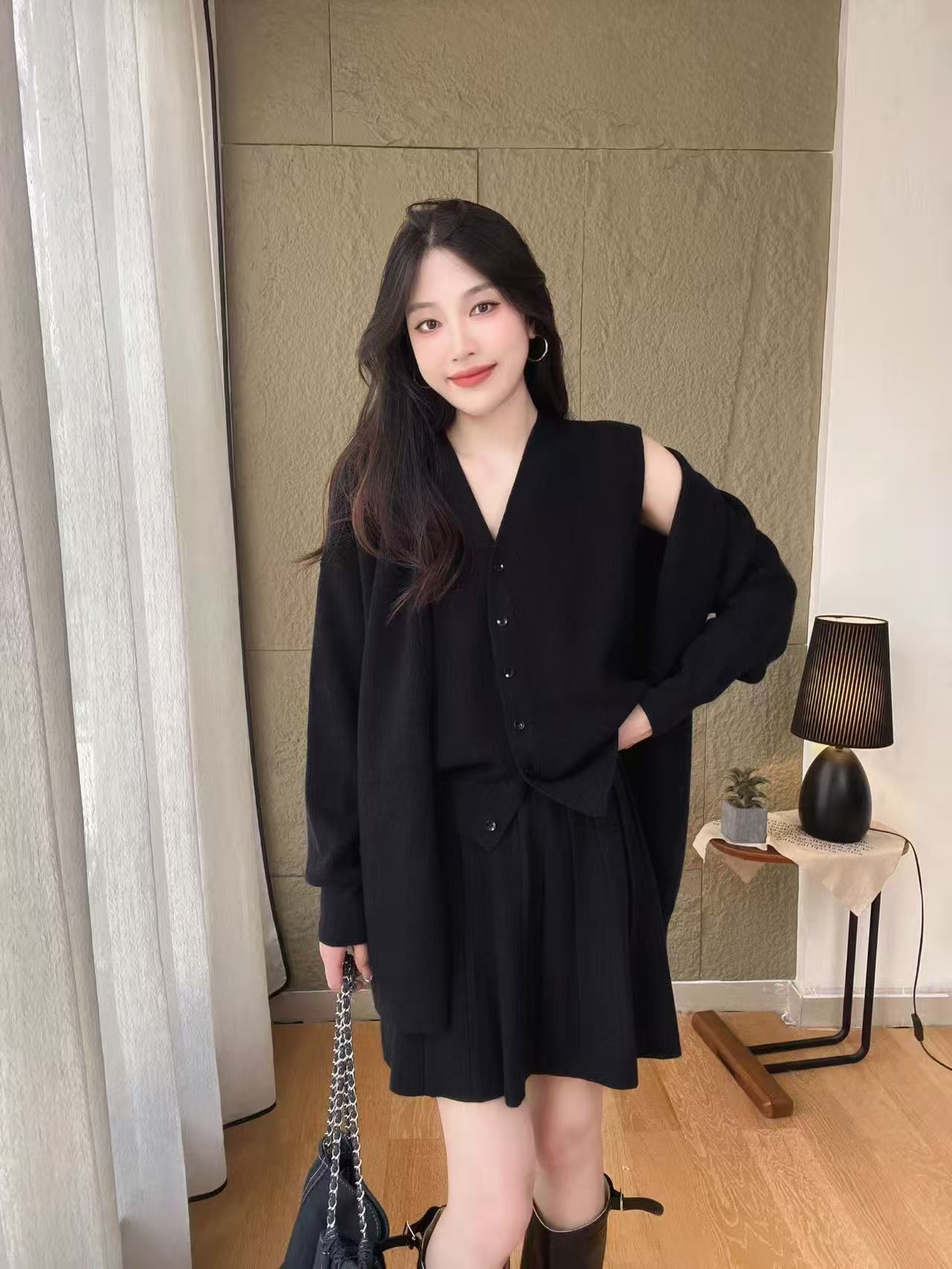 Conjunto de Mujer Otoño e Invierno Nuevo Producto Chaleco Suéter Falda Midi Estilo Perezoso Moda Reductor de Edad Cárdigan de Punto Abrigo Conjunto de Tres Piezas