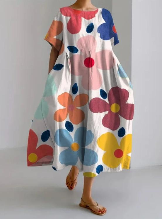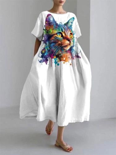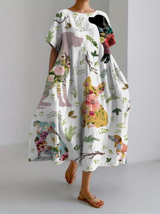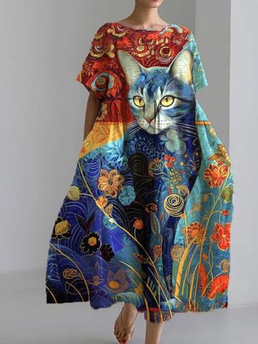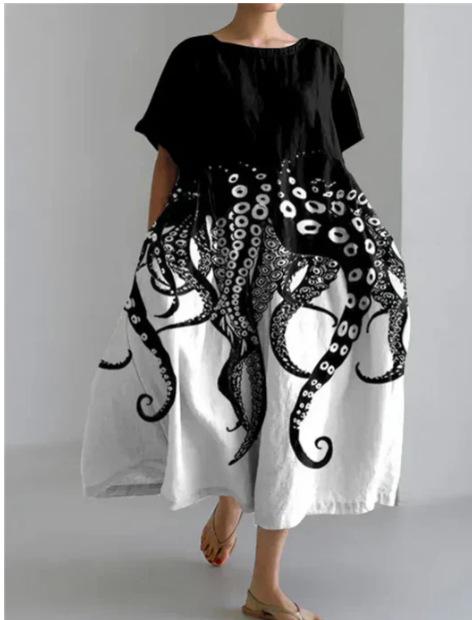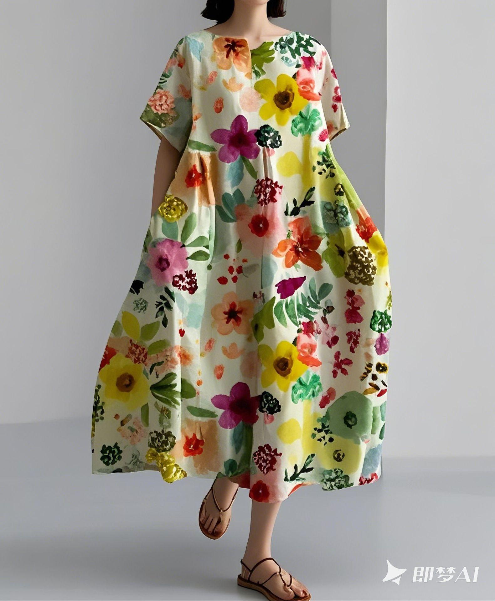 2024 Nuevo Otoño Amazon Transfronterizo Europeo y Americano para Mujer Vestido Holgado de Cuello Redondo Moda Estampado 3D Avanzado