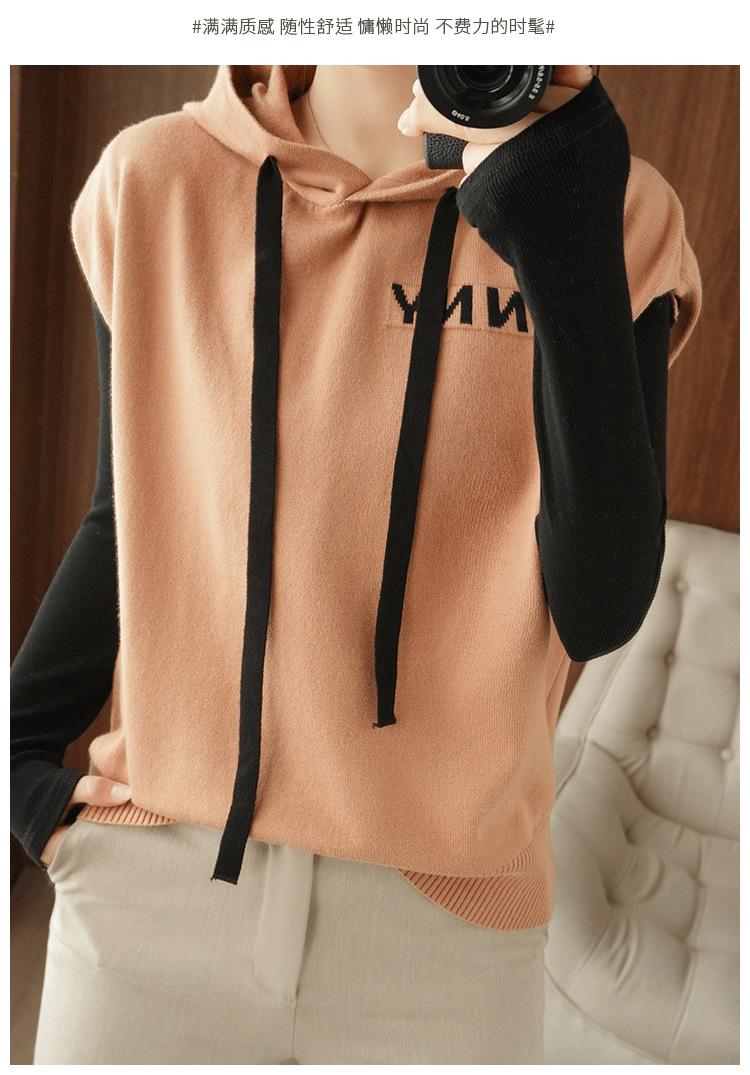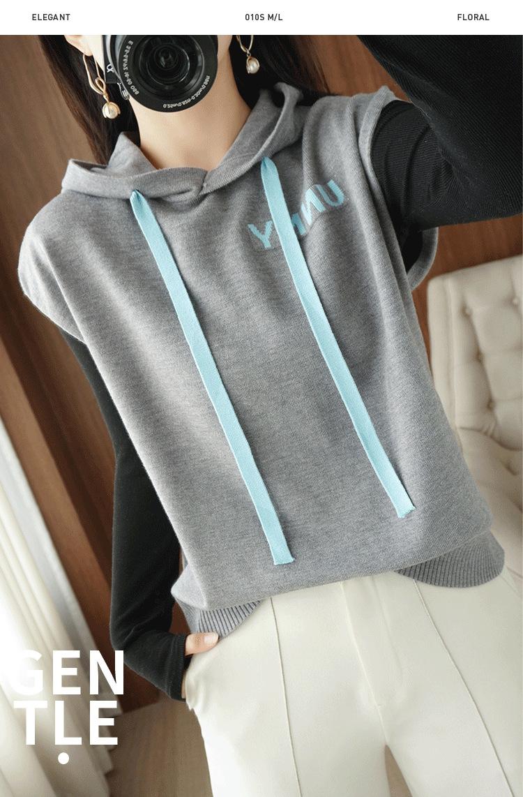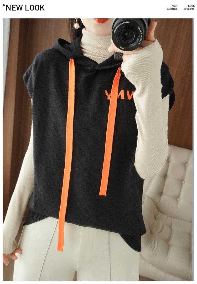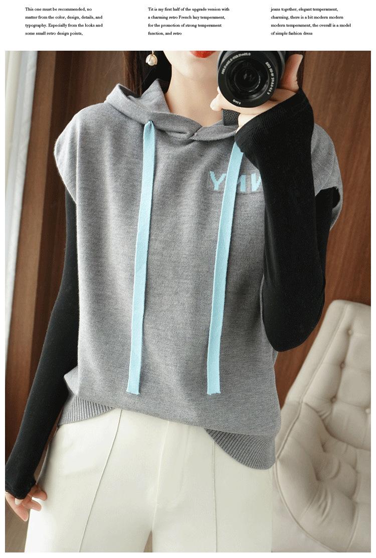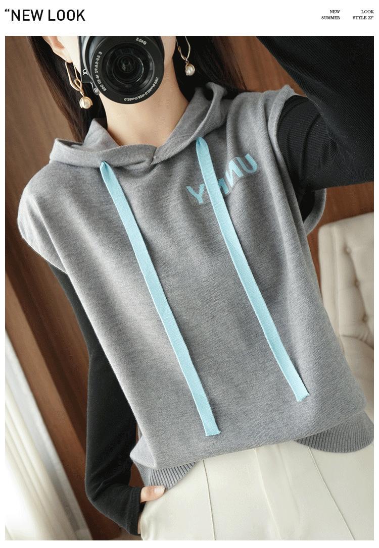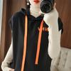 2024 primavera y verano nuevo suéter coreano de moda con capucha estampado de letras en color de contraste top holgado sin mangas para mujer