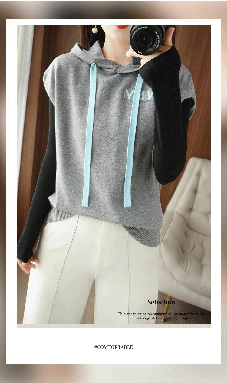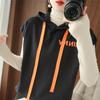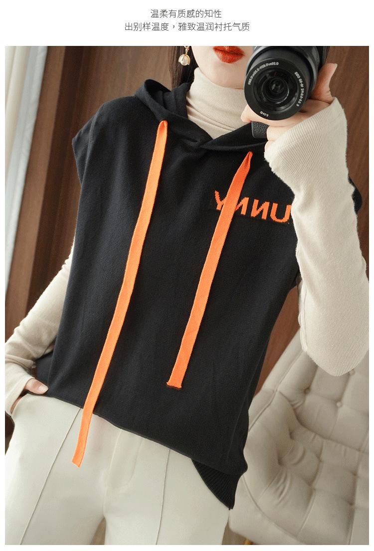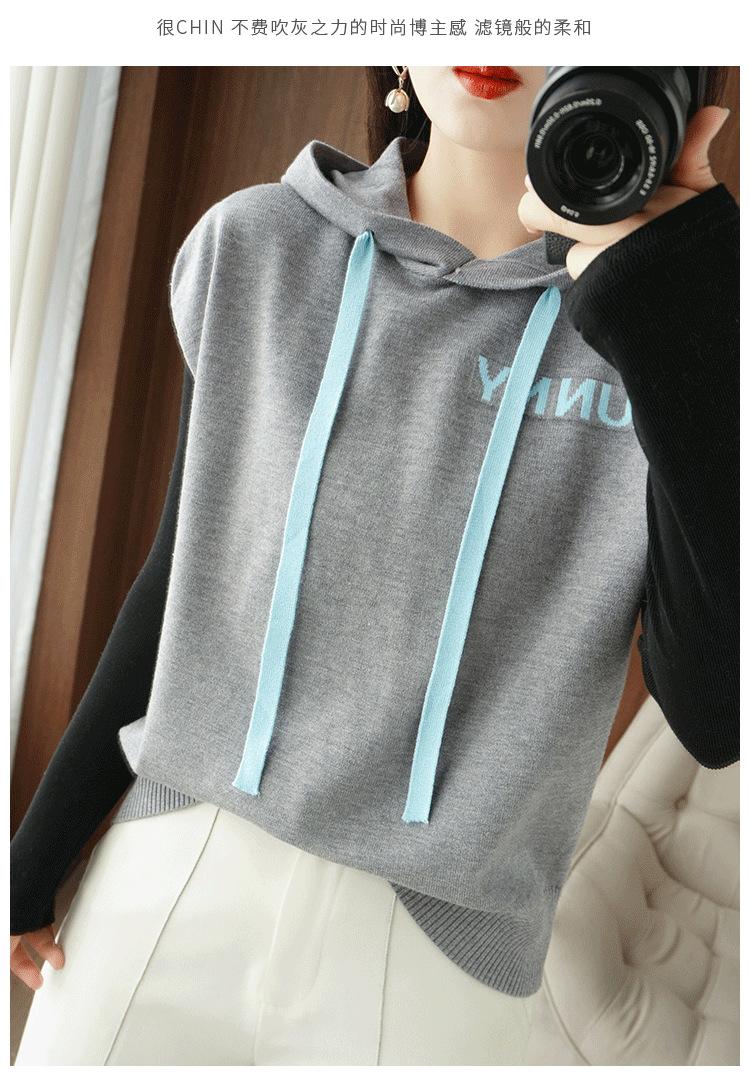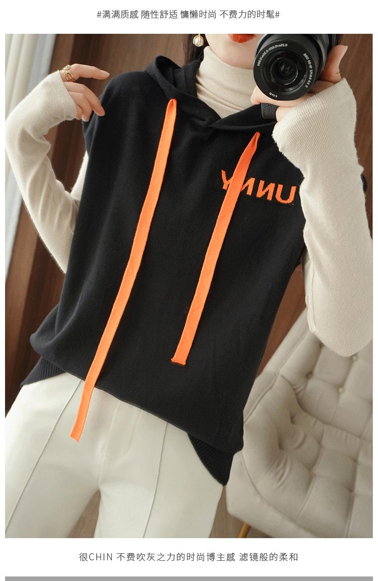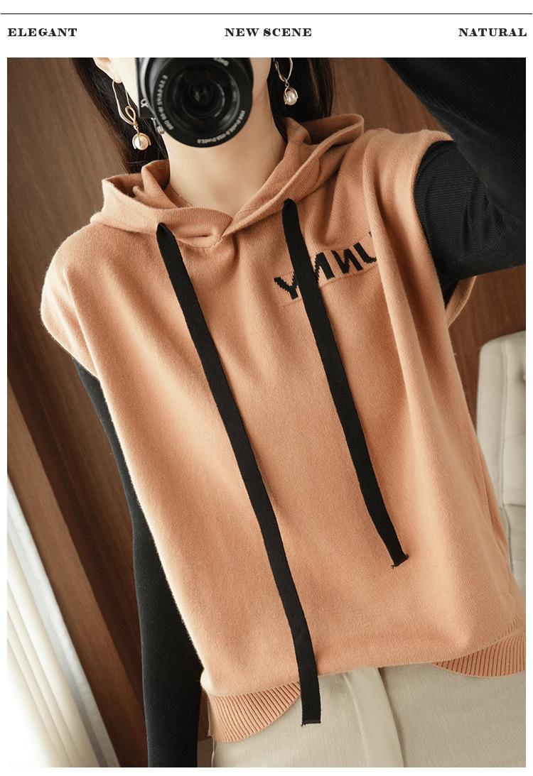 2024 primavera y verano nuevo suéter coreano de moda con capucha estampado de letras en color de contraste top holgado sin mangas para mujer