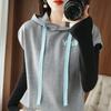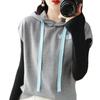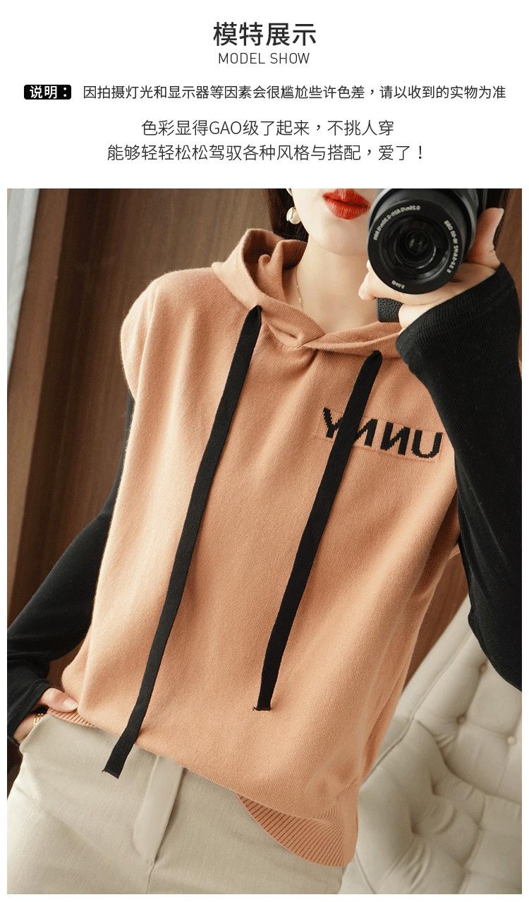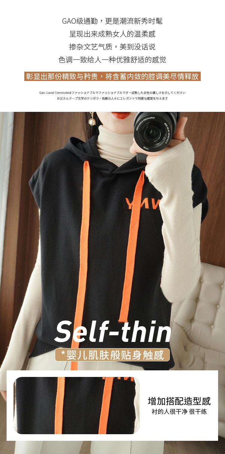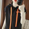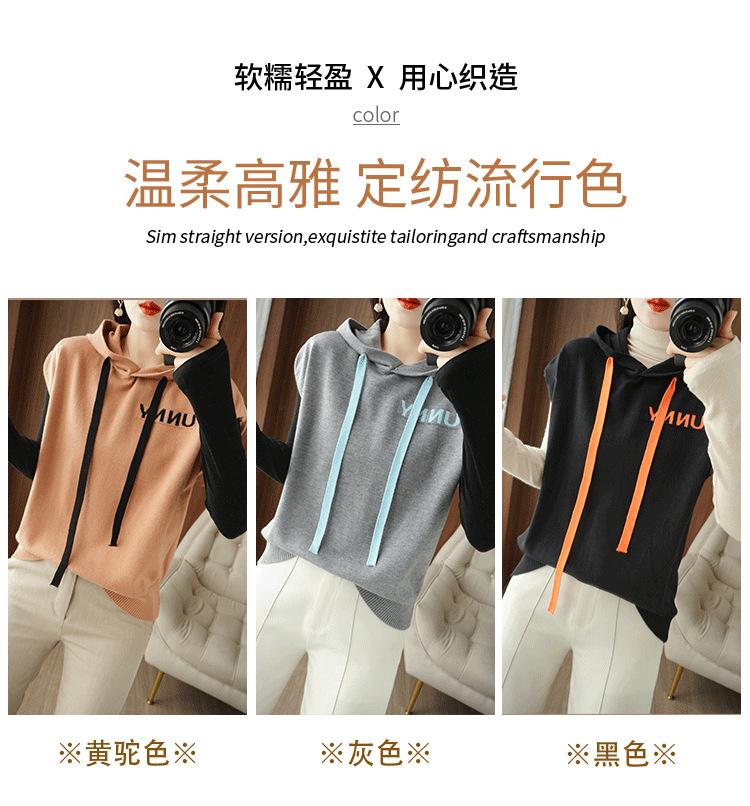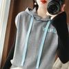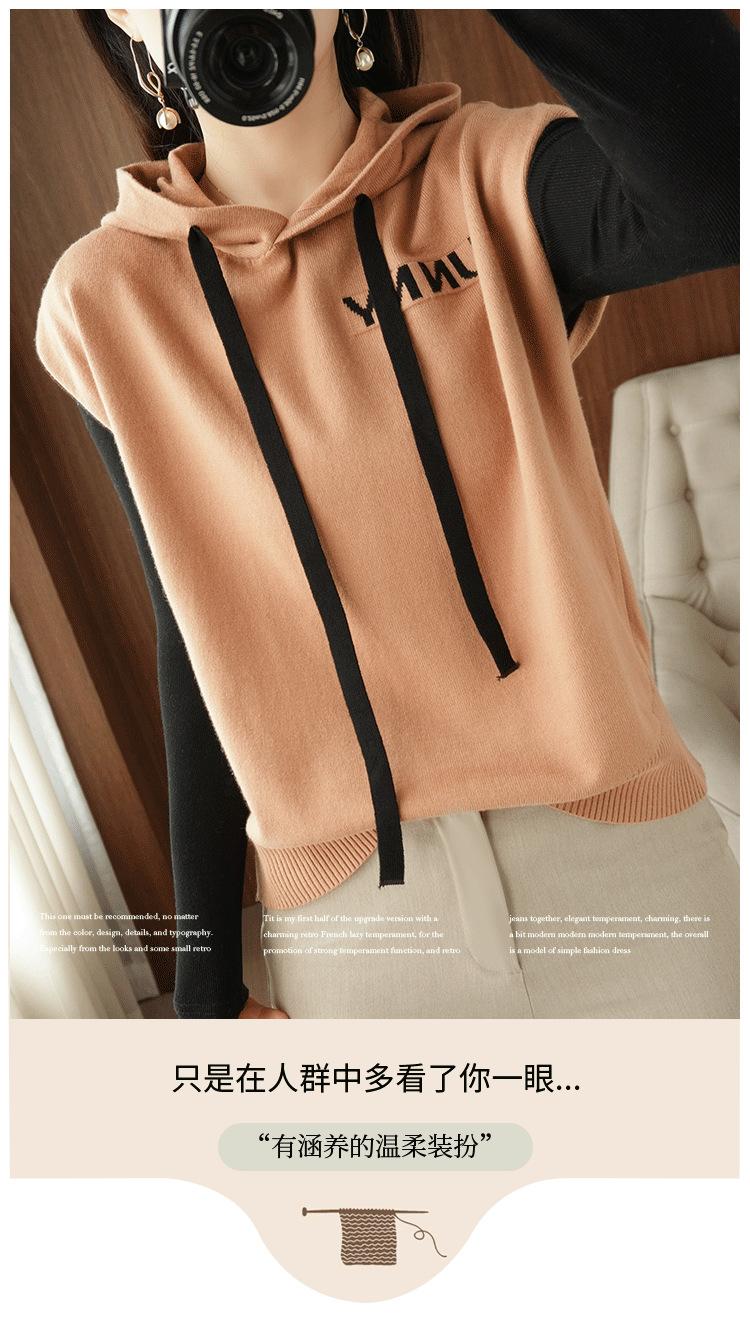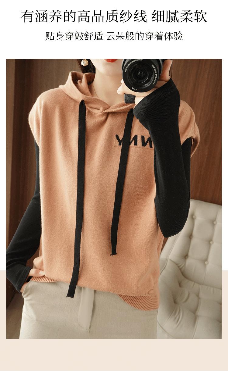 2024 primavera y verano nuevo suéter coreano de moda con capucha estampado de letras en color de contraste top holgado sin mangas para mujer