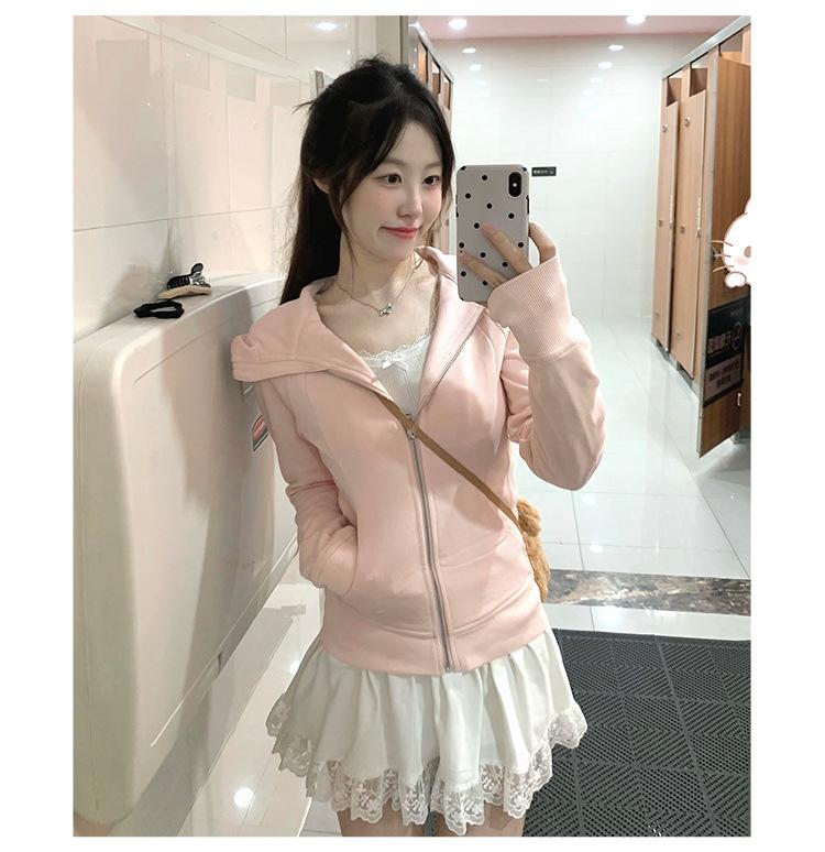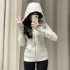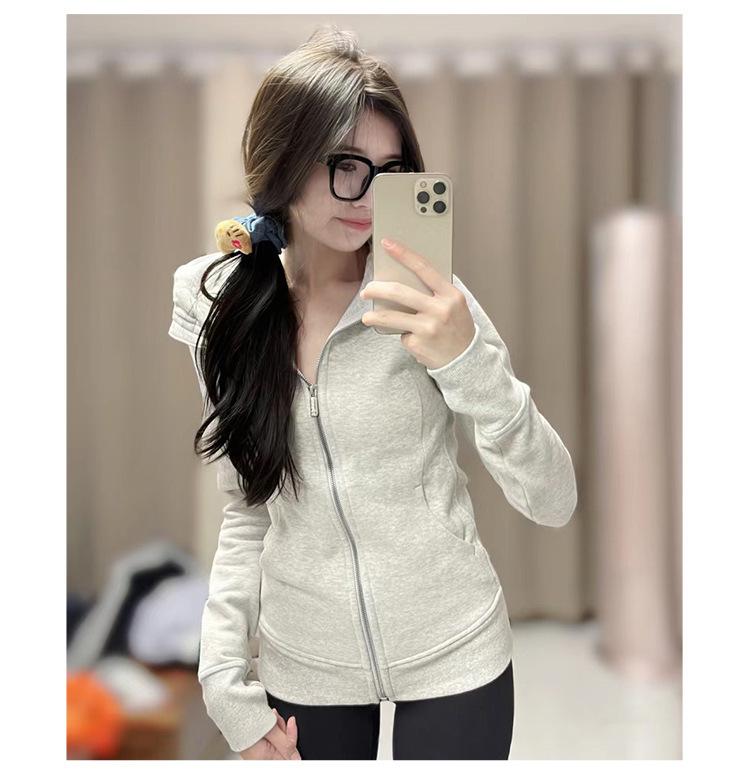 Sudadera Jimo para mujer transfronteriza 2025 Otoño/Invierno Nueva Ropa de Yoga de Corte Slim Top con Capucha Petite Chaqueta de Hombro Recto
