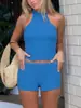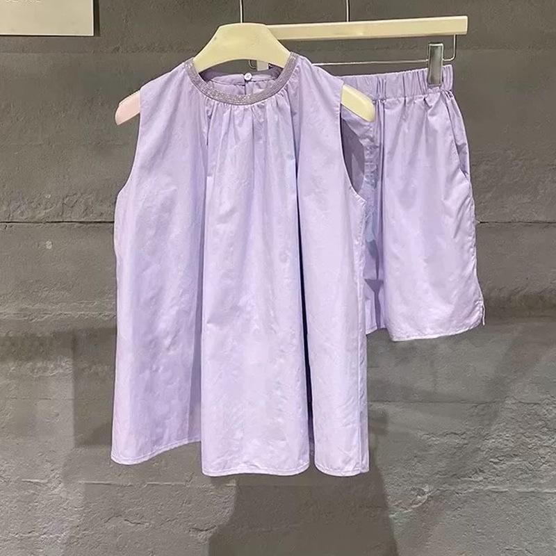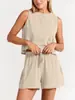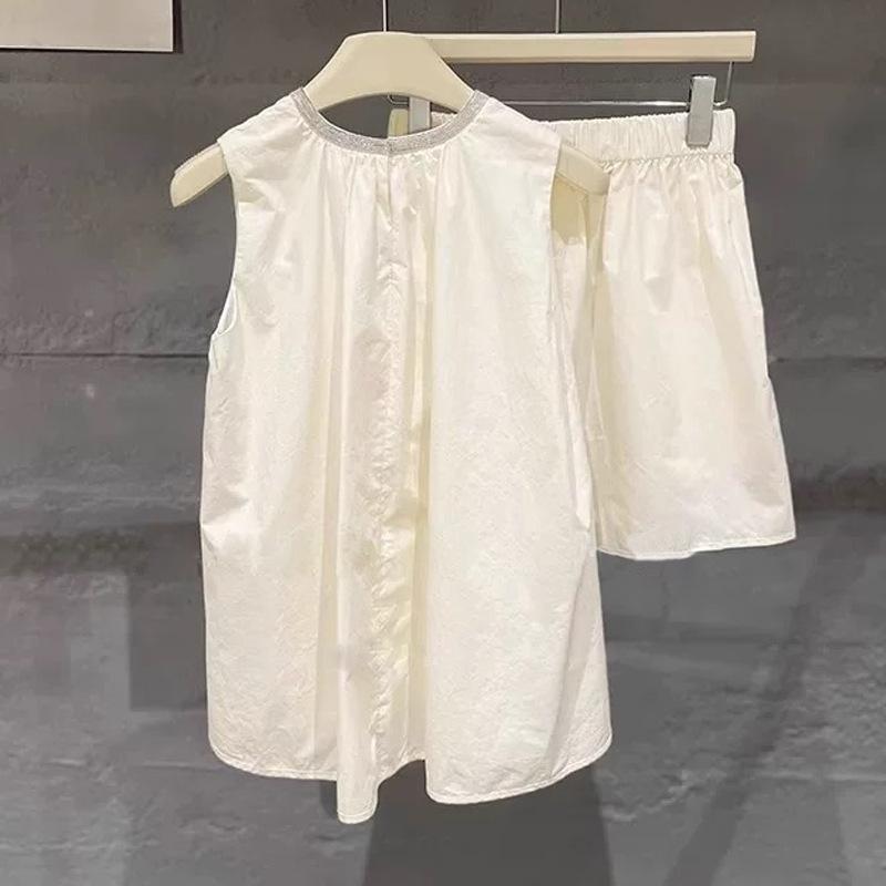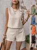 2025 Nuevo Verano Lujo Accesible para Mujer Top Chaleco sin Mangas con Lentejuelas + Shorts de Cintura Elástica Traje de Dos Piezas de Color Puro