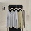 2025 Primavera/Verano Nuevo Estilo Coreano Ins Simple Versátil Cuello Redondo Espalda Descubierta Manga Larga Camiseta Top Protección Solar Estilo Principios de Otoño