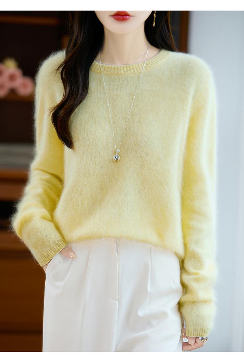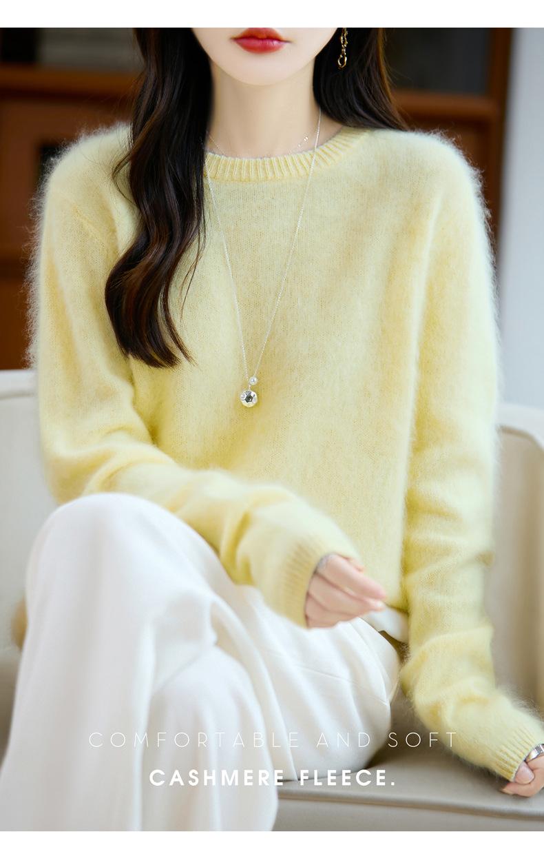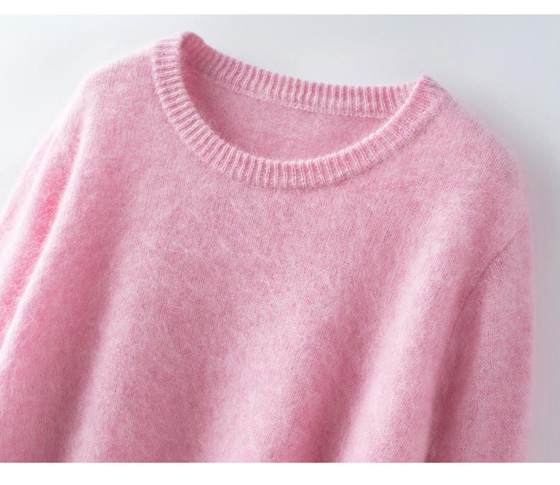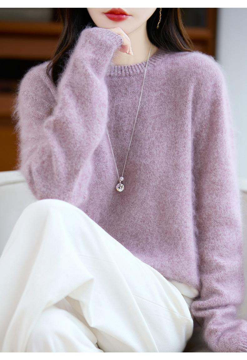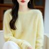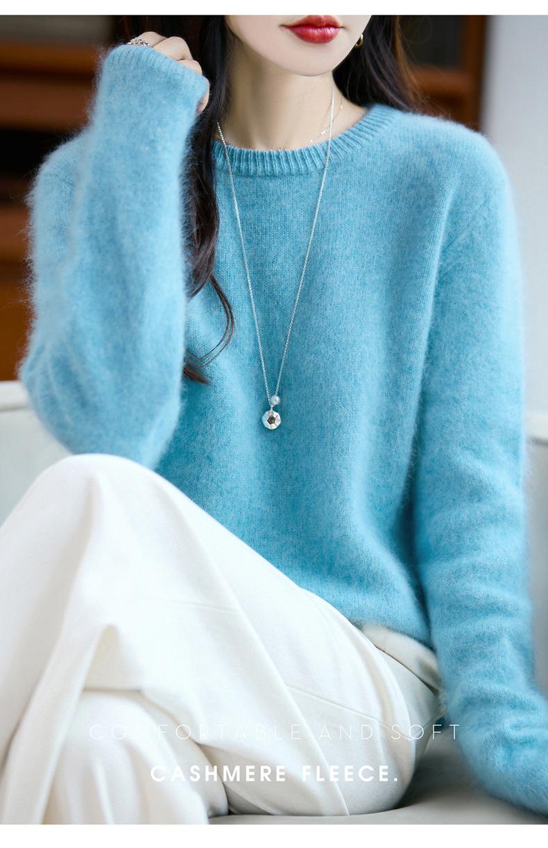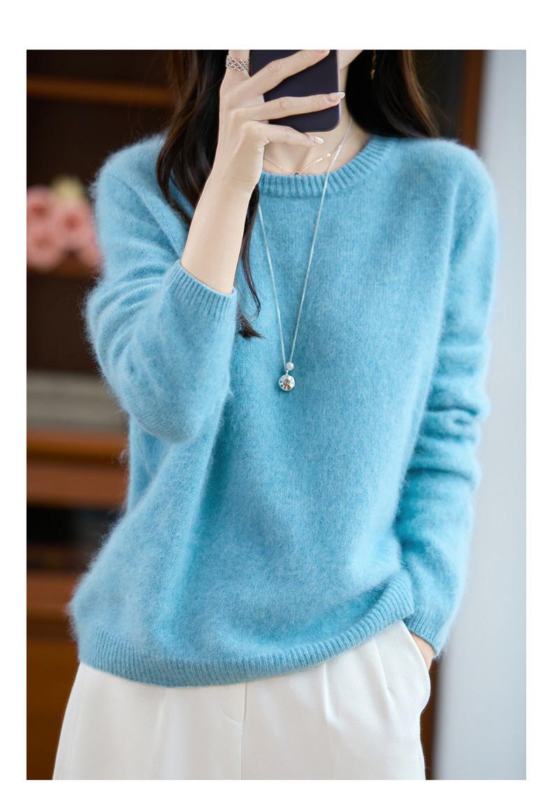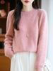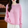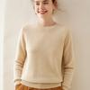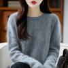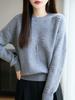 Suéter de Punto Grueso de Siete Agujas de Color Sólido Cómodo Suave 100% Lana Pura Cepillado Otoño e Invierno Nuevo Jersey de Cuello Redondo para Mujer Capa Base