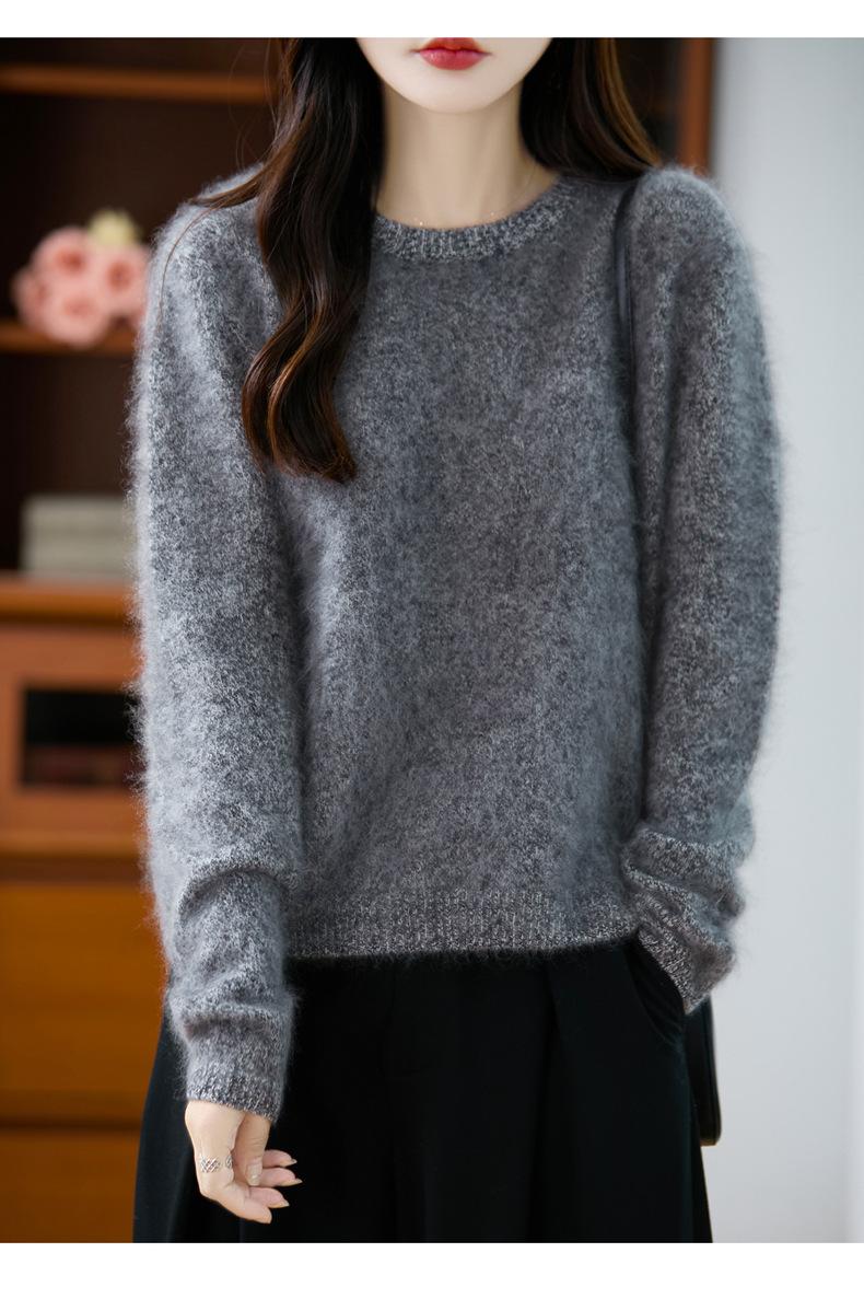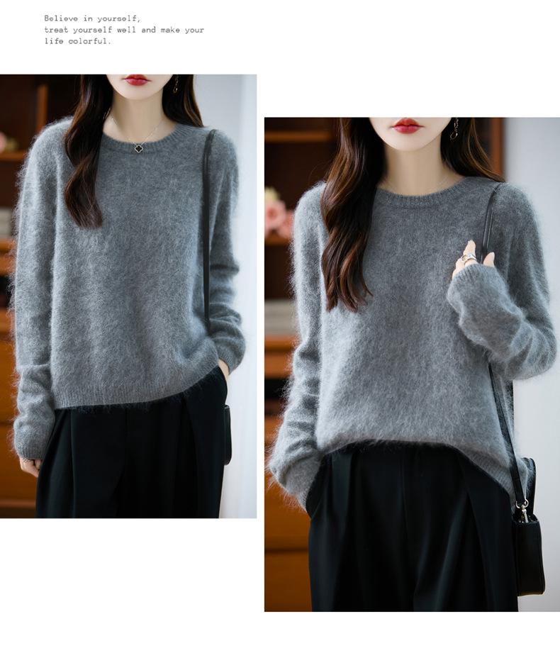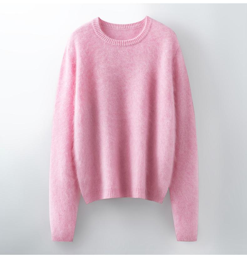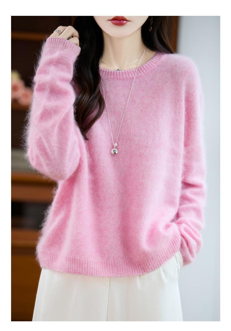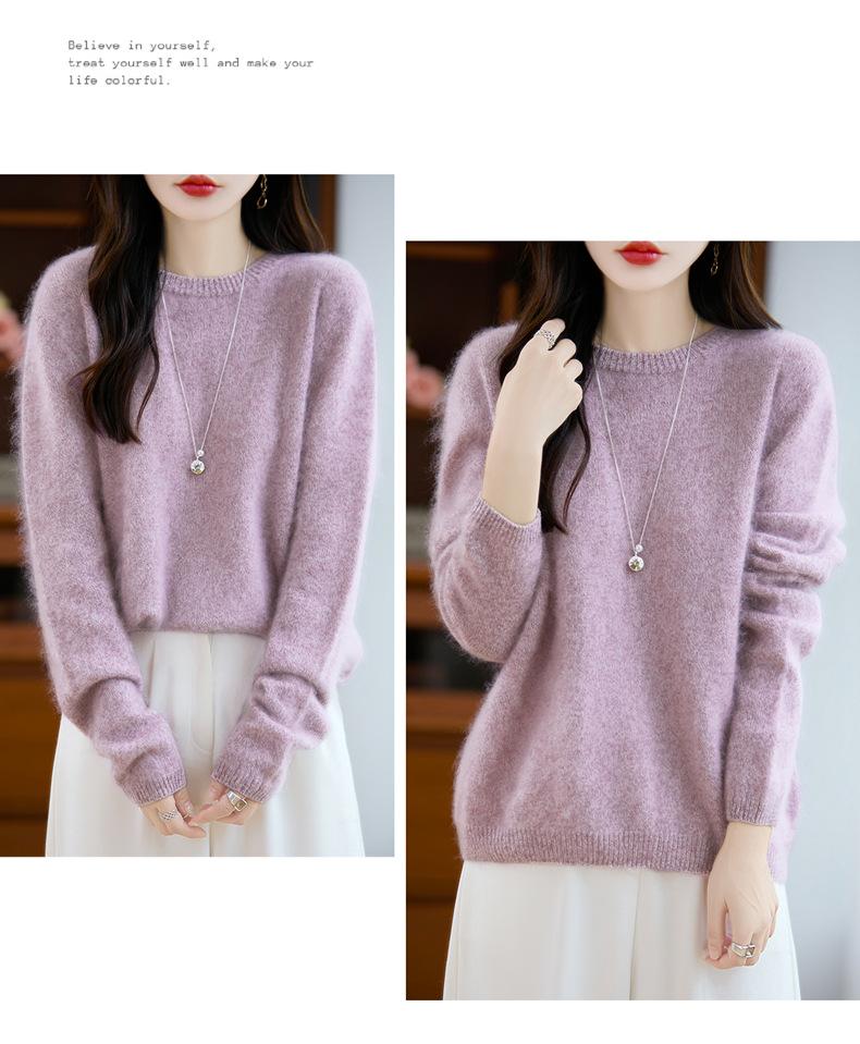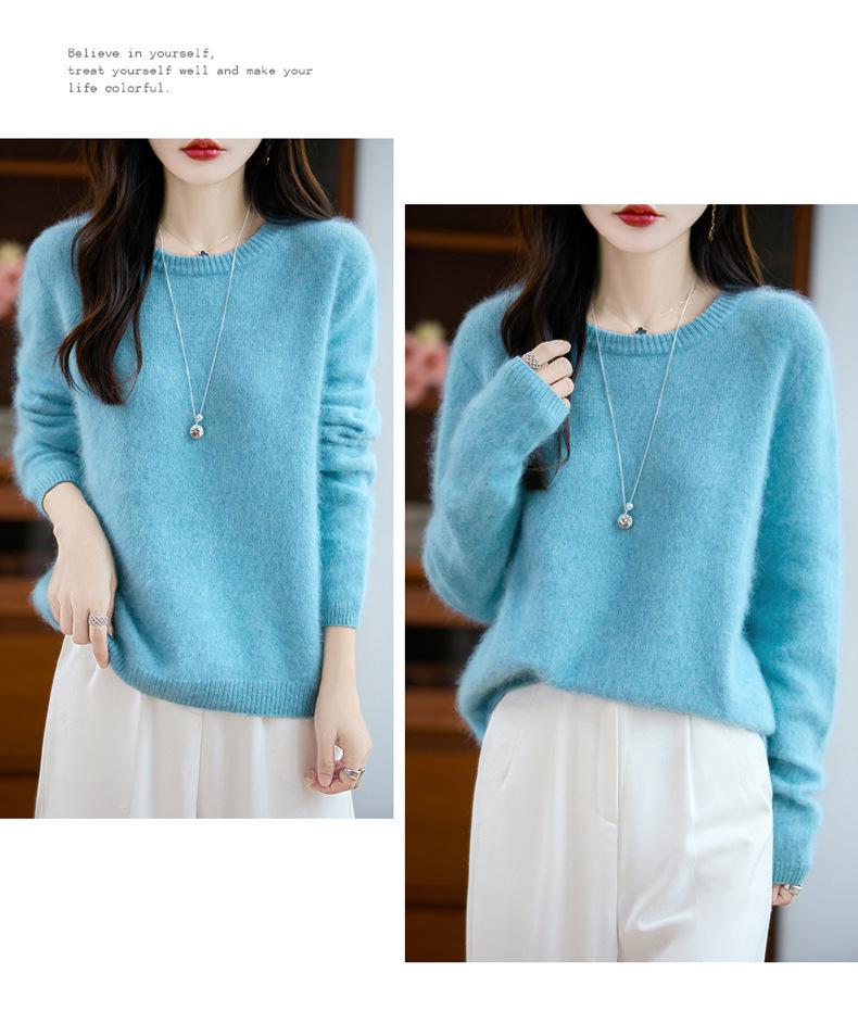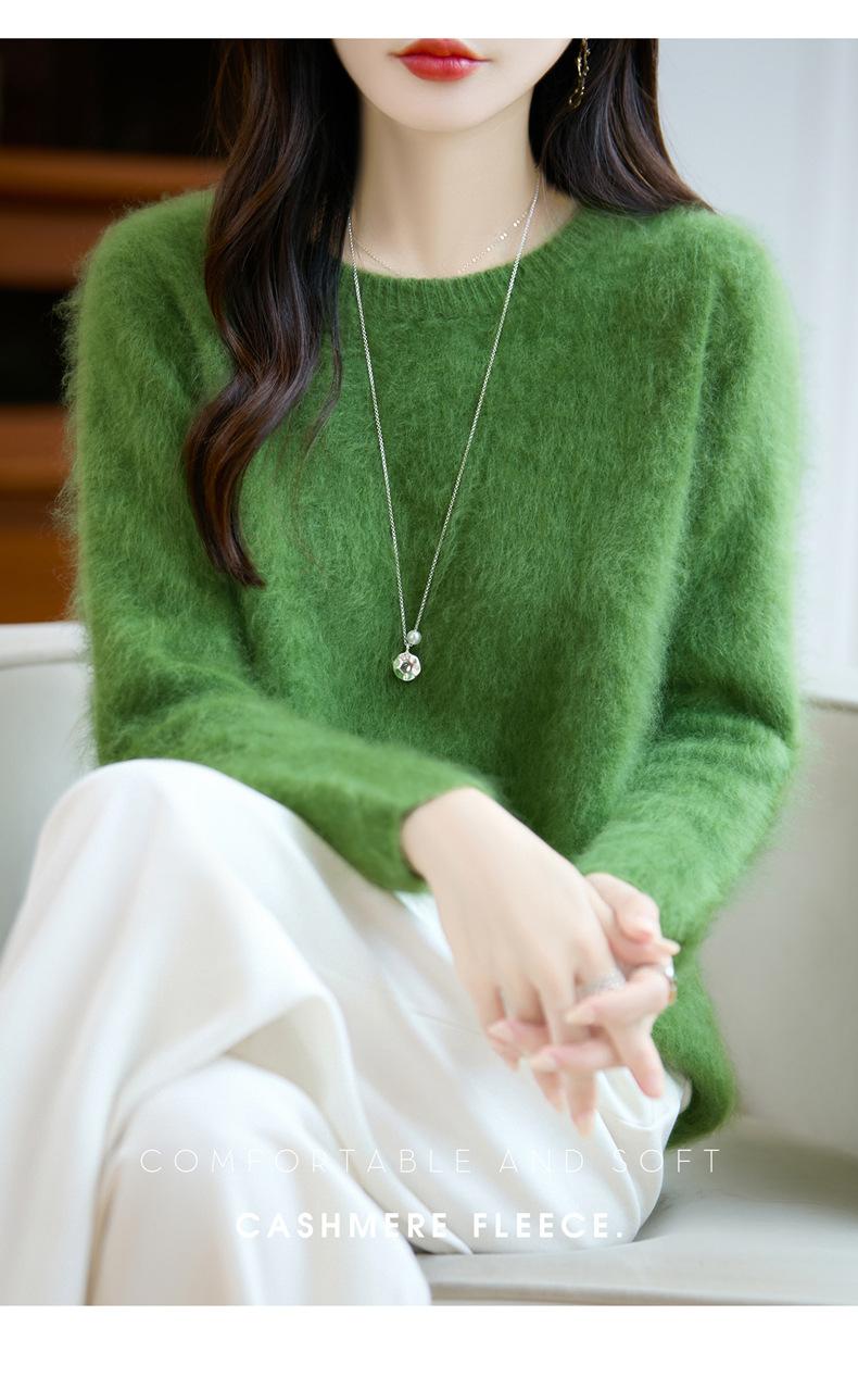 Suéter de Punto Grueso de Siete Agujas de Color Sólido Cómodo Suave 100% Lana Pura Cepillado Otoño e Invierno Nuevo Jersey de Cuello Redondo para Mujer Capa Base