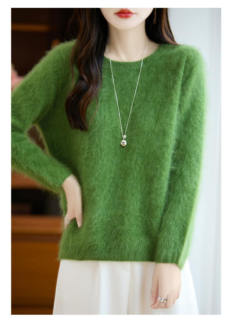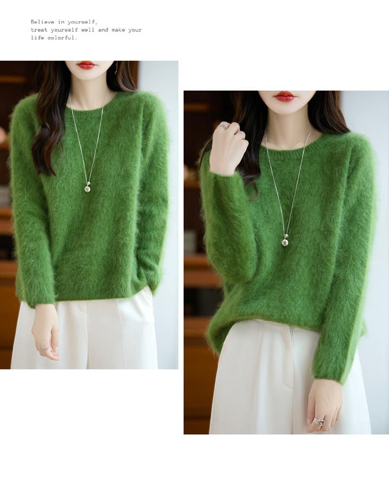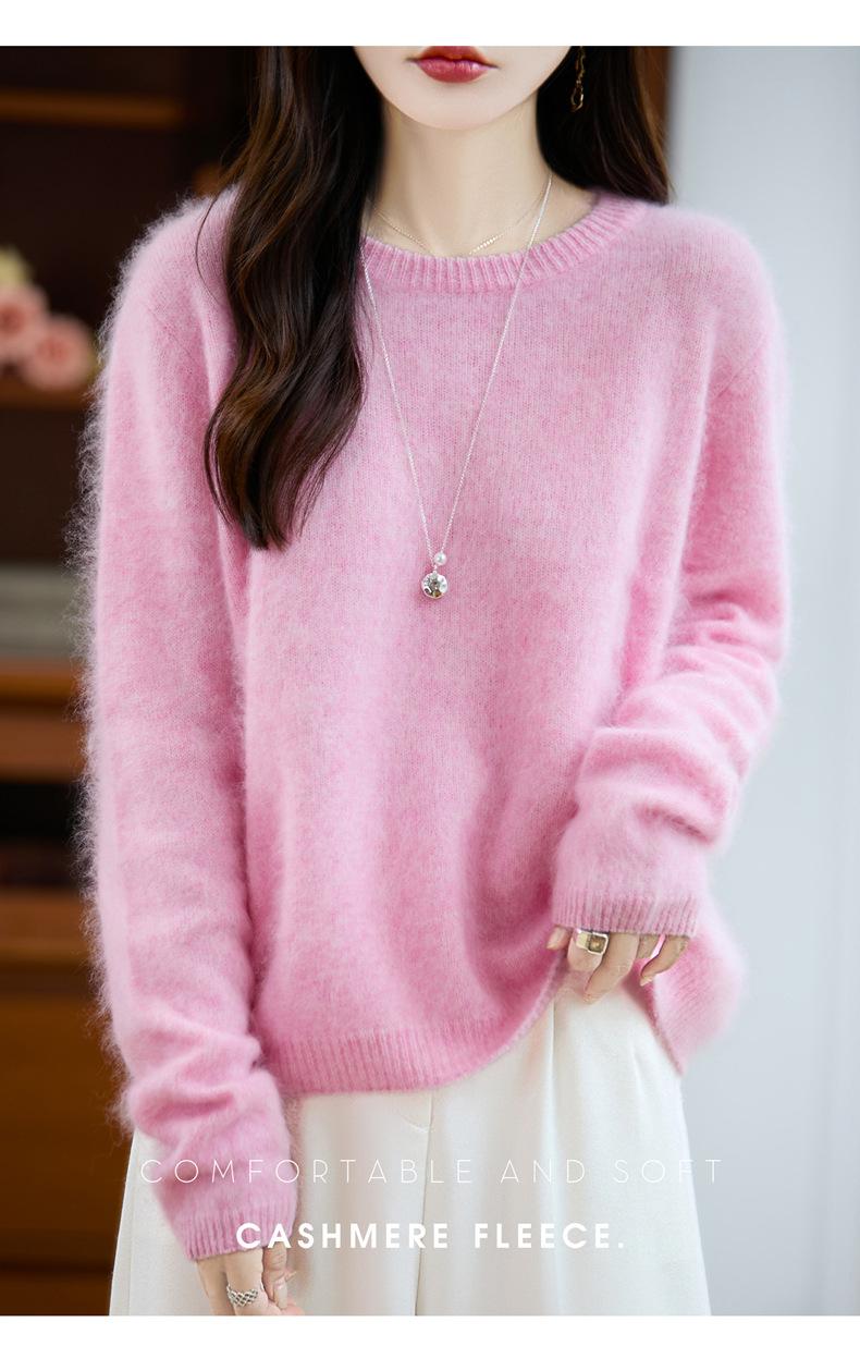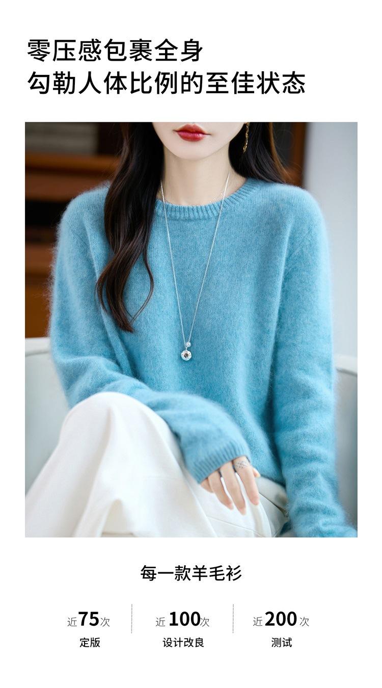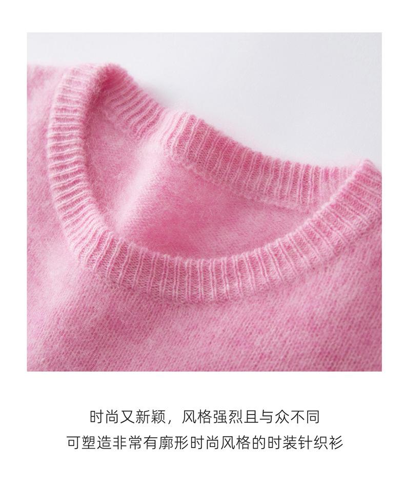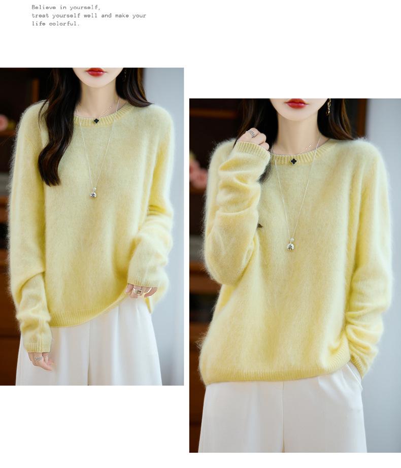 Suéter de Punto Grueso de Siete Agujas de Color Sólido Cómodo Suave 100% Lana Pura Cepillado Otoño e Invierno Nuevo Jersey de Cuello Redondo para Mujer Capa Base