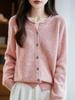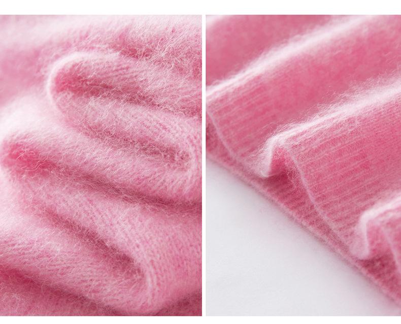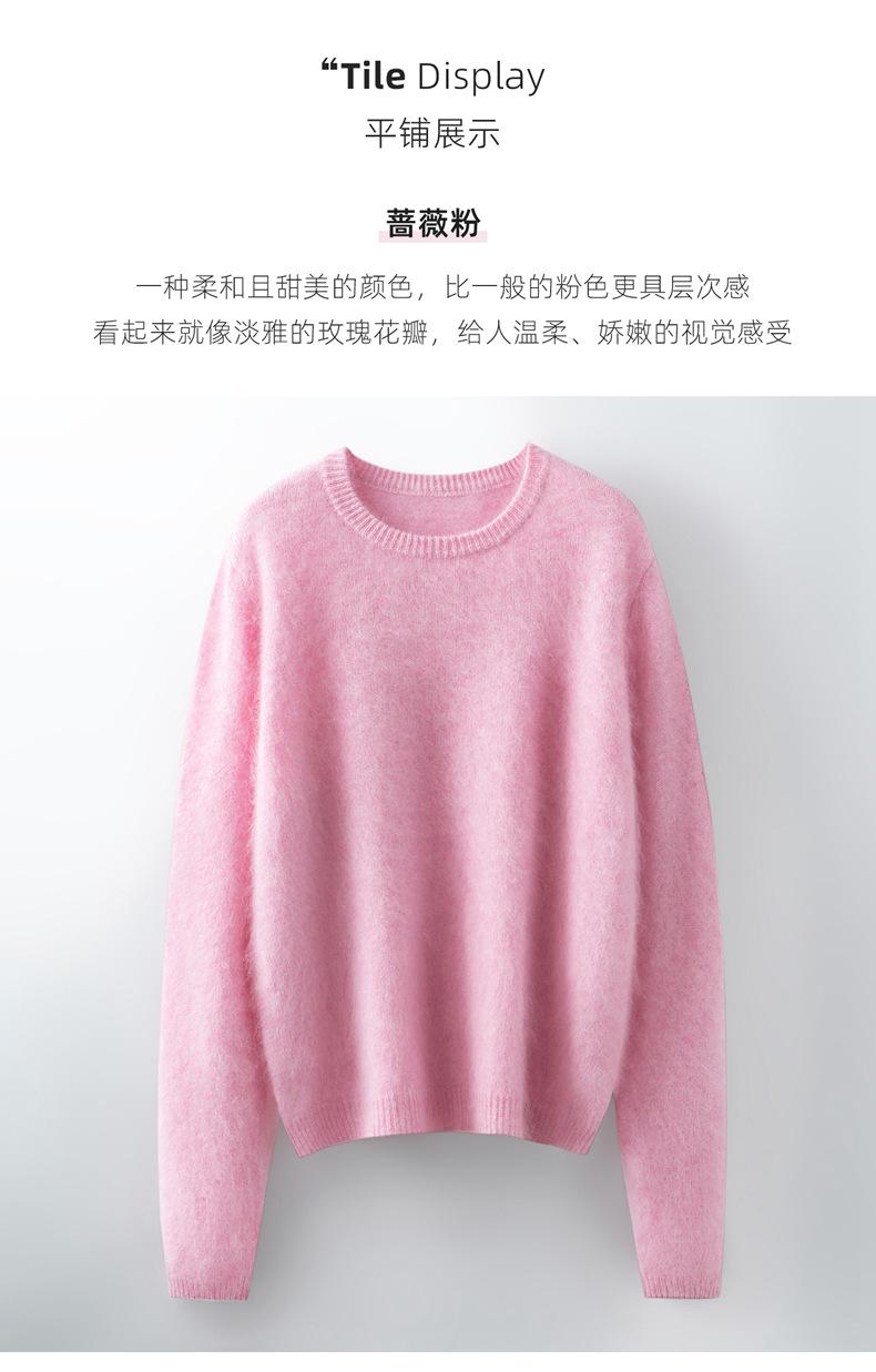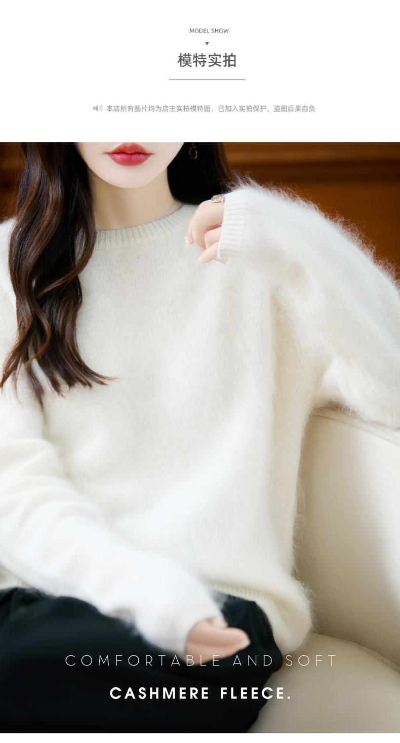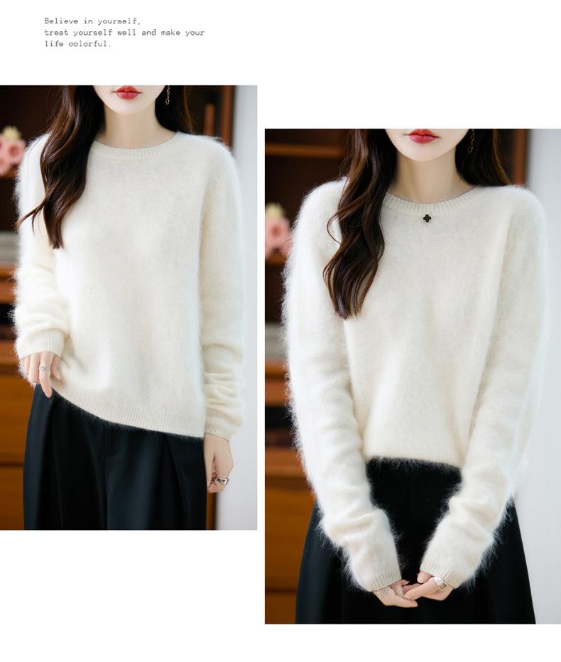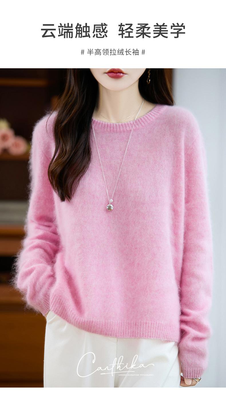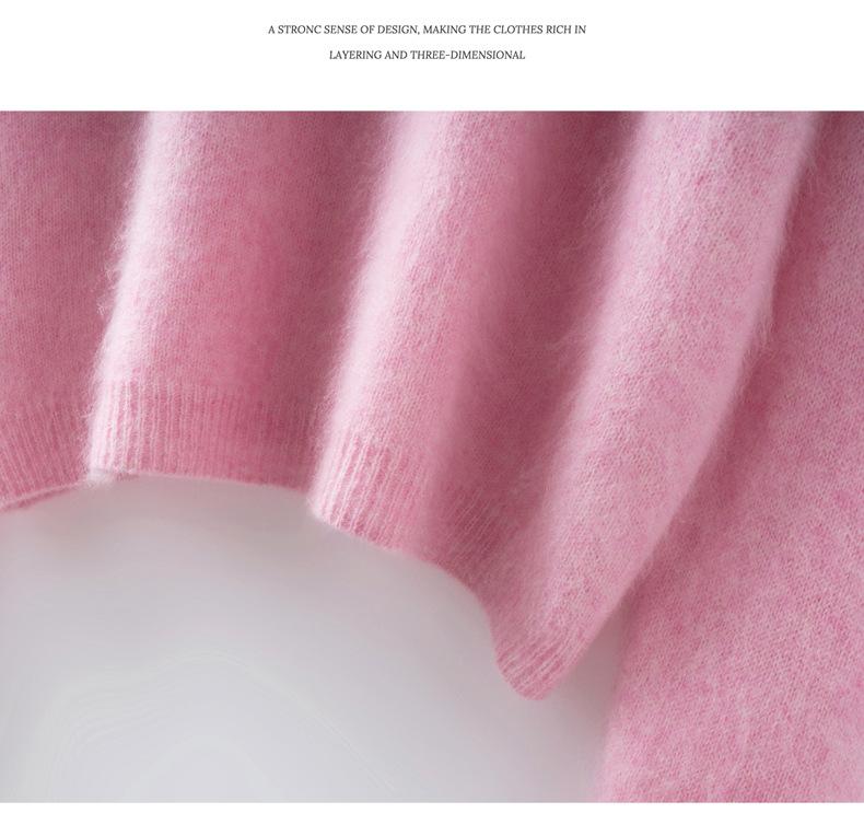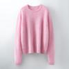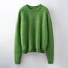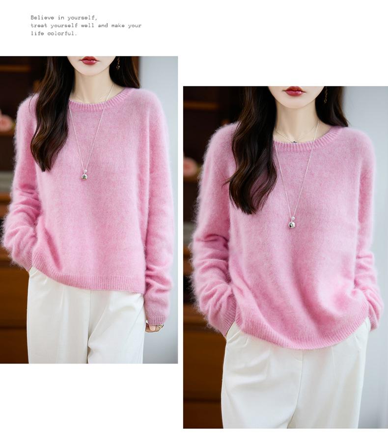 Suéter de Punto Grueso de Siete Agujas de Color Sólido Cómodo Suave 100% Lana Pura Cepillado Otoño e Invierno Nuevo Jersey de Cuello Redondo para Mujer Capa Base