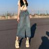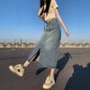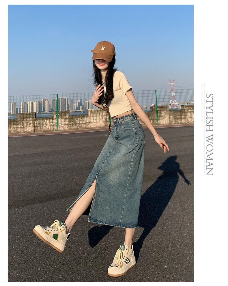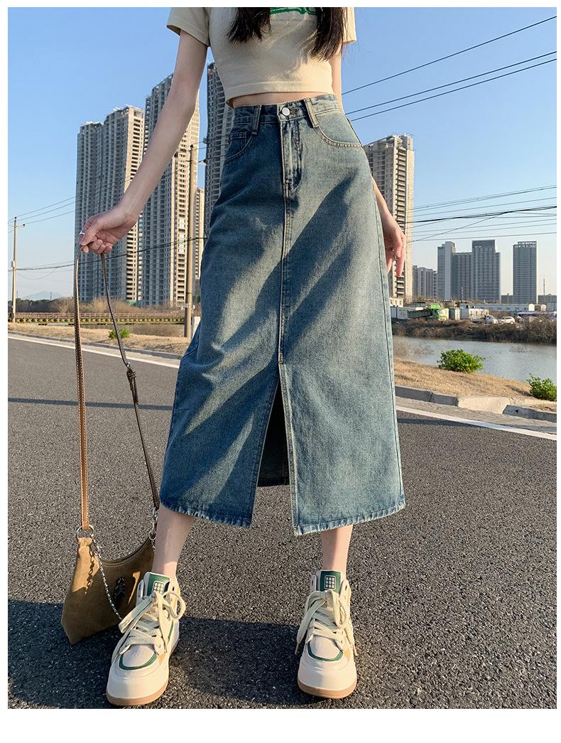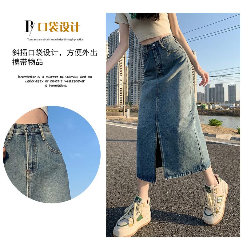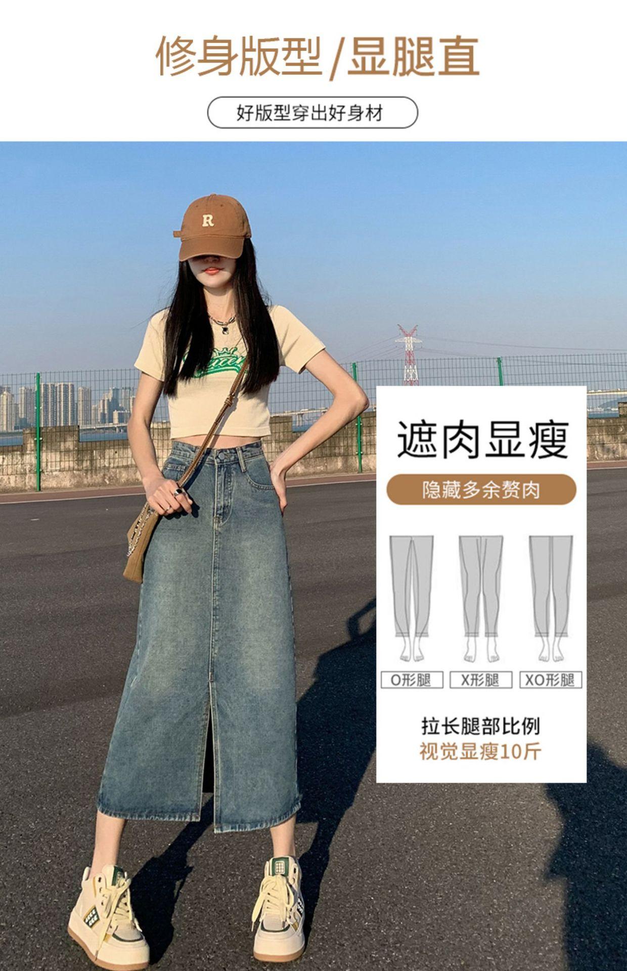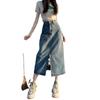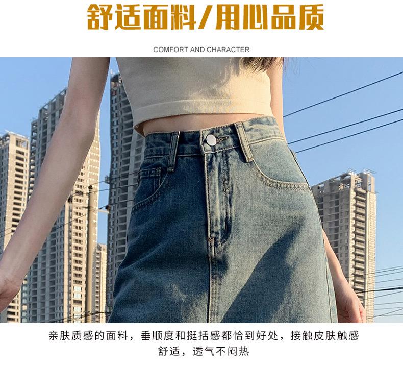 Falda de Mezclilla para Mujer Verano Cintura Alta Falda Línea A 2024 Nueva Retro Recta Holgada Línea A Largo Medio
