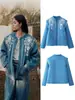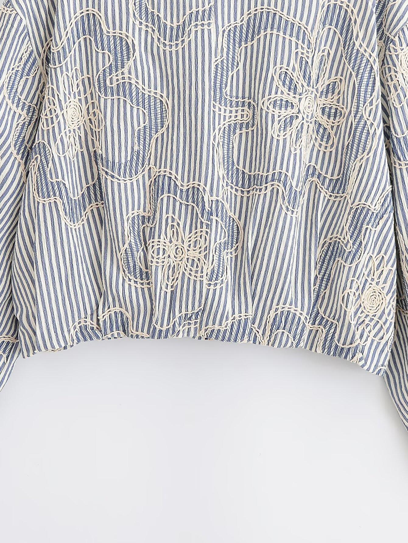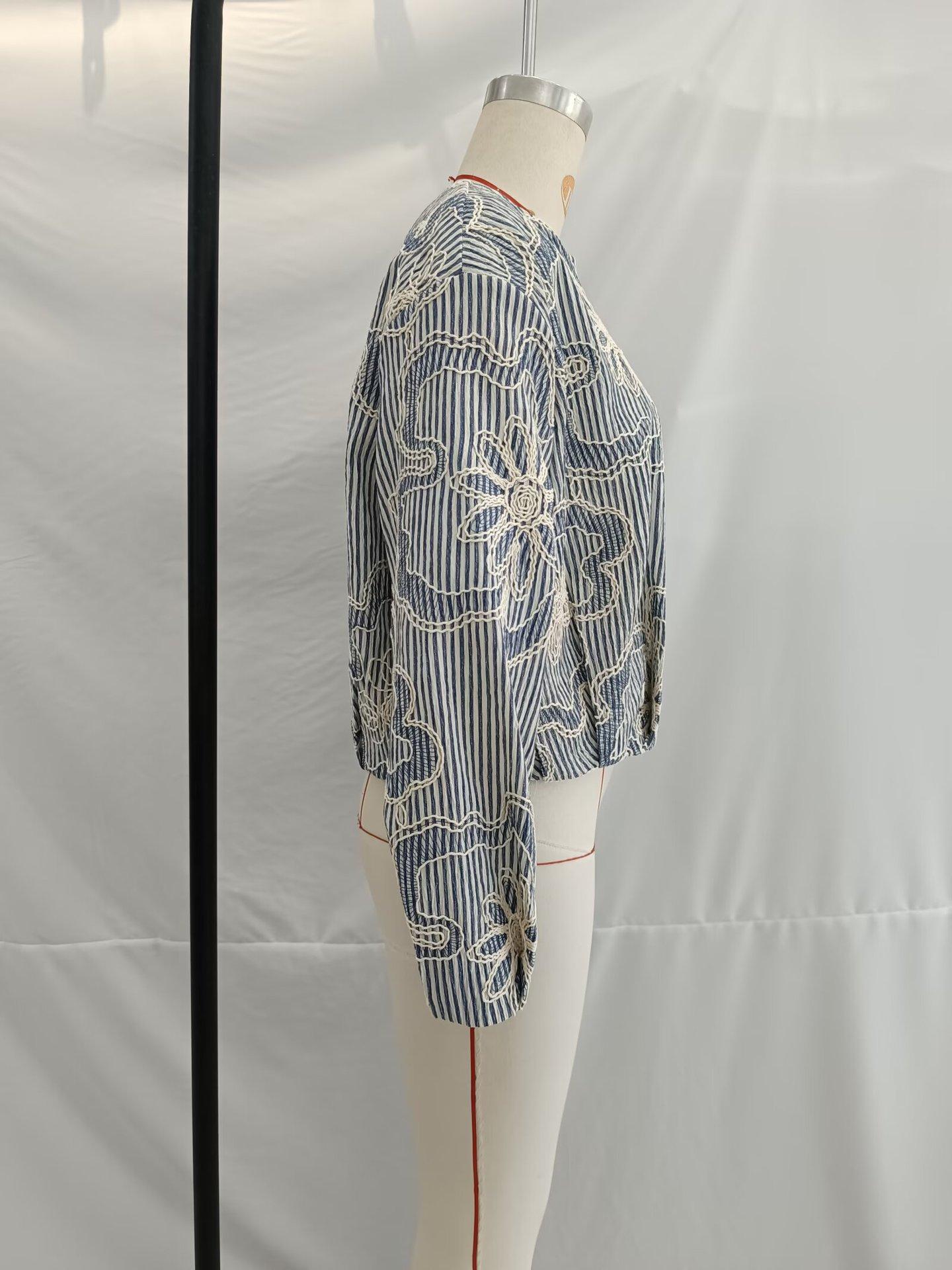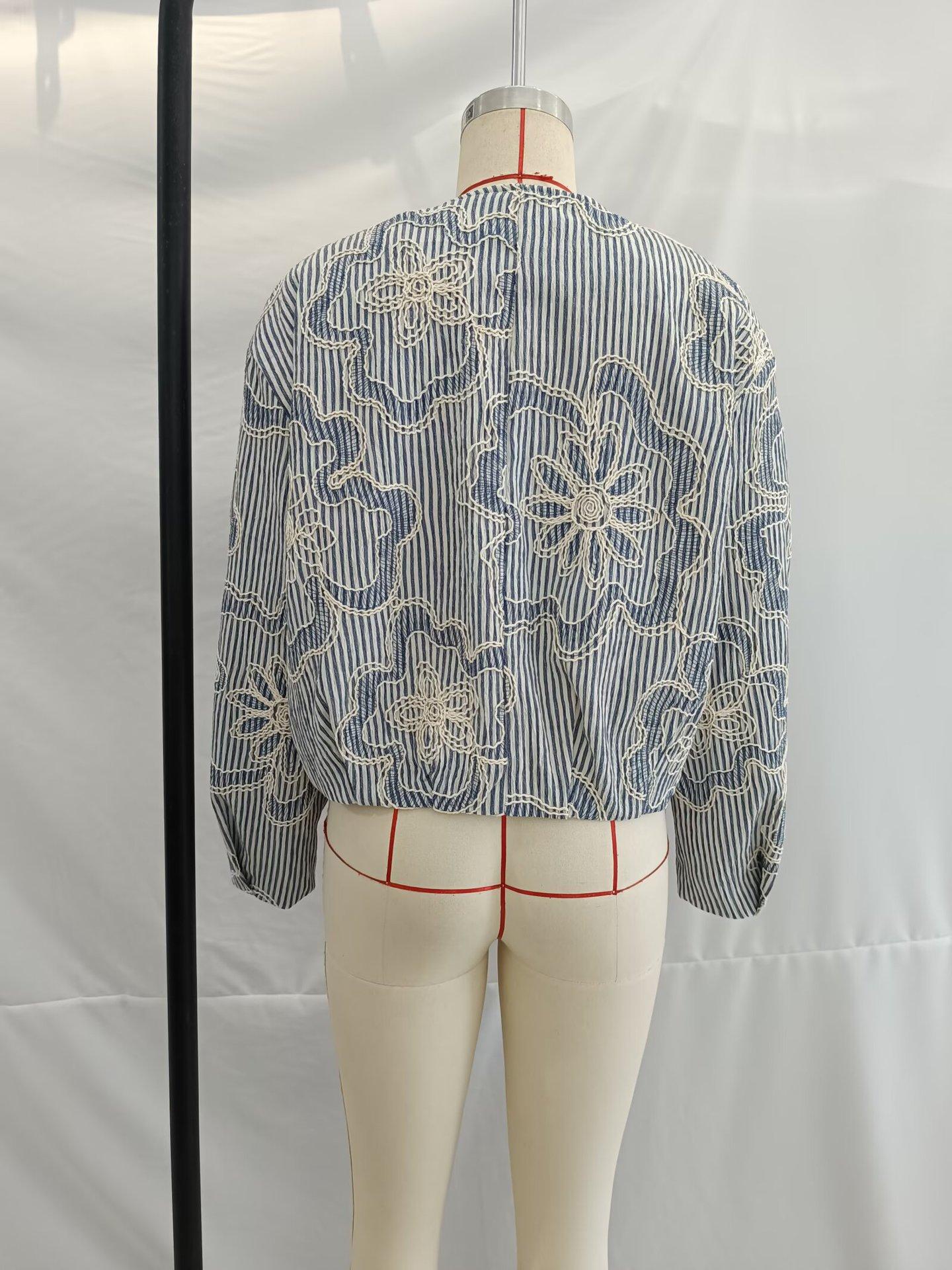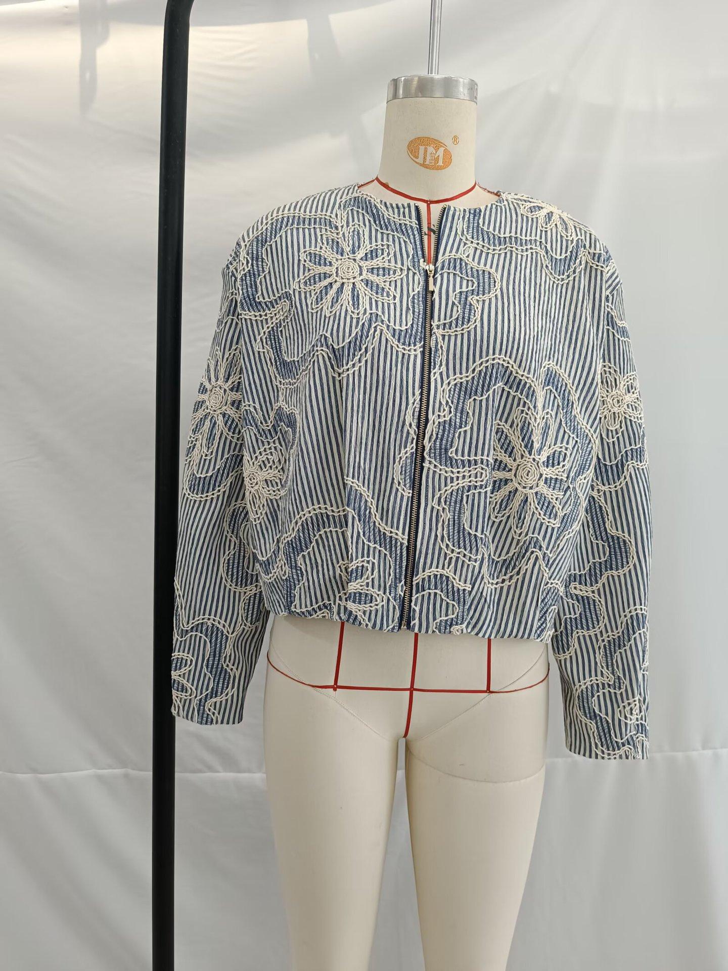 Ropa de Mujer de Comercio Exterior Otoño 2025 Estilo Europeo y Americano Cuello Redondo Manga Larga Bordado Rayado Chaqueta con Cremallera para Mujer A711523F