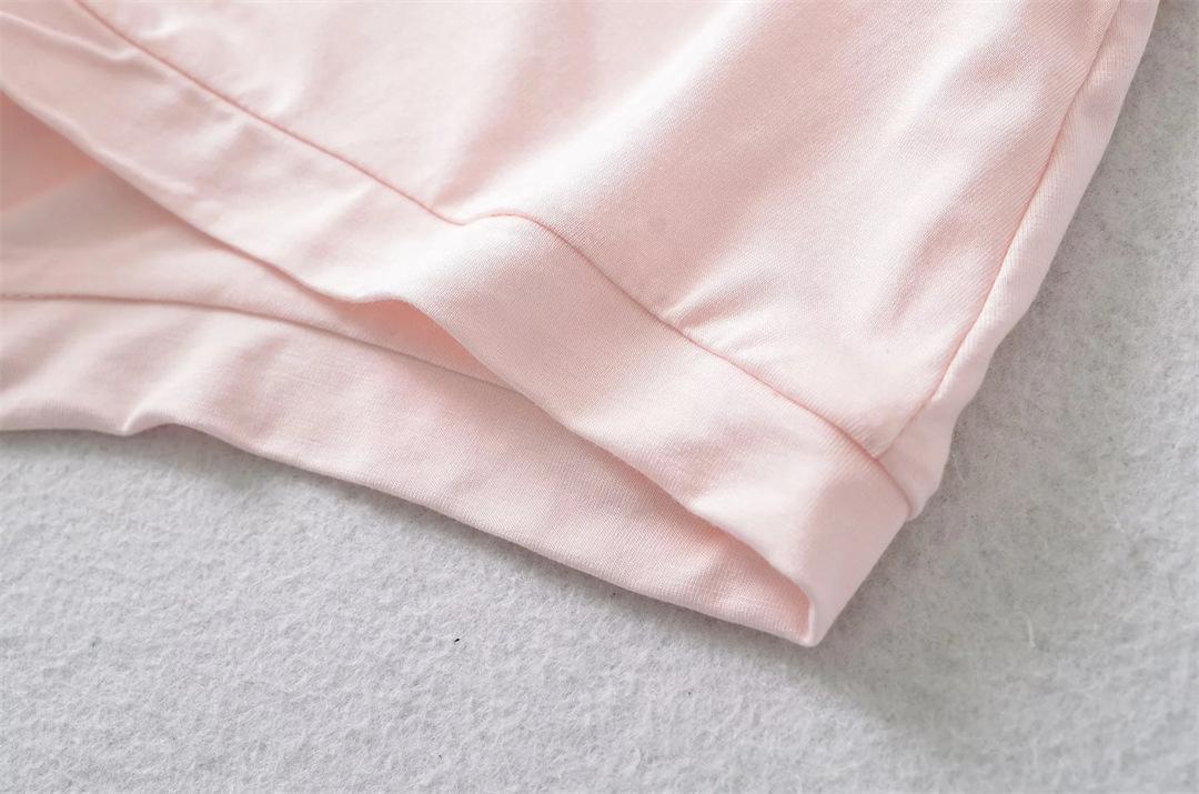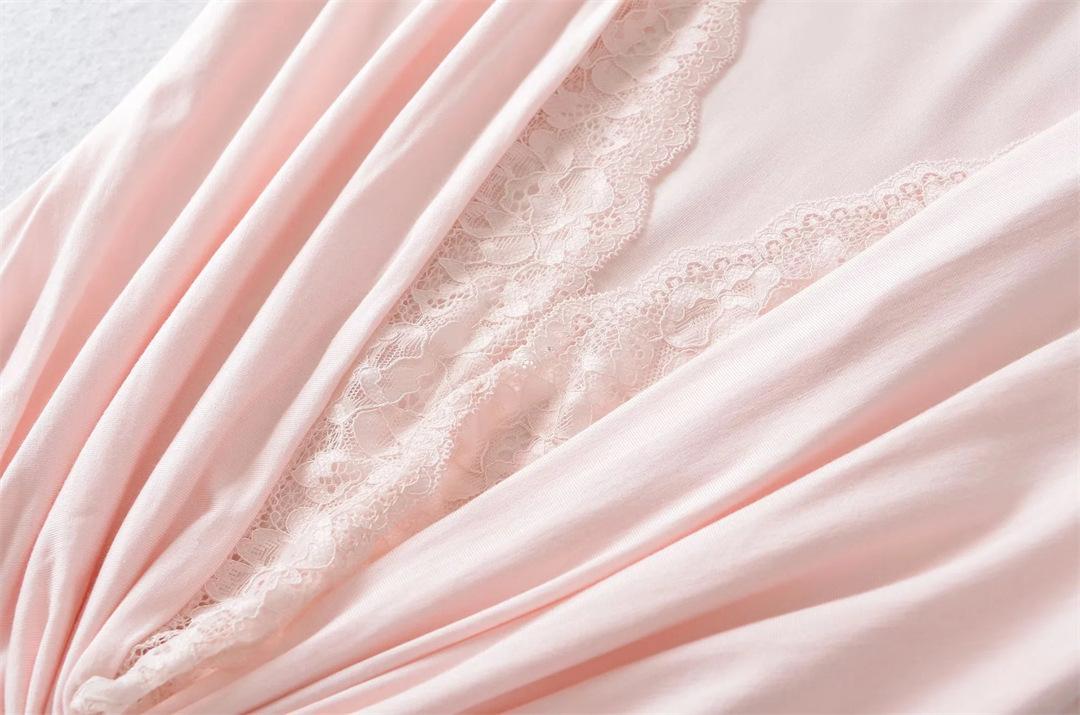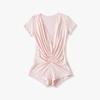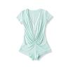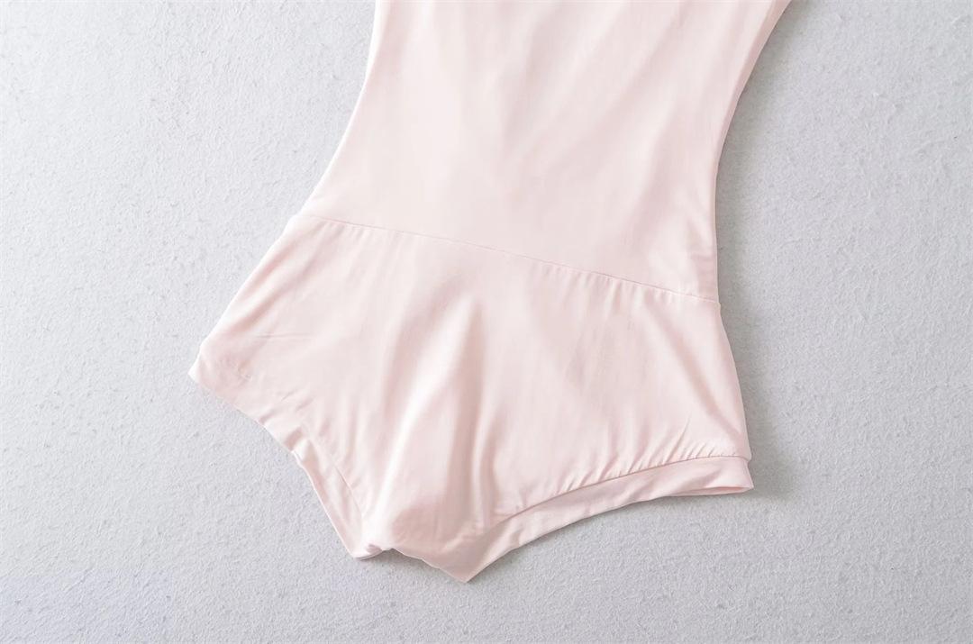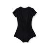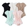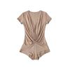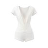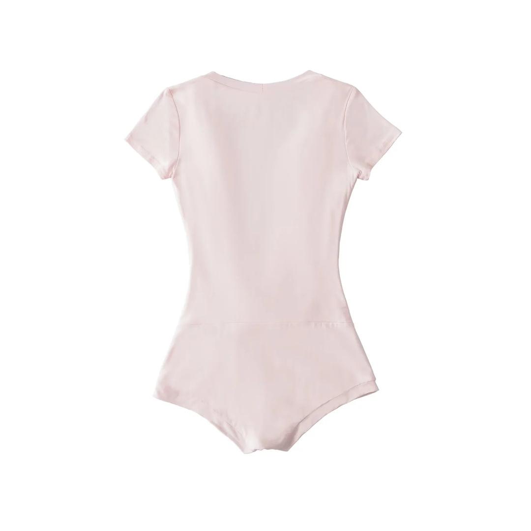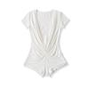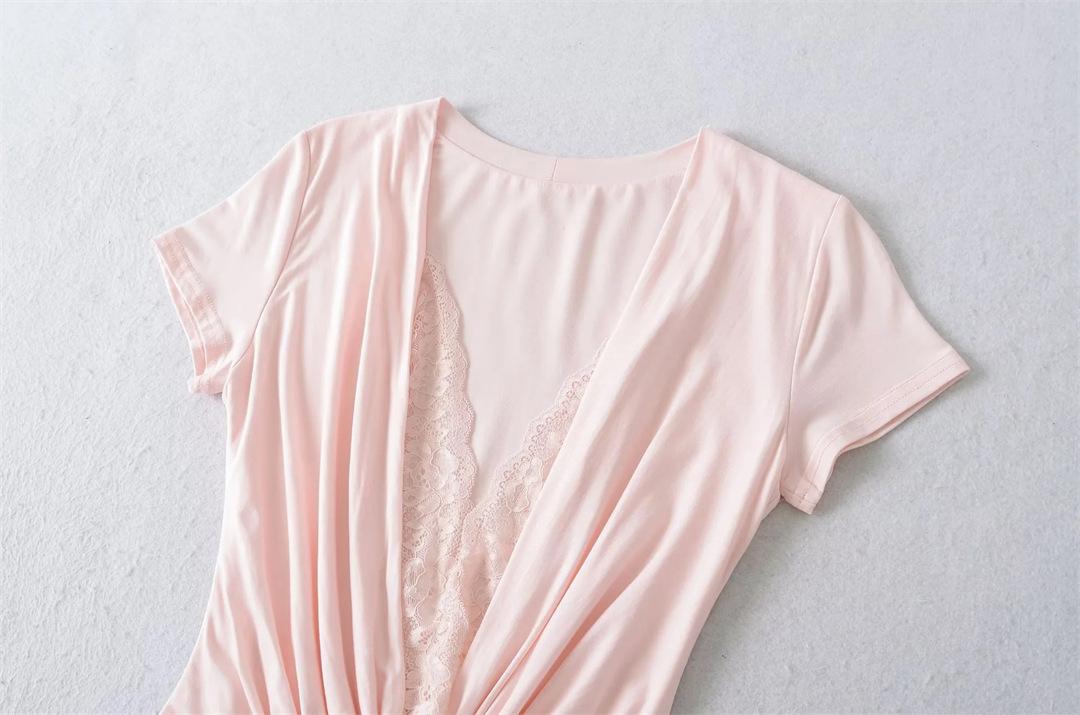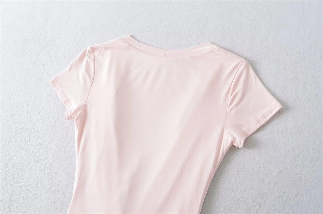 Mono de Manga Corta con Escote en V Profundo Estilo Europeo y Americano con Encaje Empalmado para Mujer Nicho Slim Pecho Plisado Camiseta Top