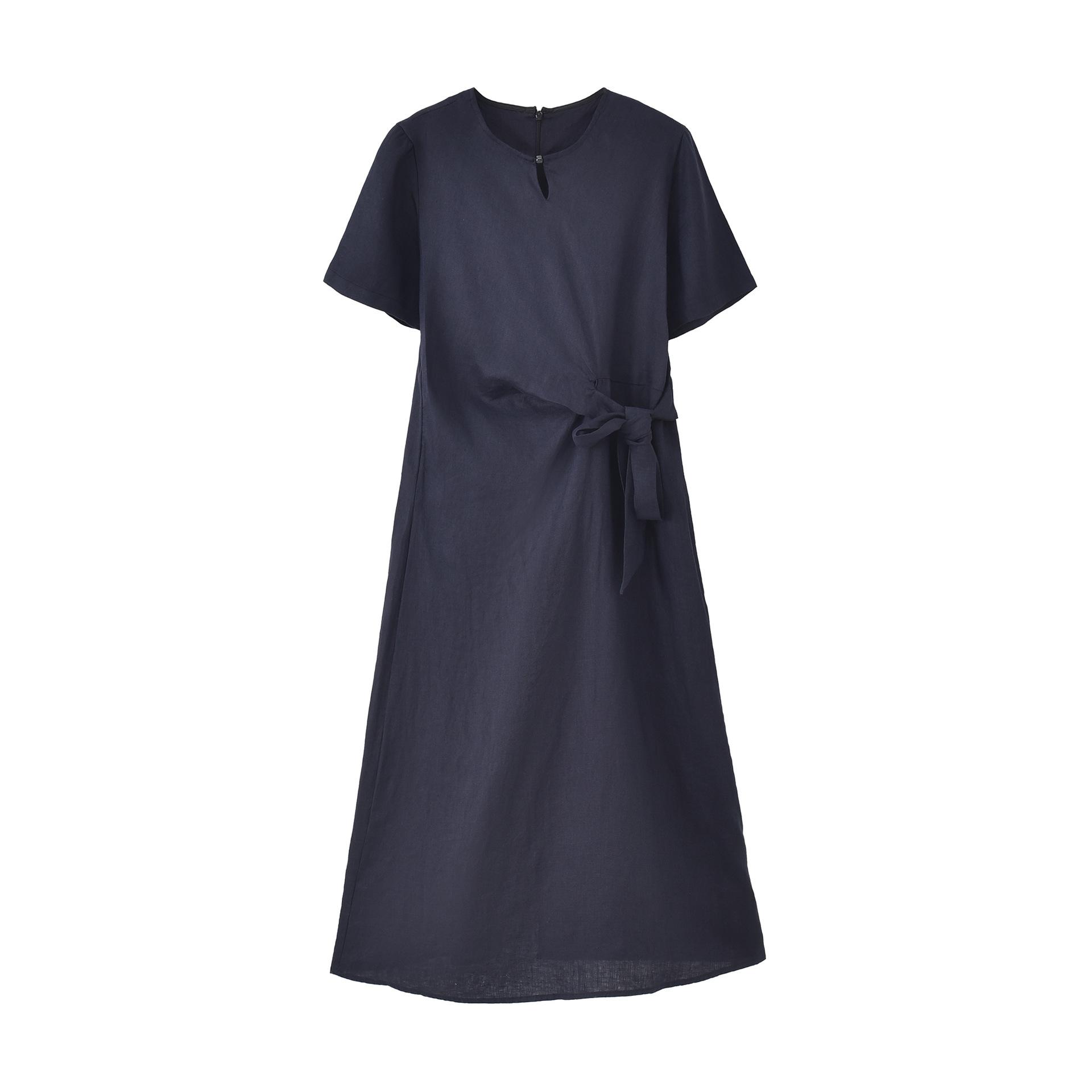Nuevo Vestido de Verano de Lino Francés Lino Rocío de Lluvia Adelgazante Cubre Vientre Holgado Casual Lujo Ligero Vestido Largo
