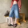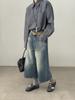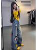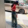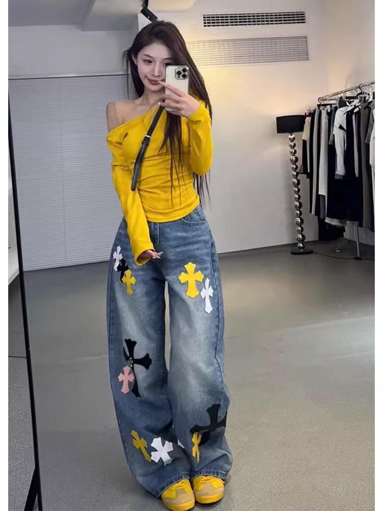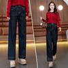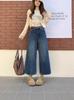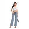 Jeans Rectos Cruz de Cuero Azul para Mujer Diseño de Verano 2025 Cintura Alta Elegantes Adelgazantes Pierna Ancha Pantalones Largos