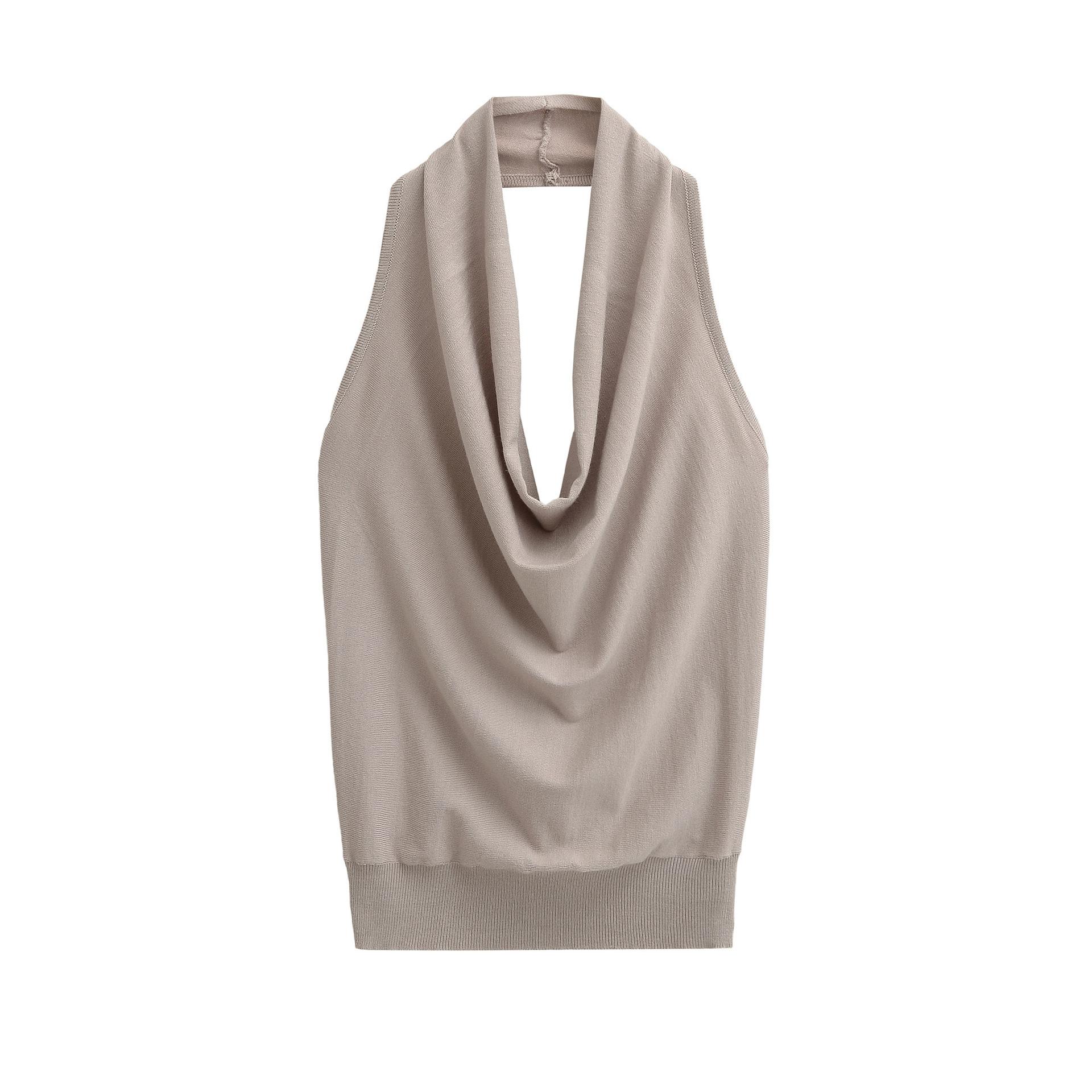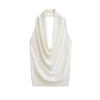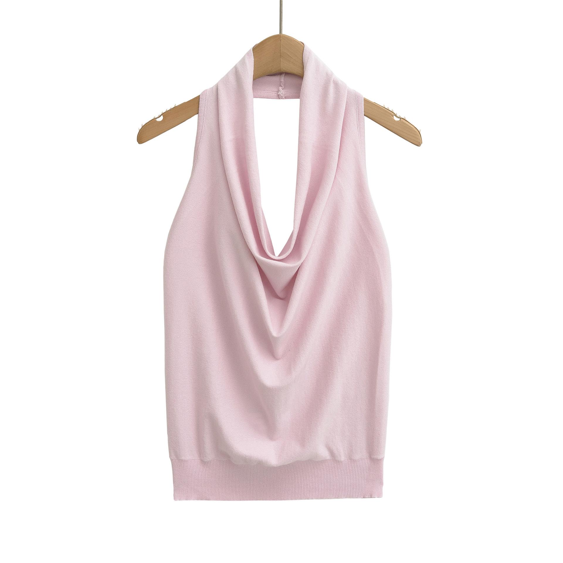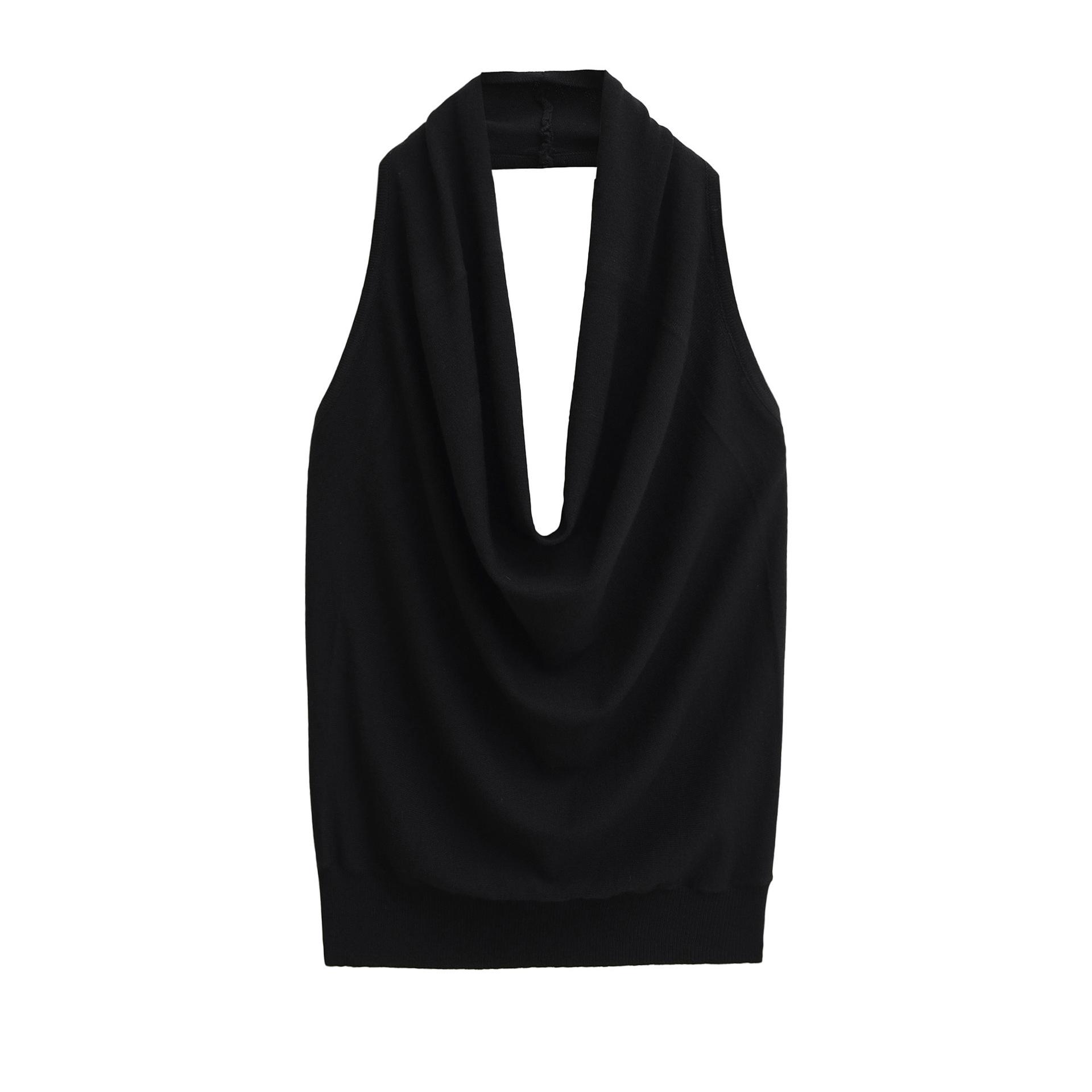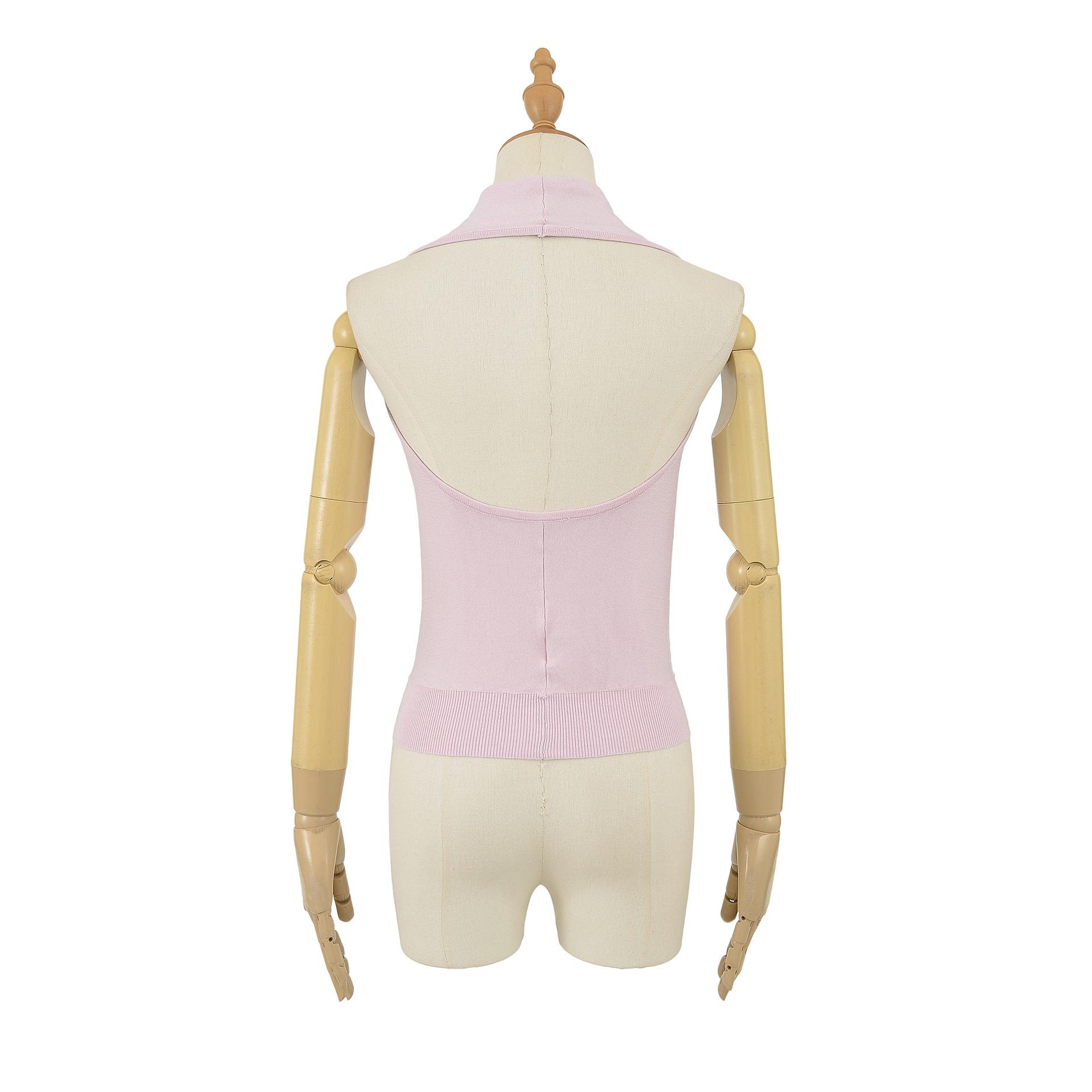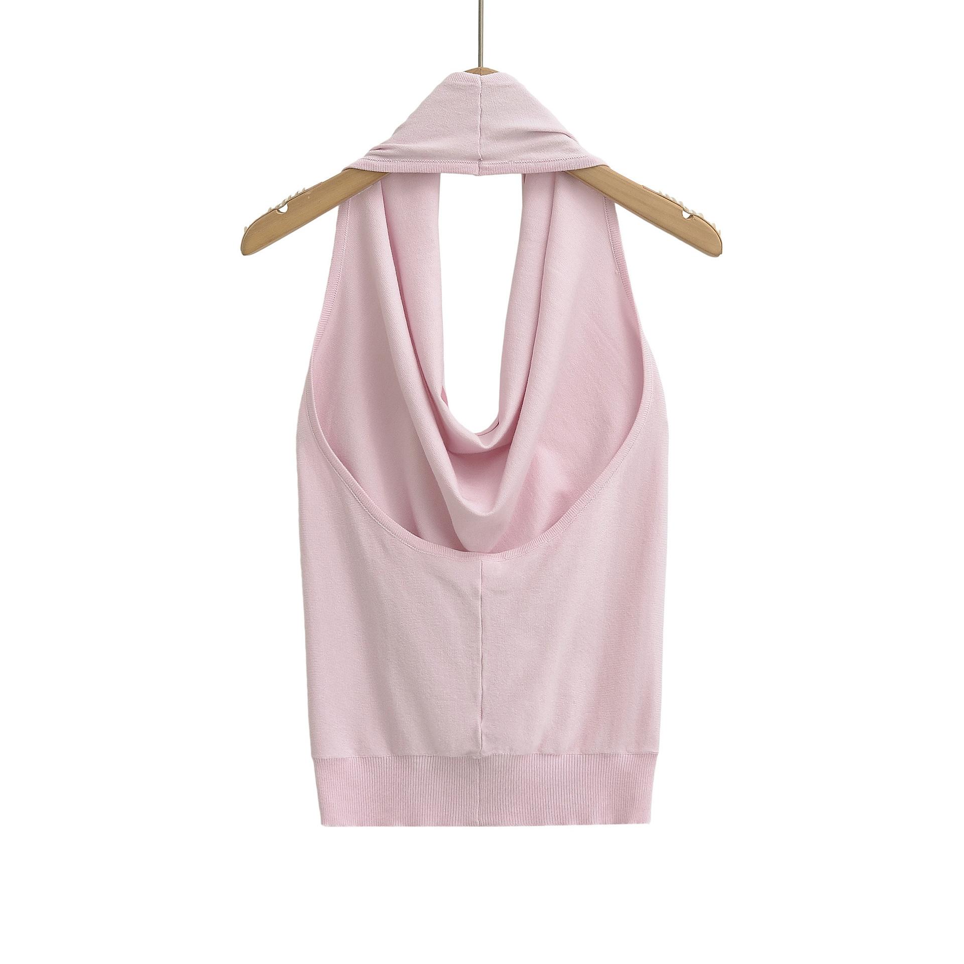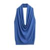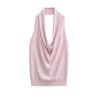 Top Chaleco Halter de Estilo Ligero y Maduro para Chica Caliente con Cuello Caído, Verano Nuevo, Estilo Corto de Cintura Alta, Grande sin Espalda, Sin Mangas, Tejido de Tirantes