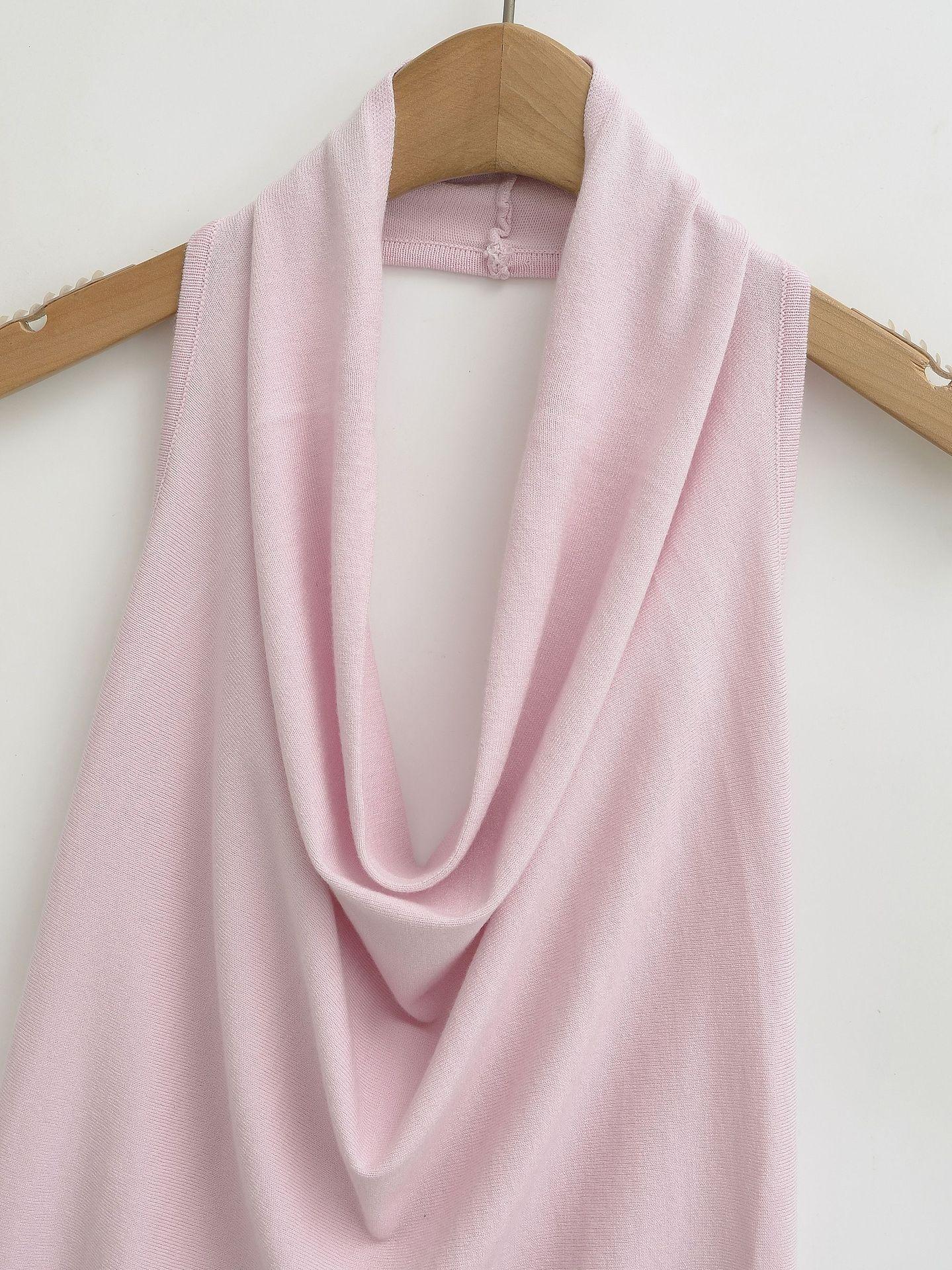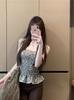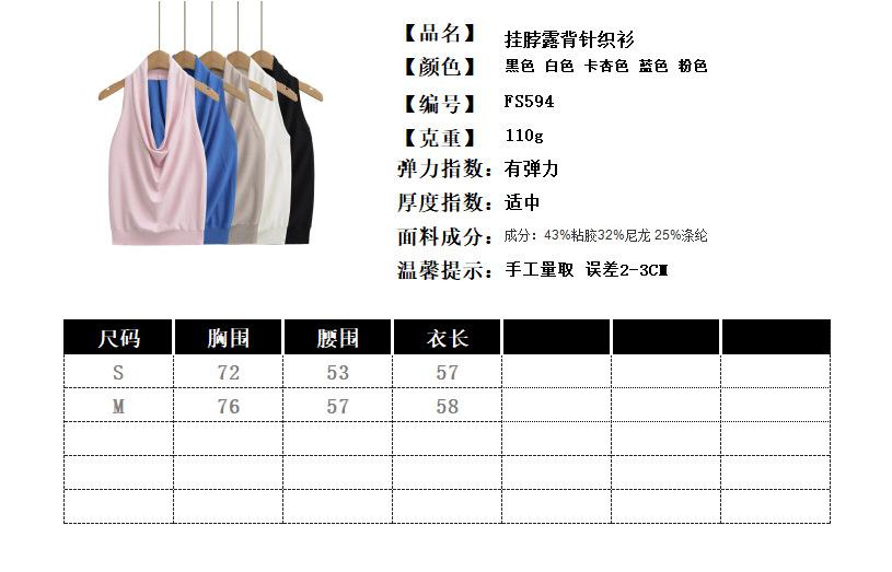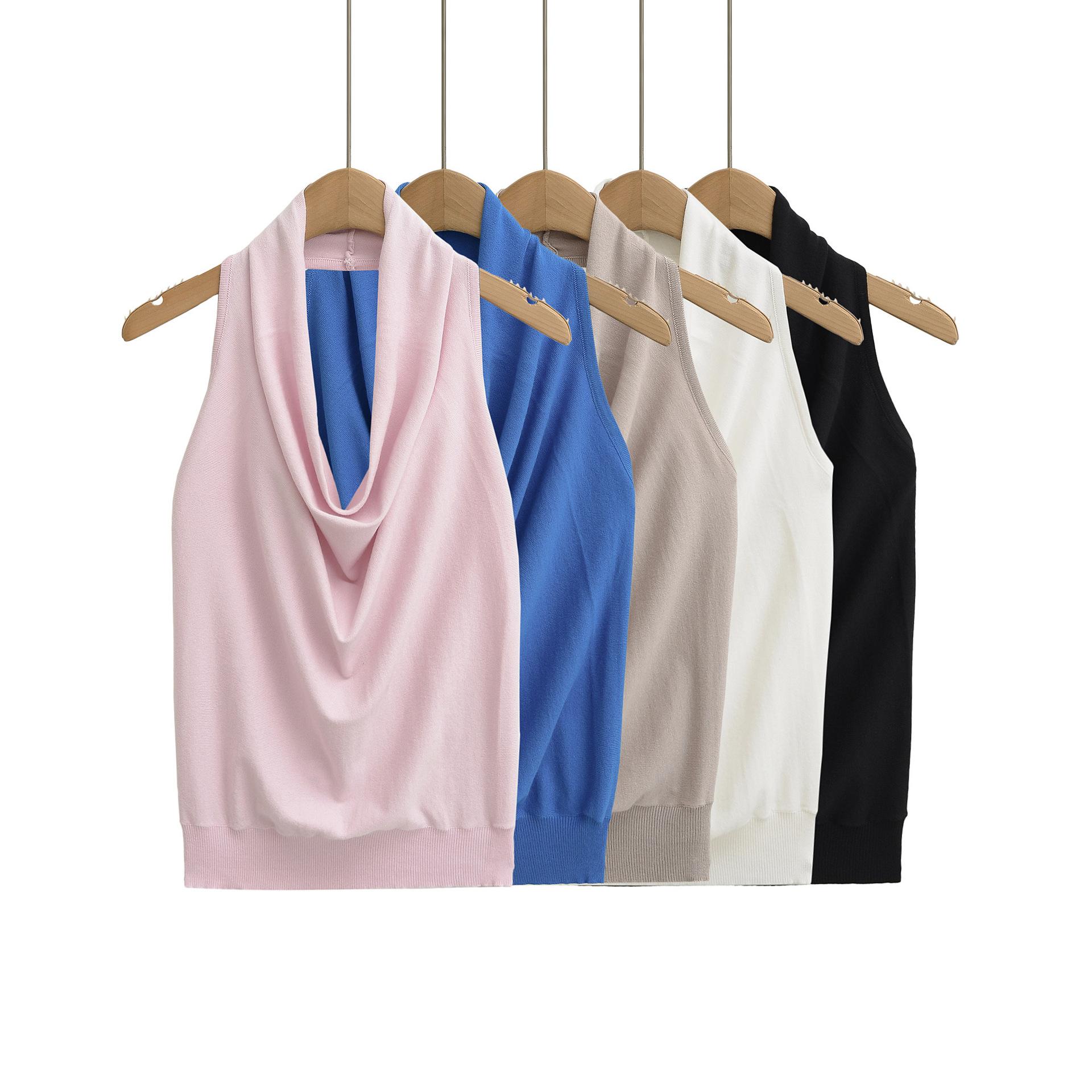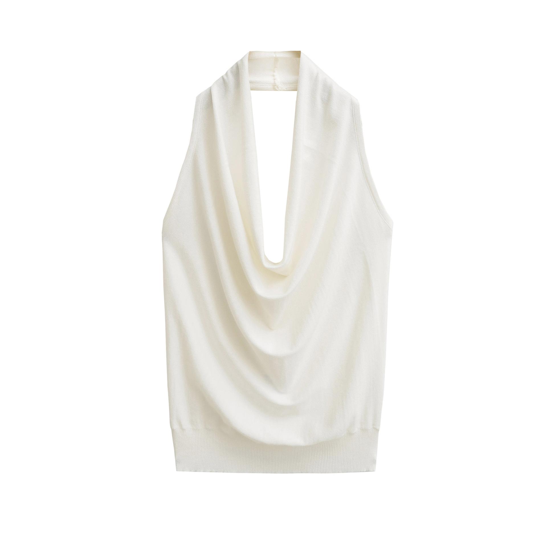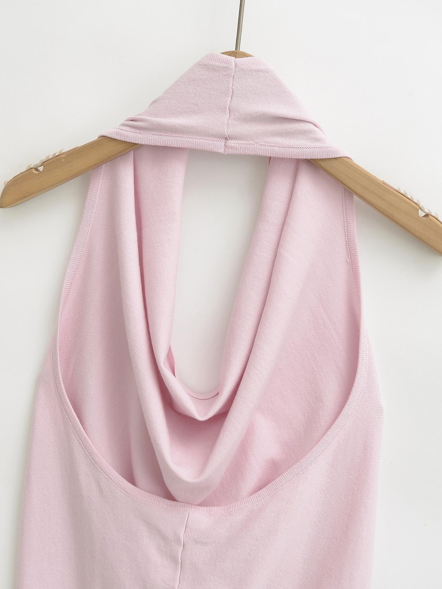 Top Chaleco Halter de Estilo Ligero y Maduro para Chica Caliente con Cuello Caído, Verano Nuevo, Estilo Corto de Cintura Alta, Grande sin Espalda, Sin Mangas, Tejido de Tirantes