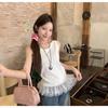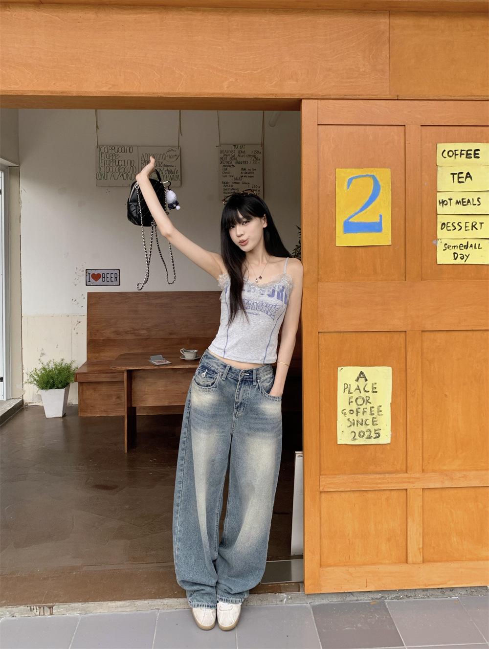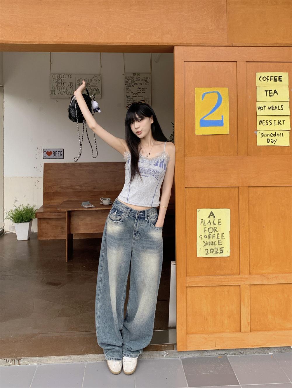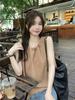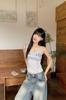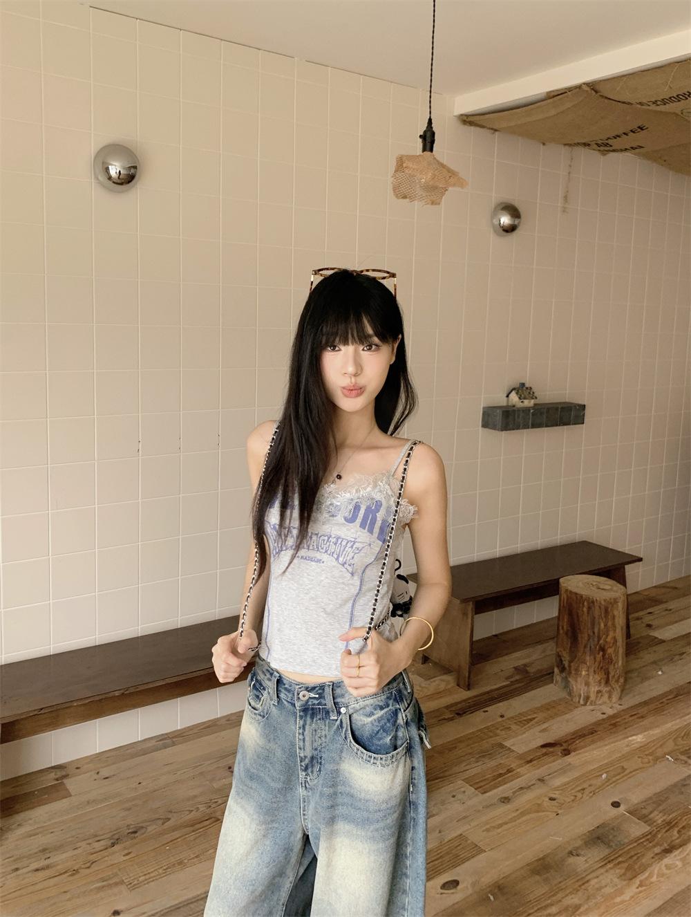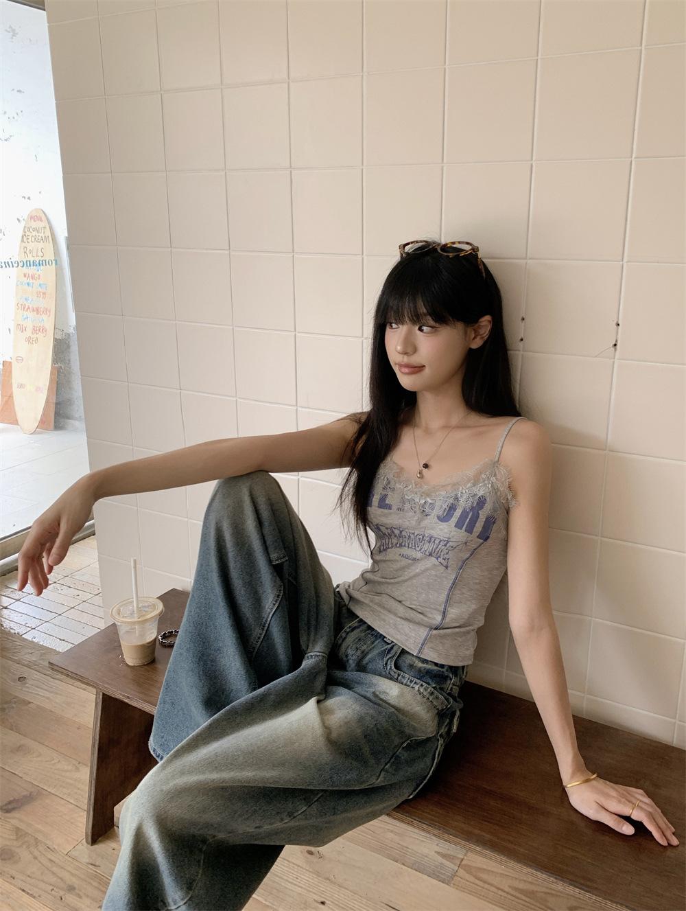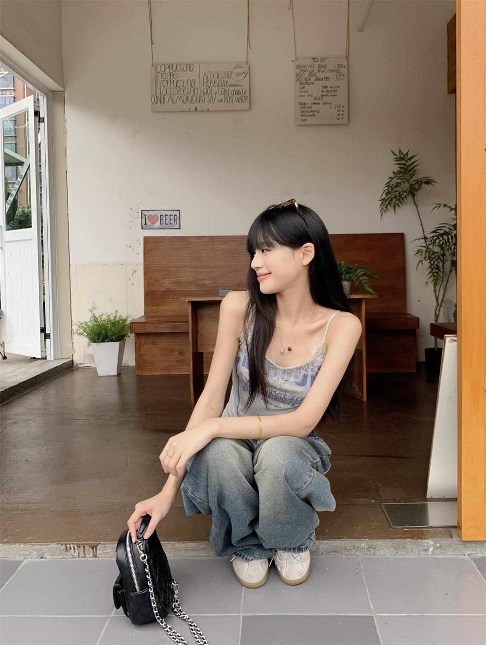 2025 Nuevo Verano Estampado de Contraste Encaje Empalmado Slim Ropa Exterior Moda Versátil Camisola Corta Ropa de Mujer