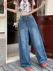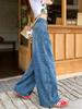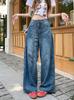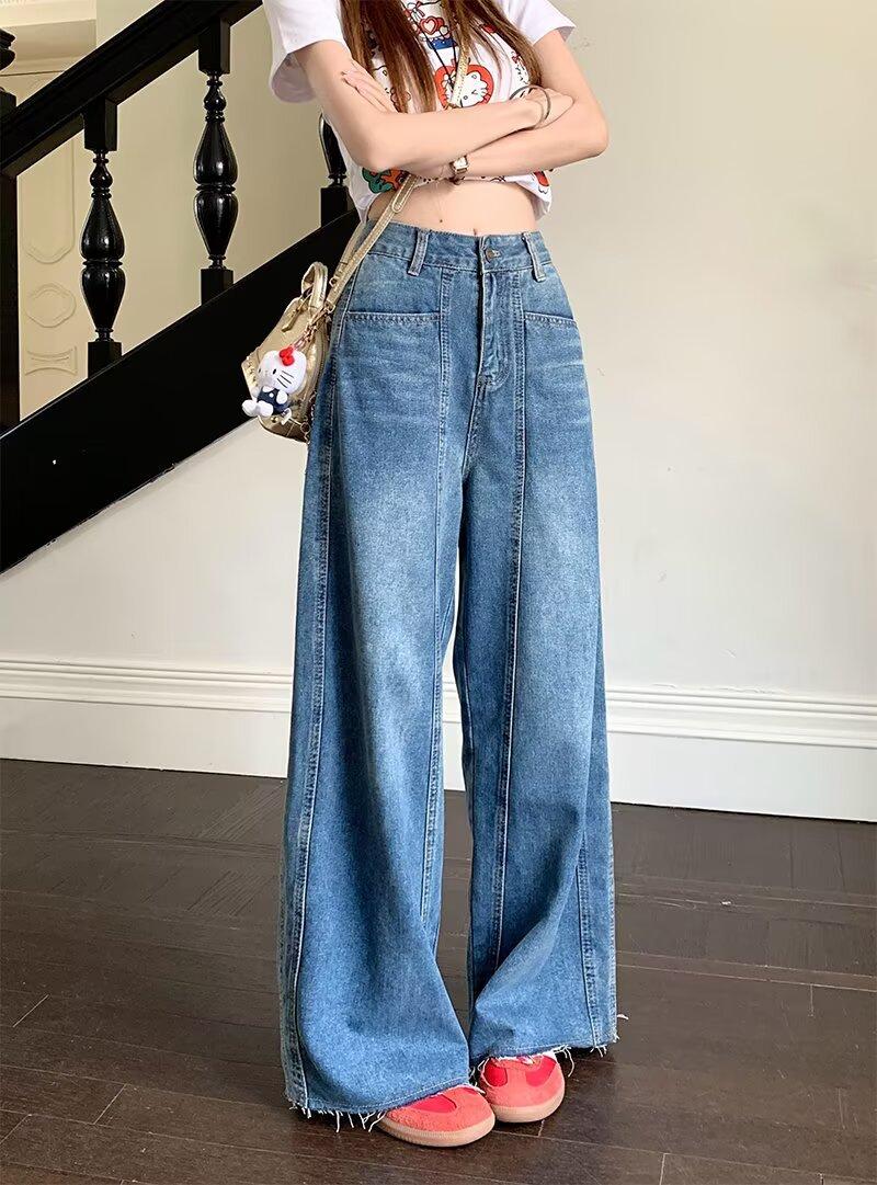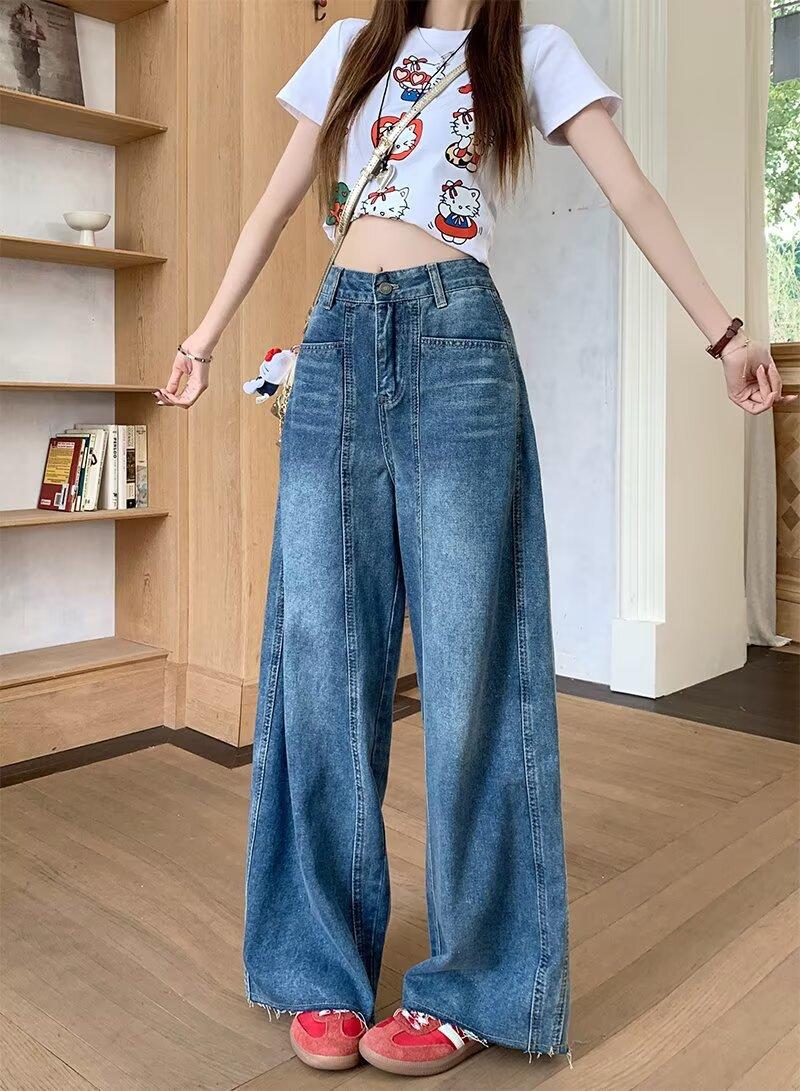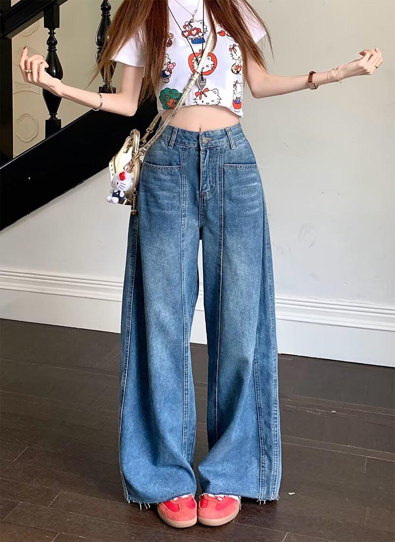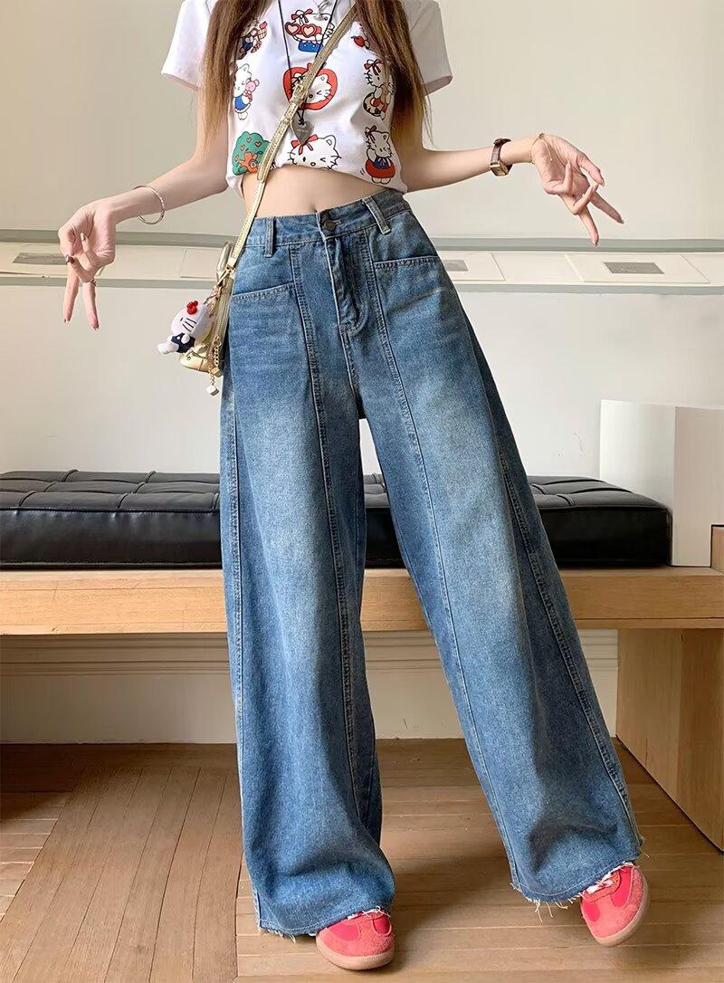Jeans Retro Azules de Talla Grande para Mujer en Primavera y Verano Cuerpo Gordo mm Forma de Pera Sueltos Cintura Alta Slim Rectos Pierna Ancha