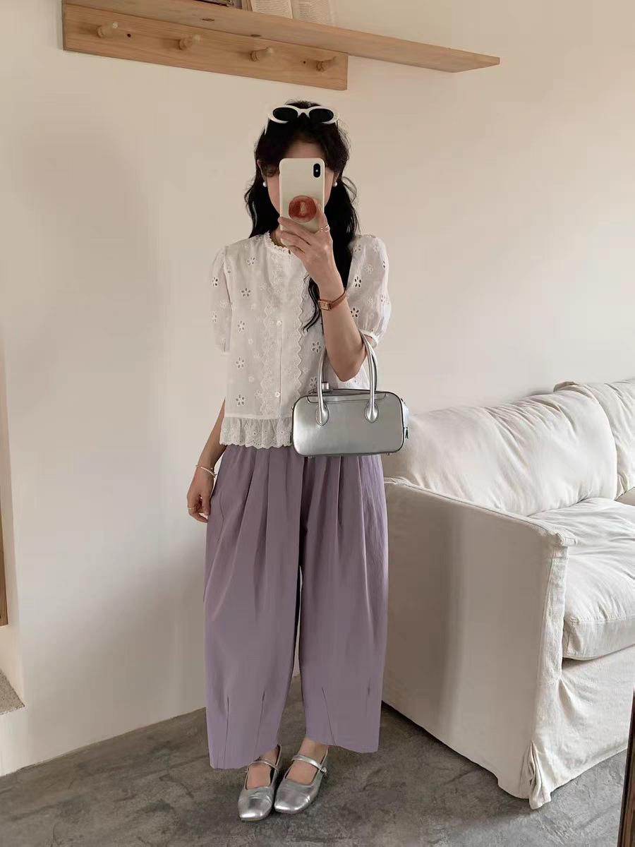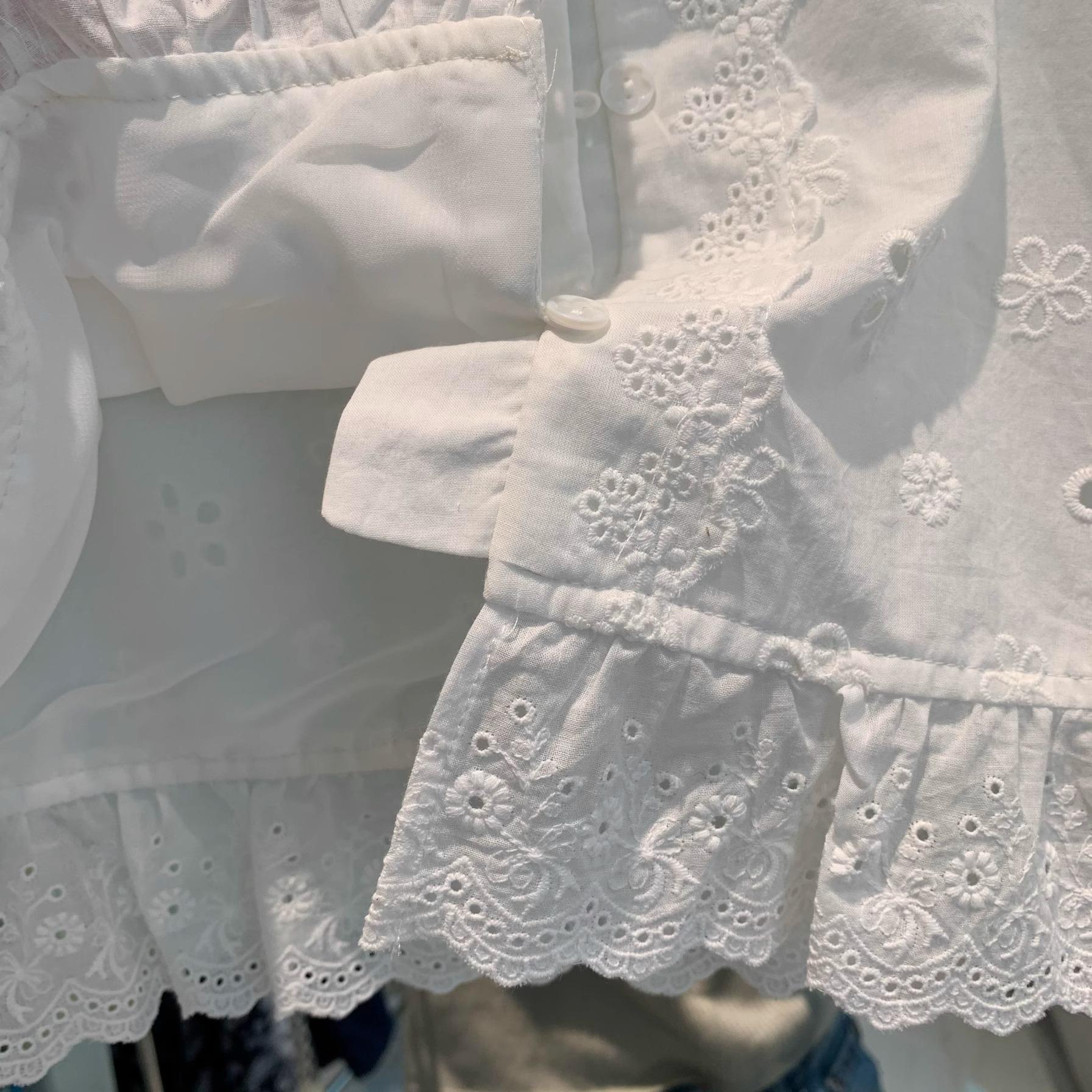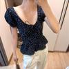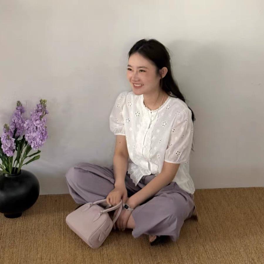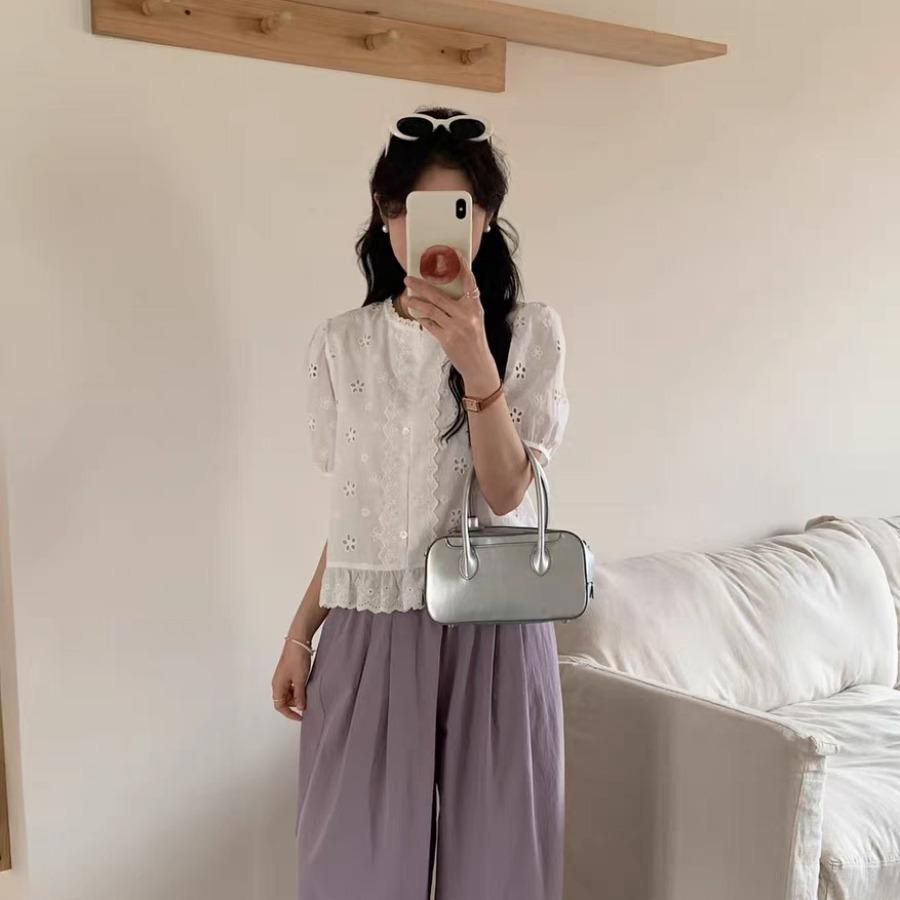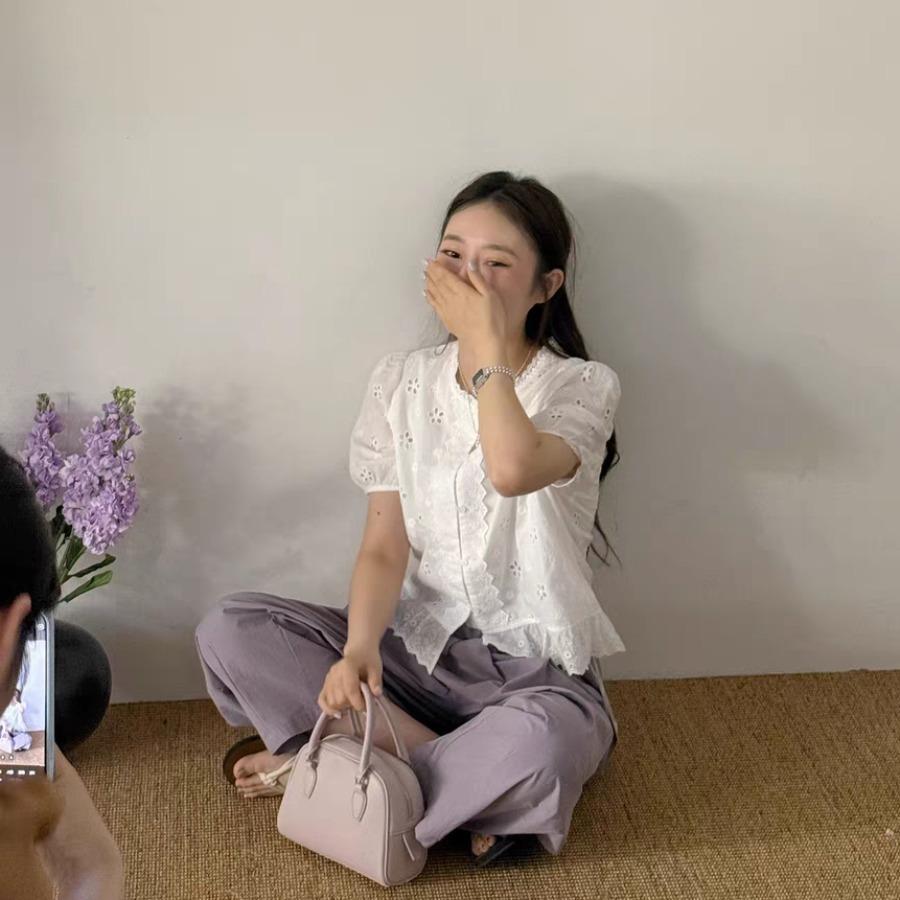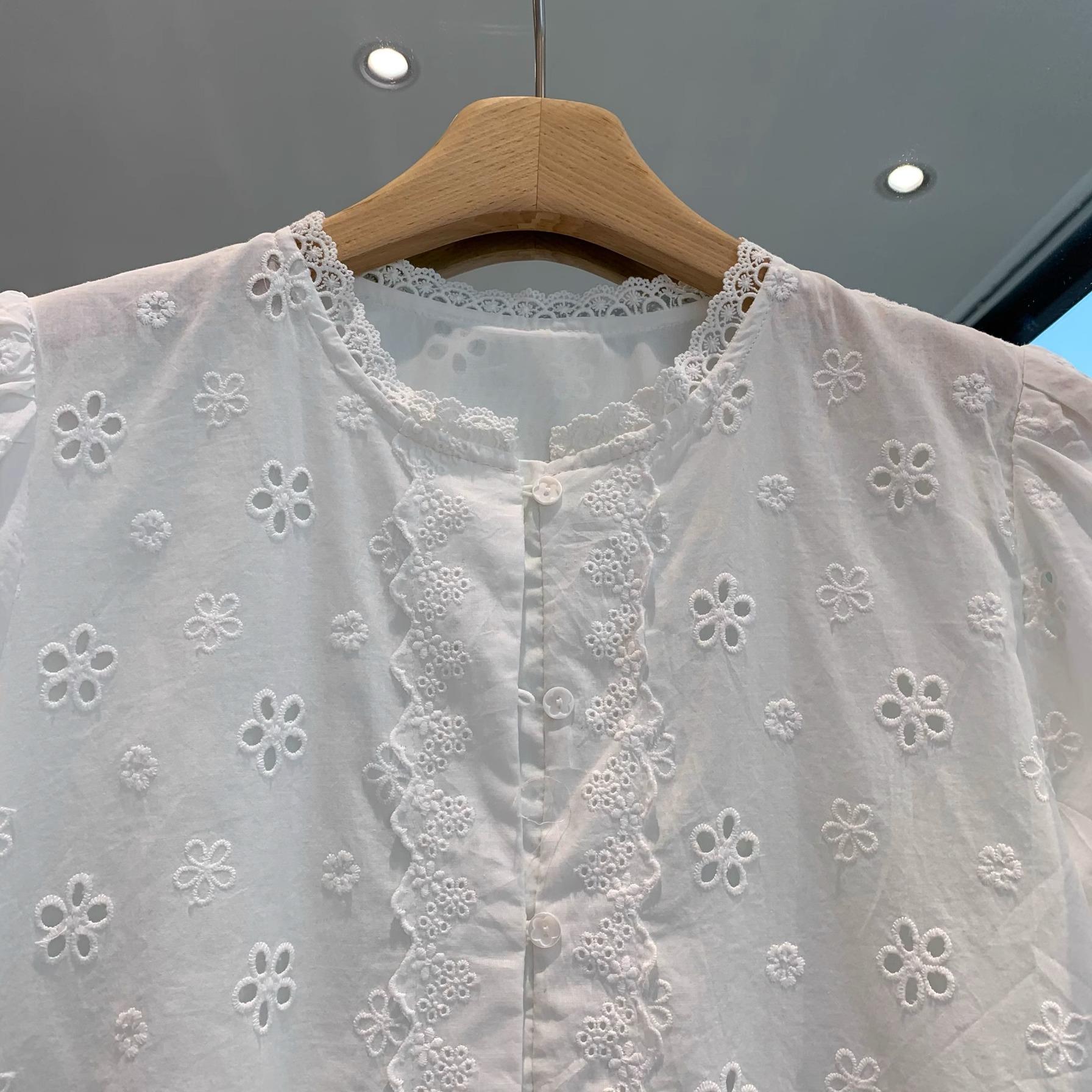 Camisa de Manga Corta con Encaje Crochet Dulce Chic Estilo Coreano para Mujer Verano 2025 Nuevo