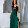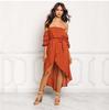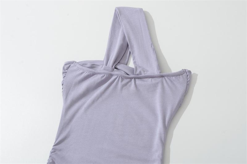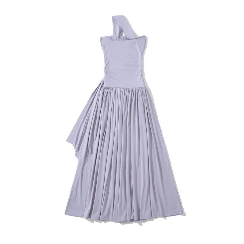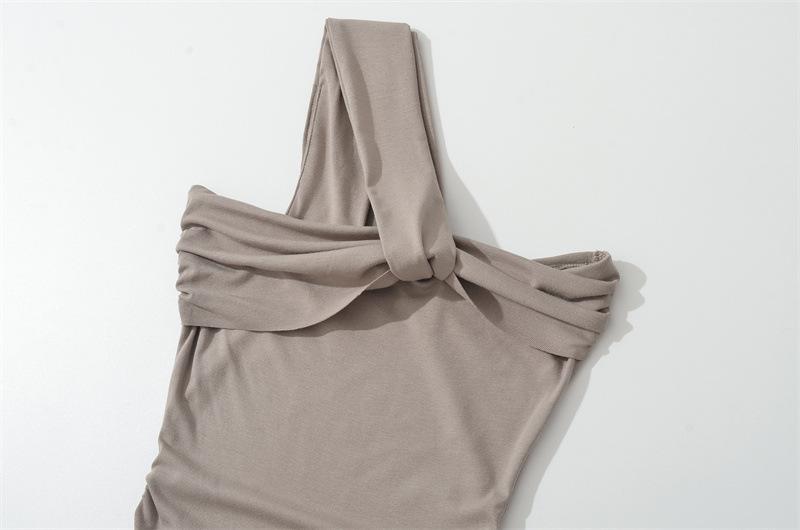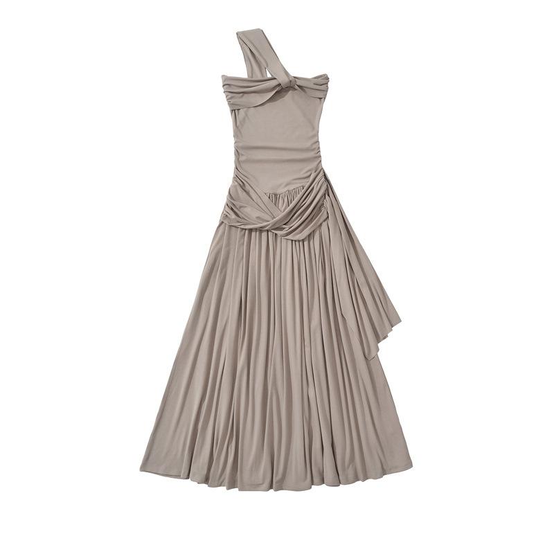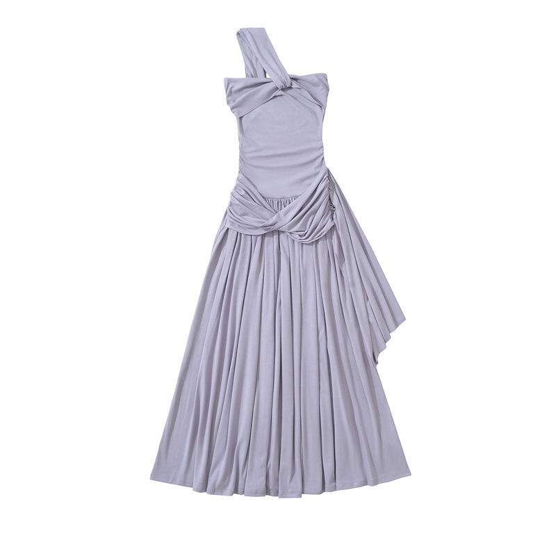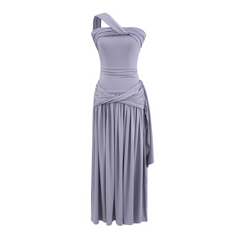 Vestido sexy estilo europeo y americano con múltiples formas de llevar, de un hombro, halter, con cinta para ceñir la cintura, tipo chaleco, temperamento de gran vuelo, vestido largo