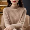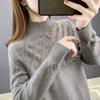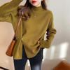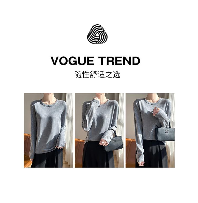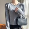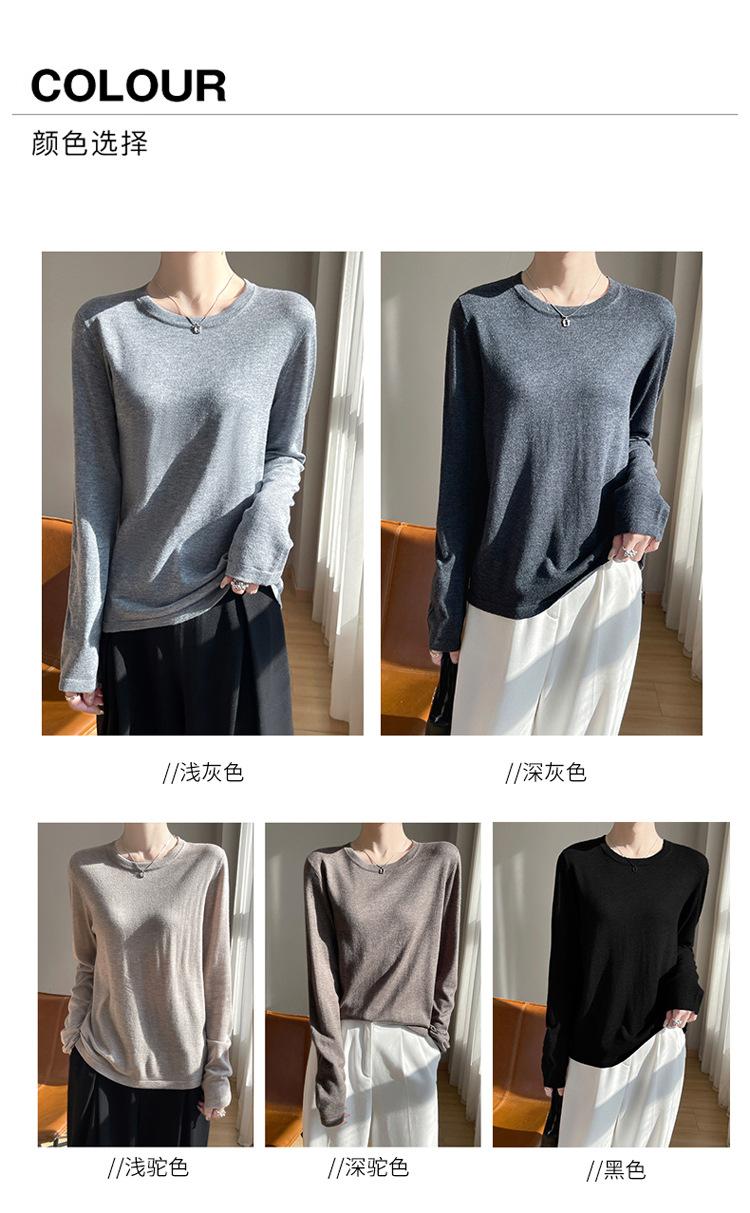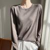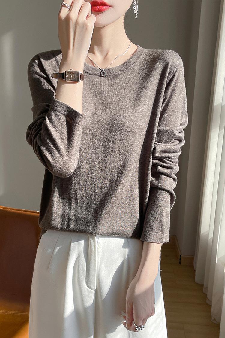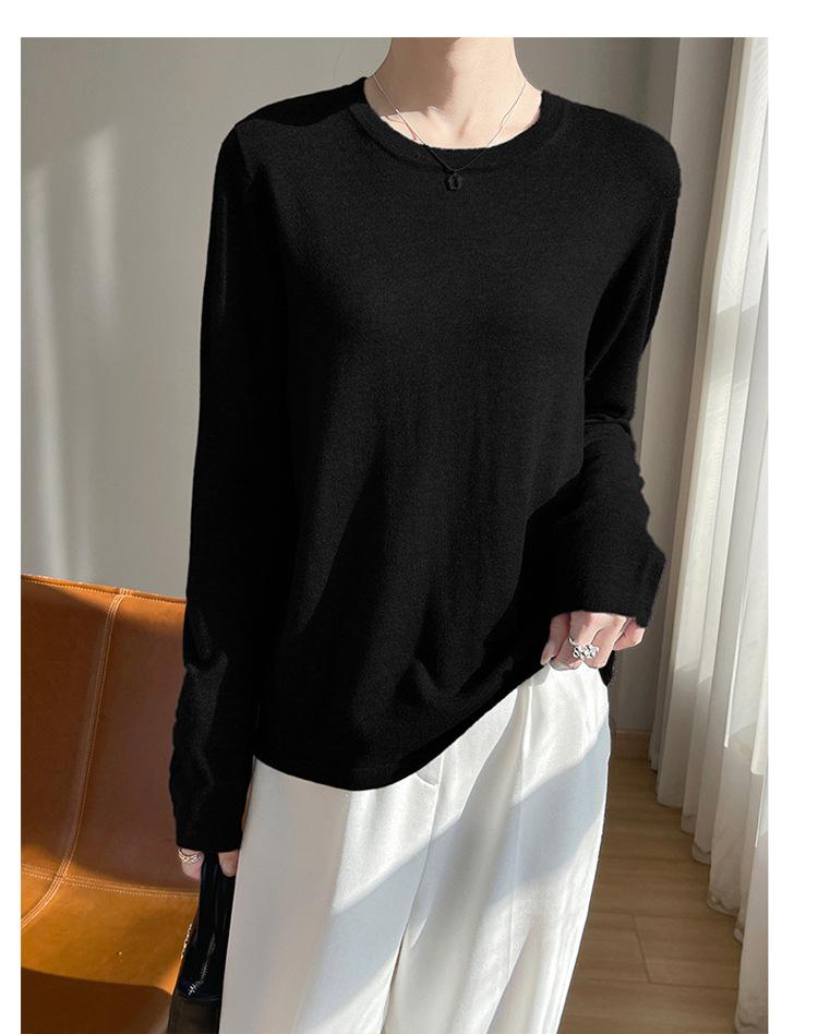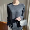 Suéter de lana peinada con cuello redondo, manga larga, color liso, holgado, combinable, para mujer, primavera 2025