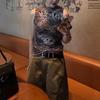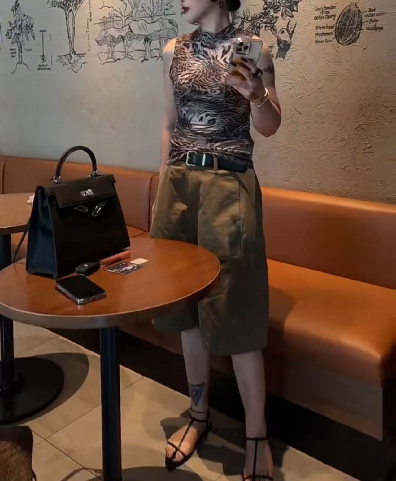 Leopard print top, Flower top, Khaki pants, Leopard print top + khaki pants, Flower top + khaki pants