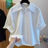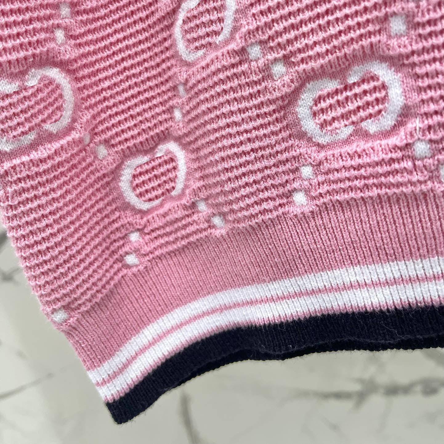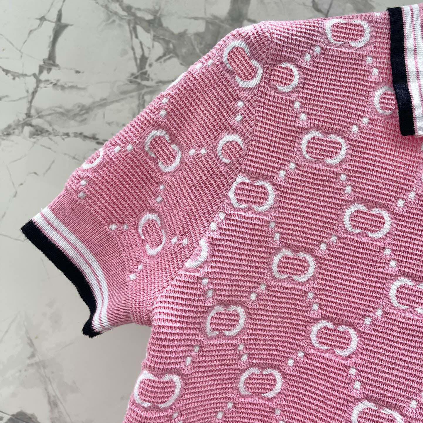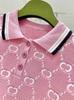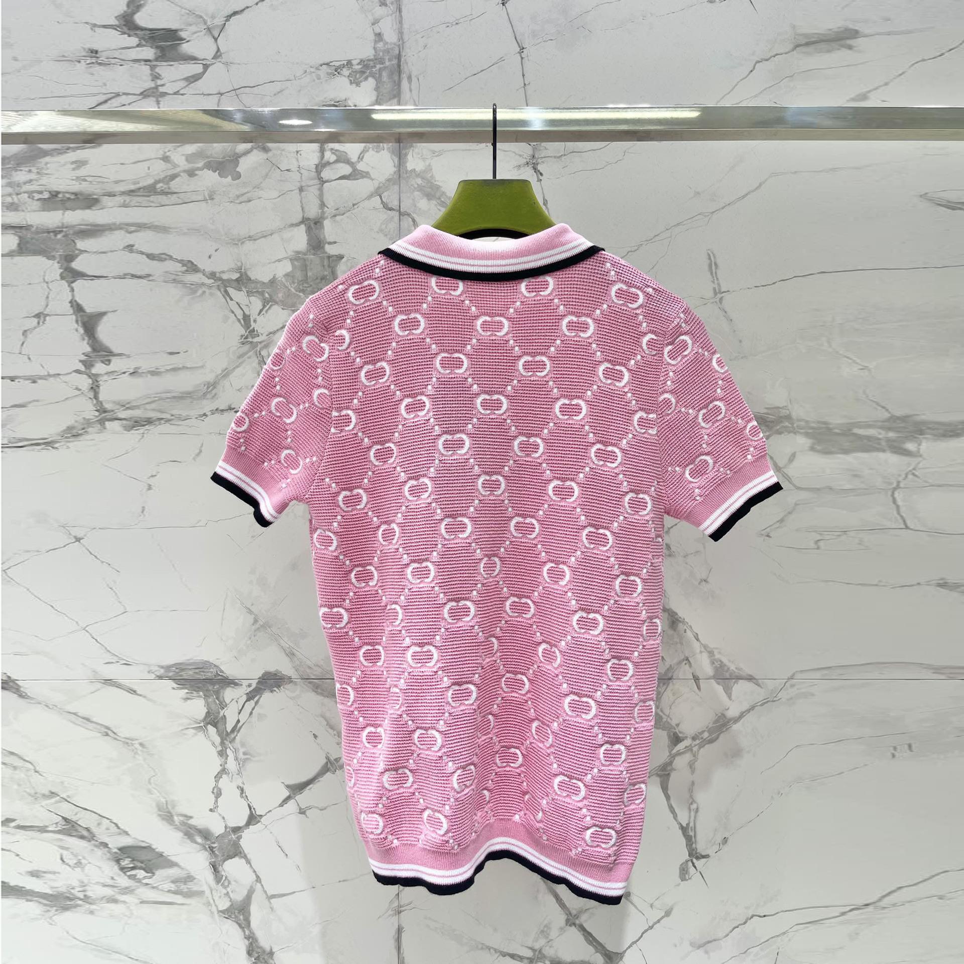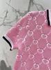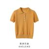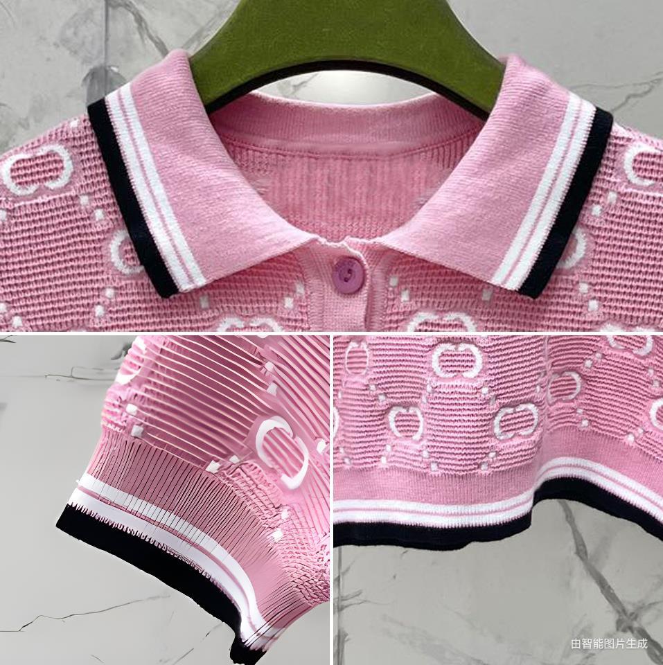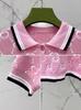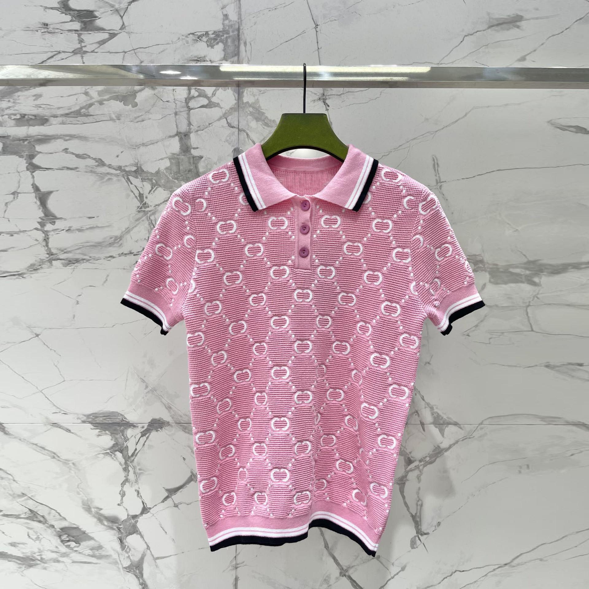 25 Nueva Camiseta de Punto de Verano con Jacquard de Letras, Versátil, Adelgazante, Look Elegante, Estilo Retro, Solapa Tejida, Manga Corta para Mujer