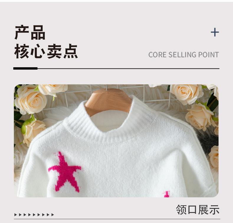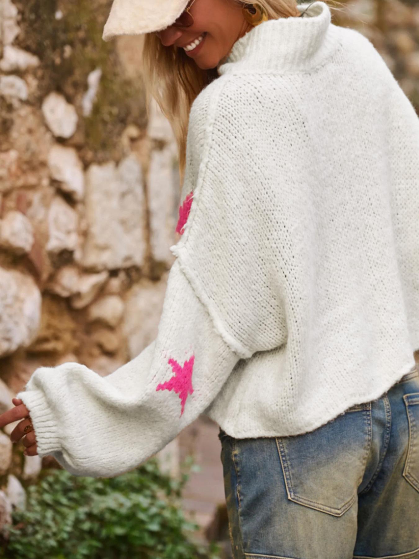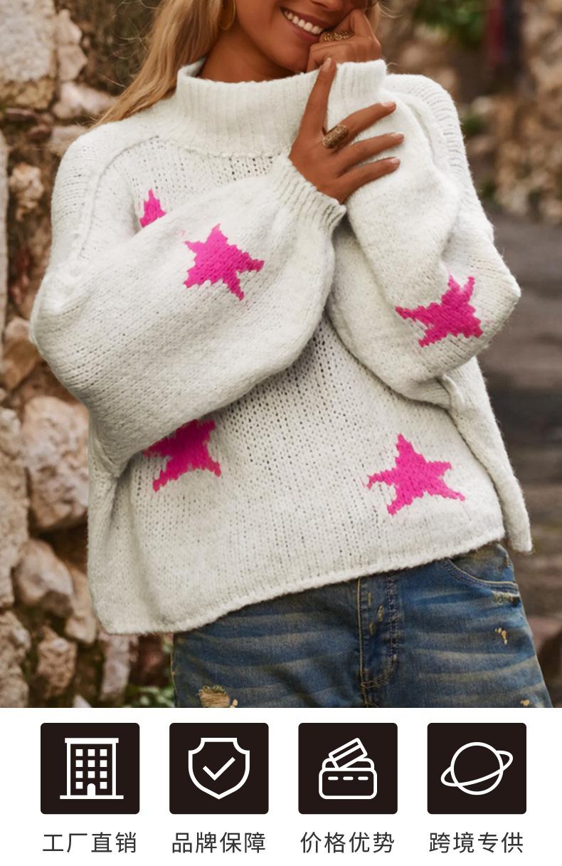 Suéter casual holgado de cuello alto para mujer de otoño/invierno, jersey europeo y americano transfronterizo de manga larga con patrón de estrella tejido
