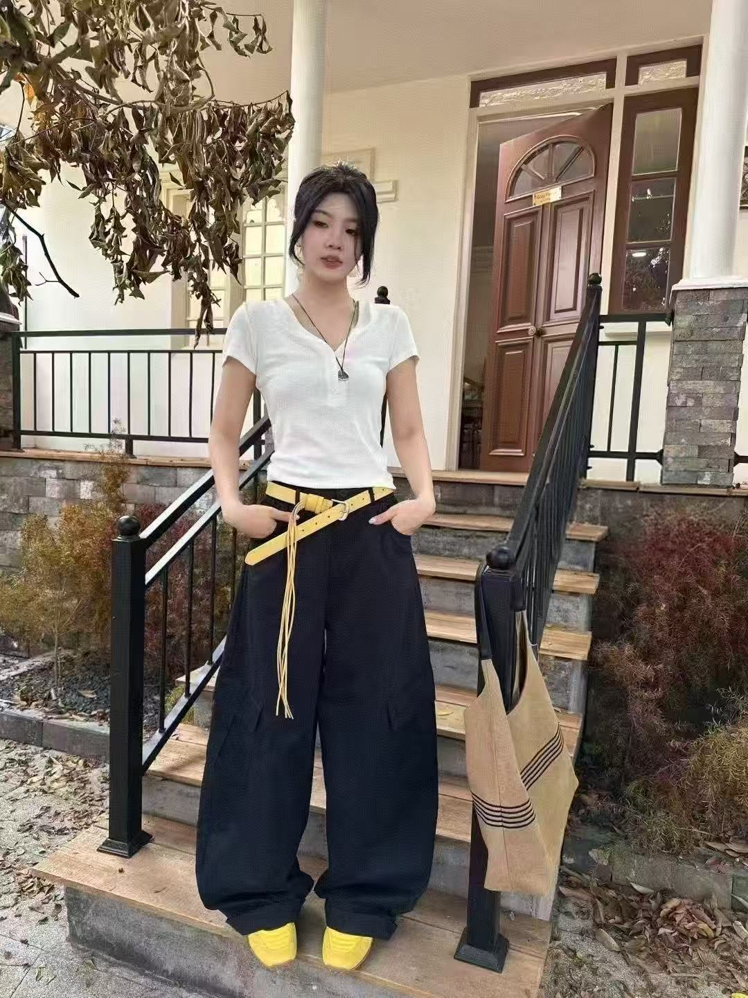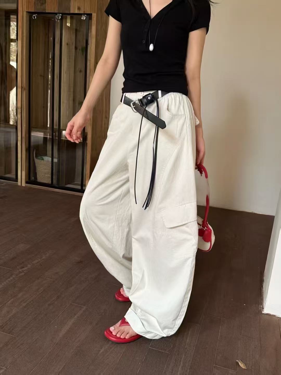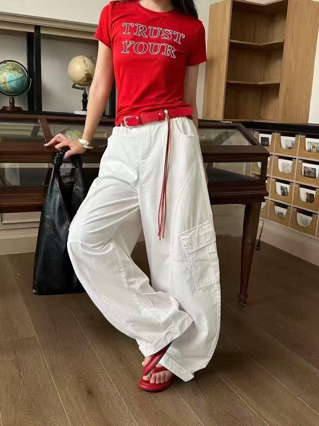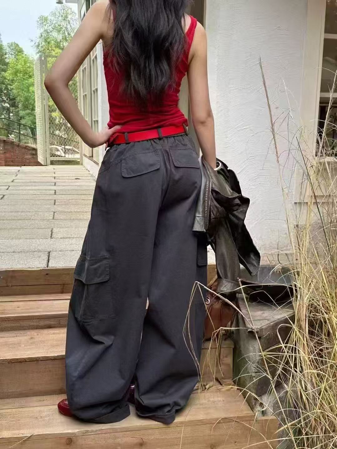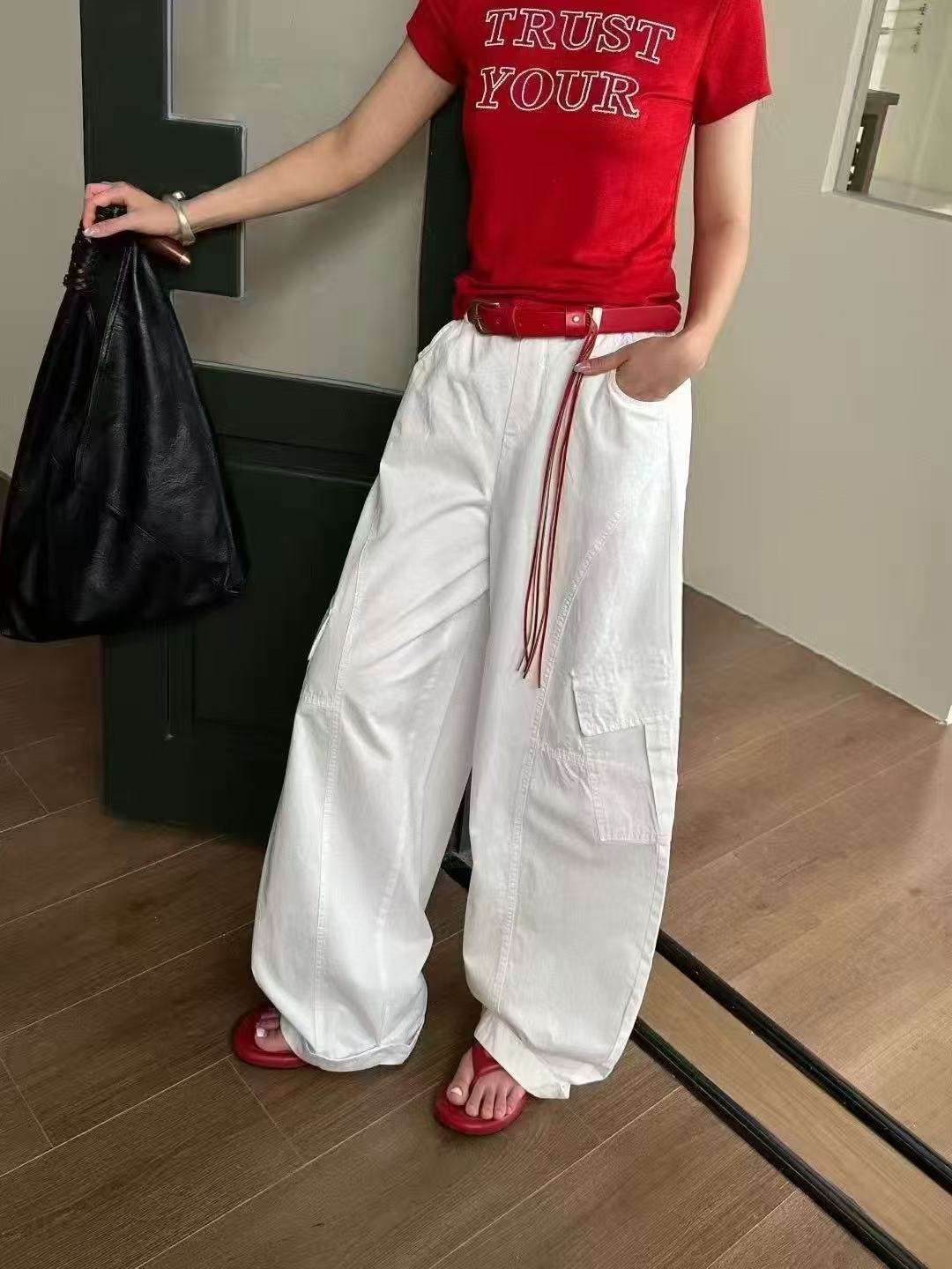 Moda Estilo Coreano 2025 Otoño Nuevo Pantalón Media Luna Pantalón Casual Pantalón Pierna Ancha Versátil Holgado Adelgazante Pantalón de Trabajo Americano