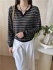 Suéter de Punto Rayado con Cuello en V para Mujer, Estilo Delgado, Nuevo Otoño 2026 Versión Coreana, Corte Holgado, Top Versátil para Usar como Capa Base
