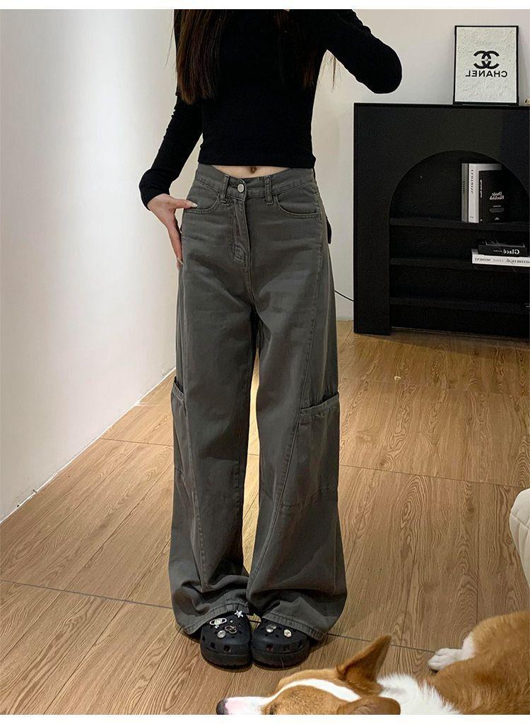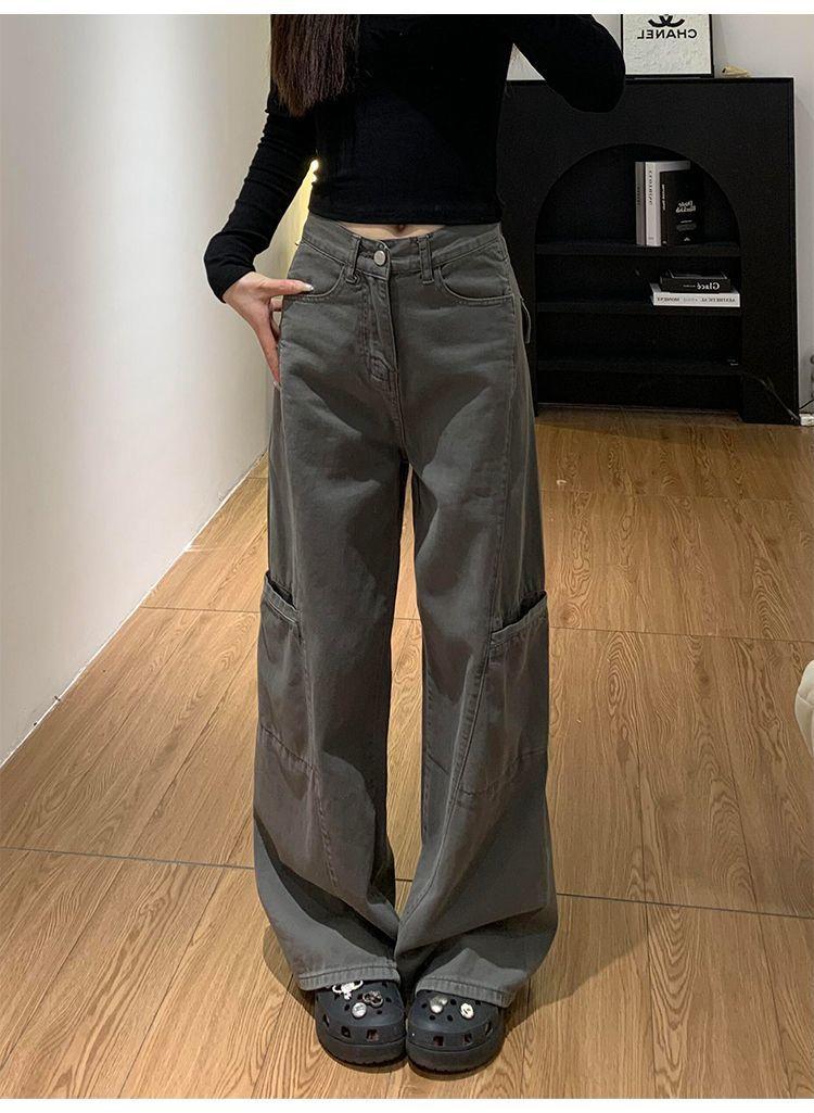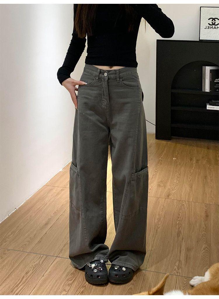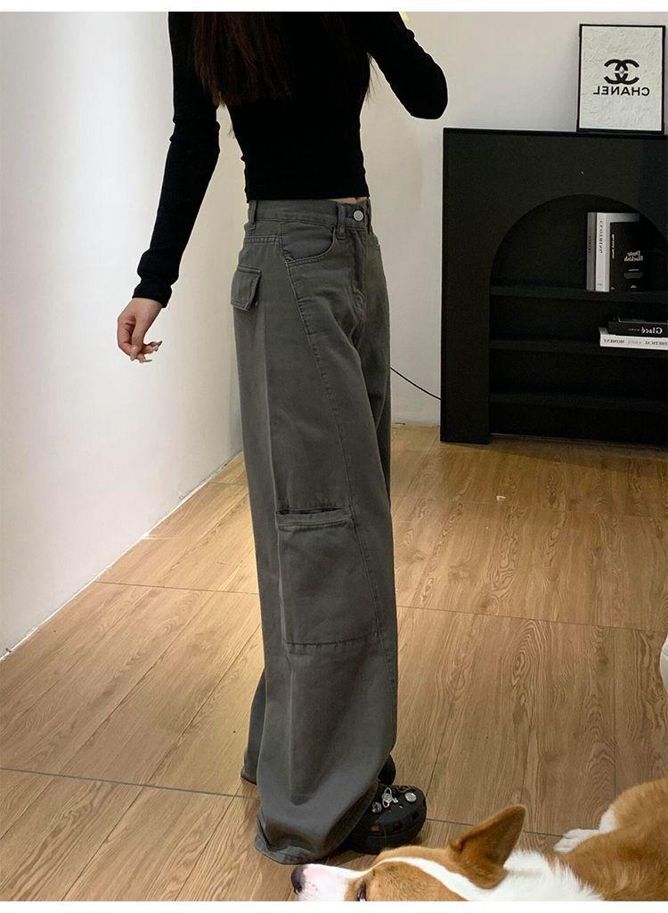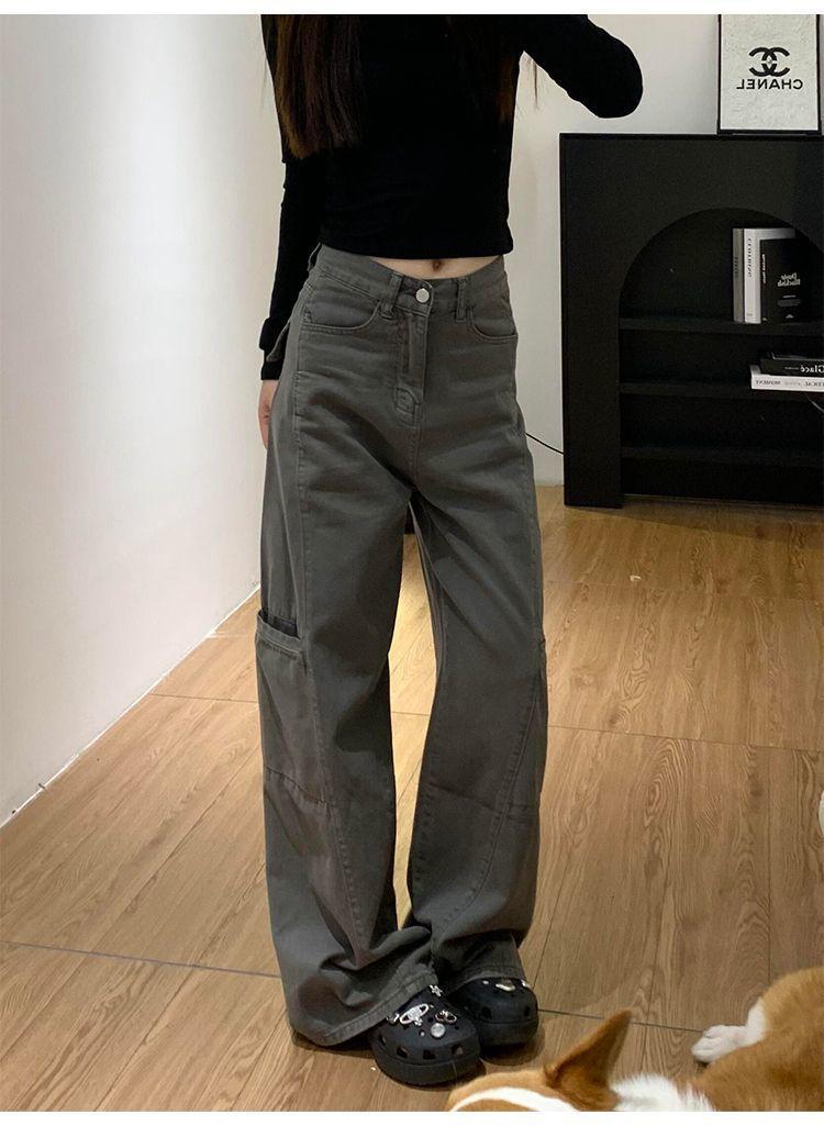 Pantalones de Trabajo Retro Americanos Mujer 2025 Verano Nuevo Sueltos Adelgazantes Rectos Cintura Alta Casual Pierna Ancha Hasta el Piso