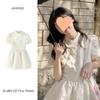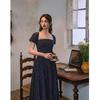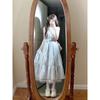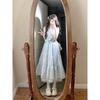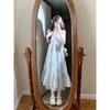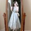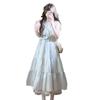 Verano Nuevo Estilo Fresco Lazo Azul Vestido Temperamento de Hada Nicho Adelgazante Cintura Falda
