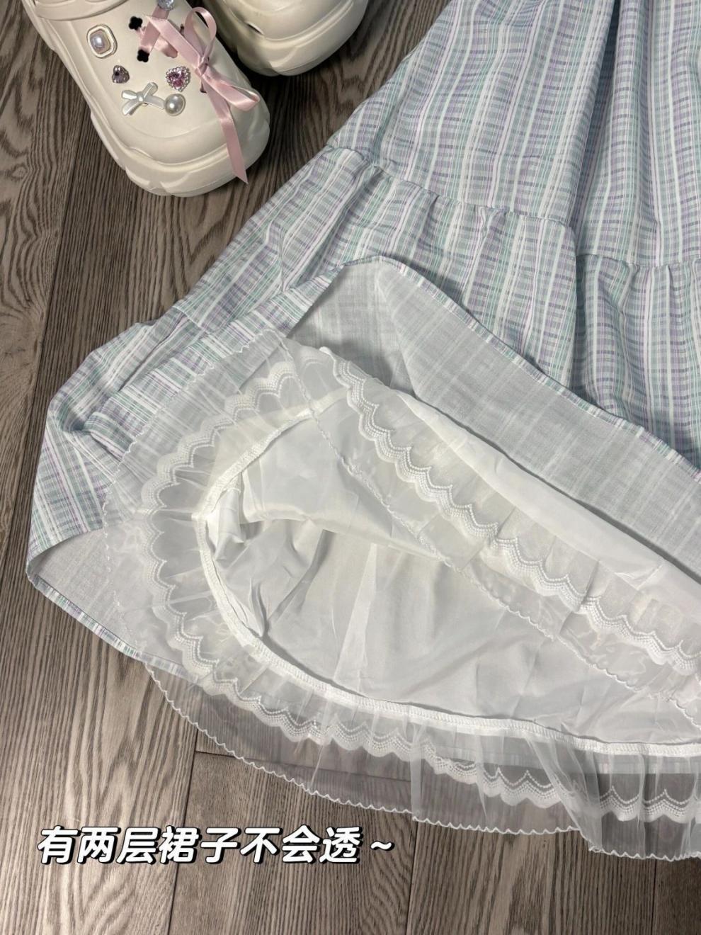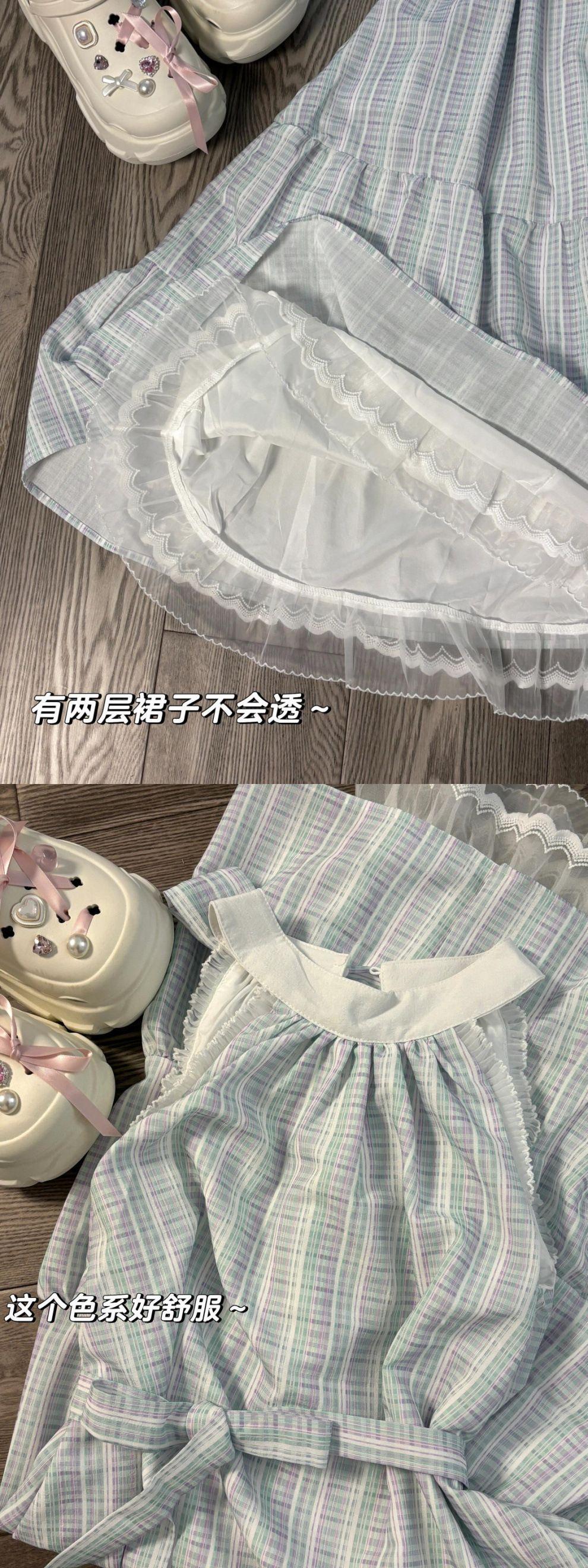 ᔀᘀblue plaid bow long skirt [sweet release style] ὀᘀ, ᔀᘀwear with white sunscreen cardigan [high quality] ᓀᘀ, ...