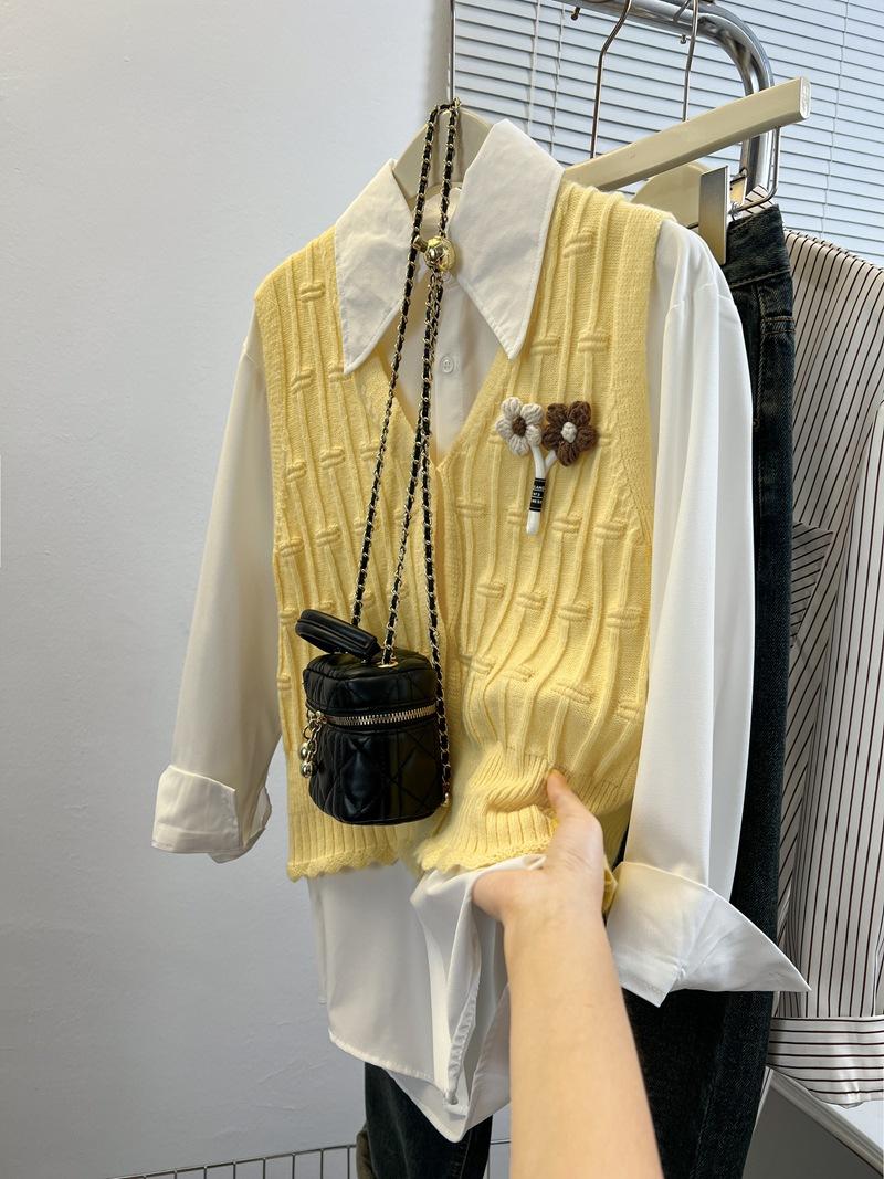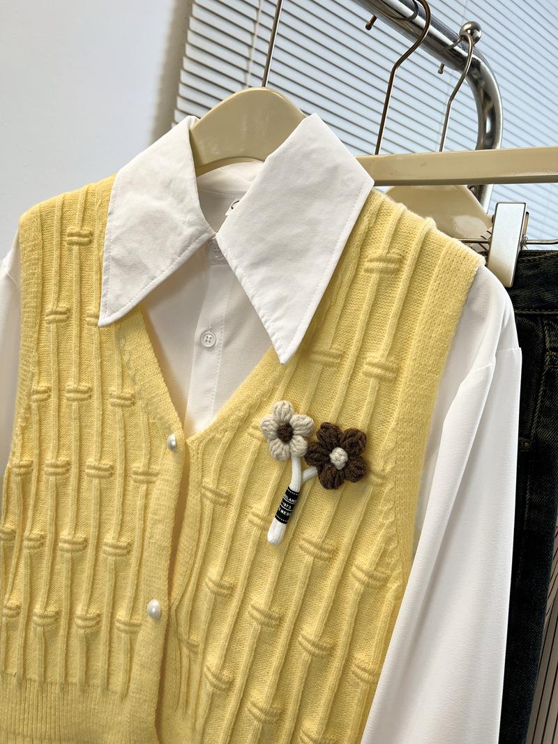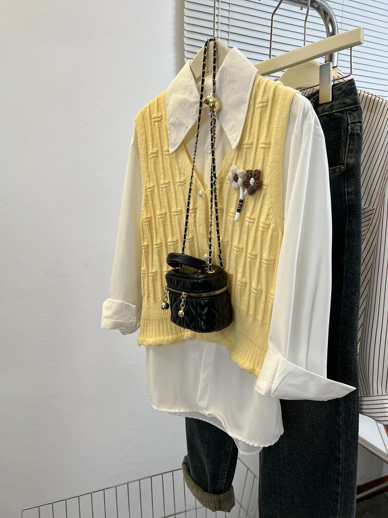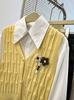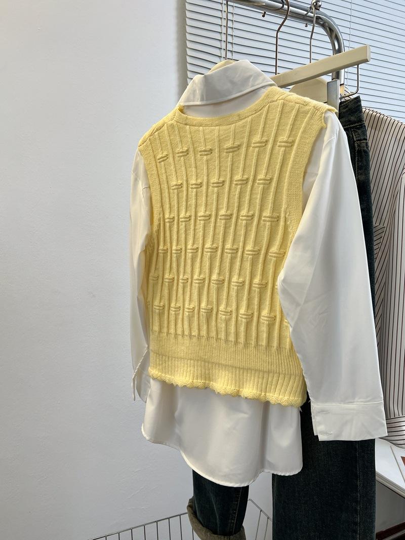 Chaleco de Punto Francés para Mujer 2024 Primavera y Otoño Nueva Moda Suéter Exterior Camisa Apilada Top de Dos Piezas