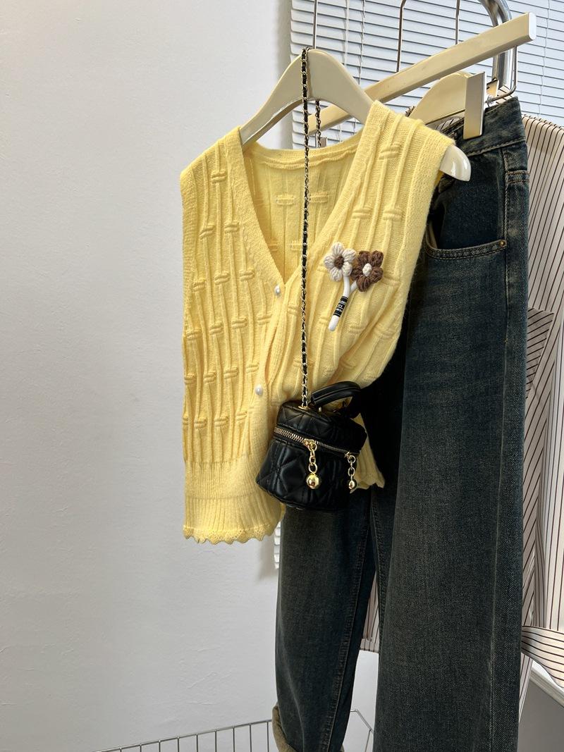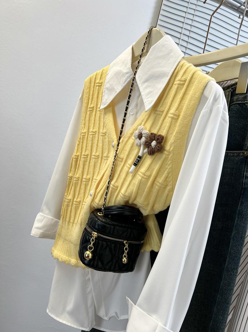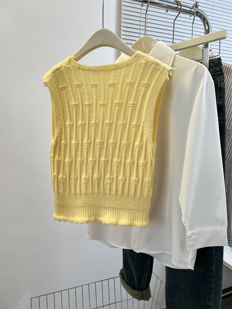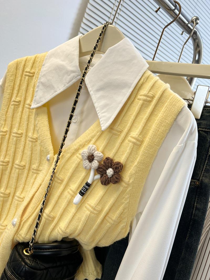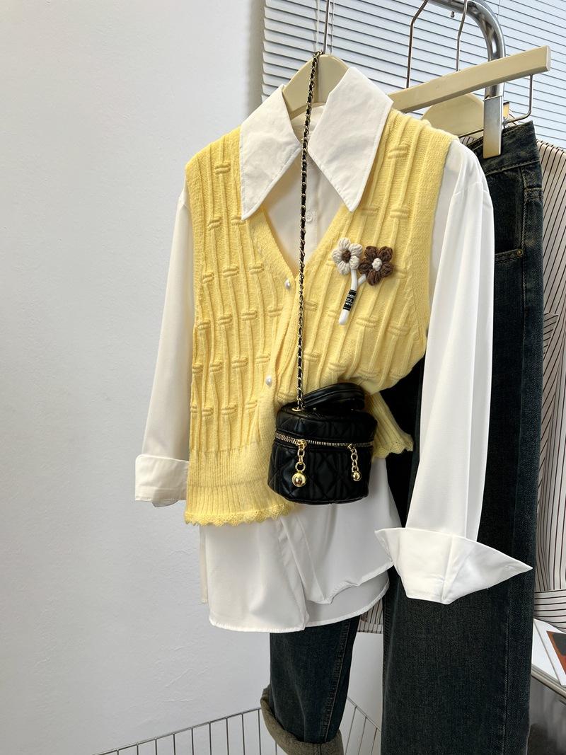 Chaleco de Punto Francés para Mujer 2024 Primavera y Otoño Nueva Moda Suéter Exterior Camisa Apilada Top de Dos Piezas