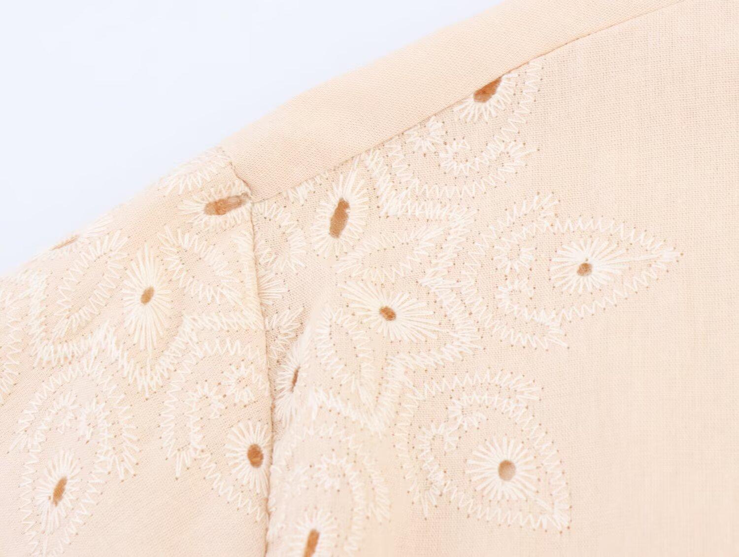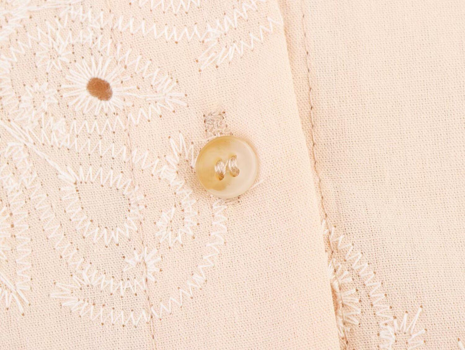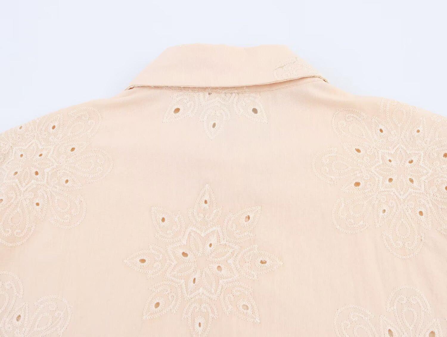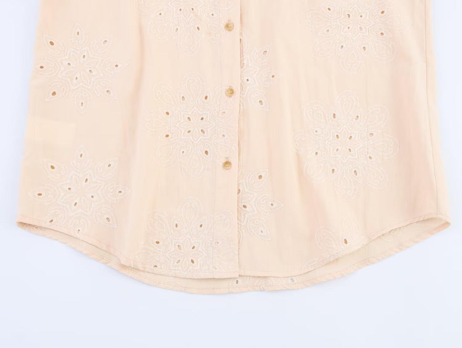 2025 Verano Nuevo Estilo Europeo y Americano Moda Versátil Casual Suelto Calado Bordado Manga Larga Camisa Top de un Solo Botón