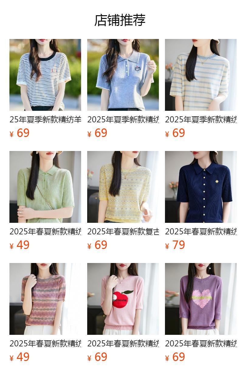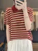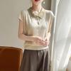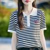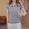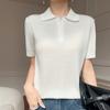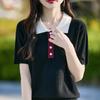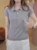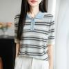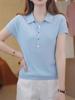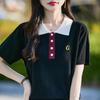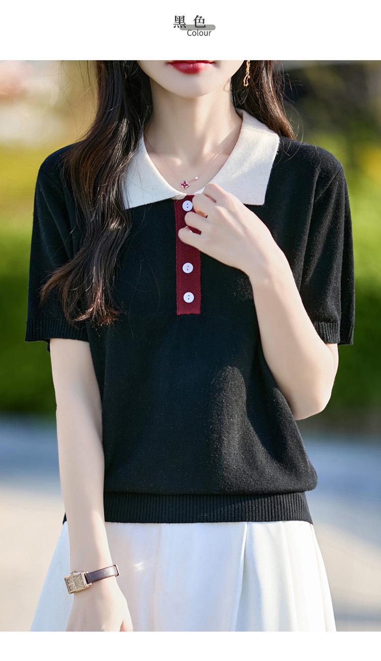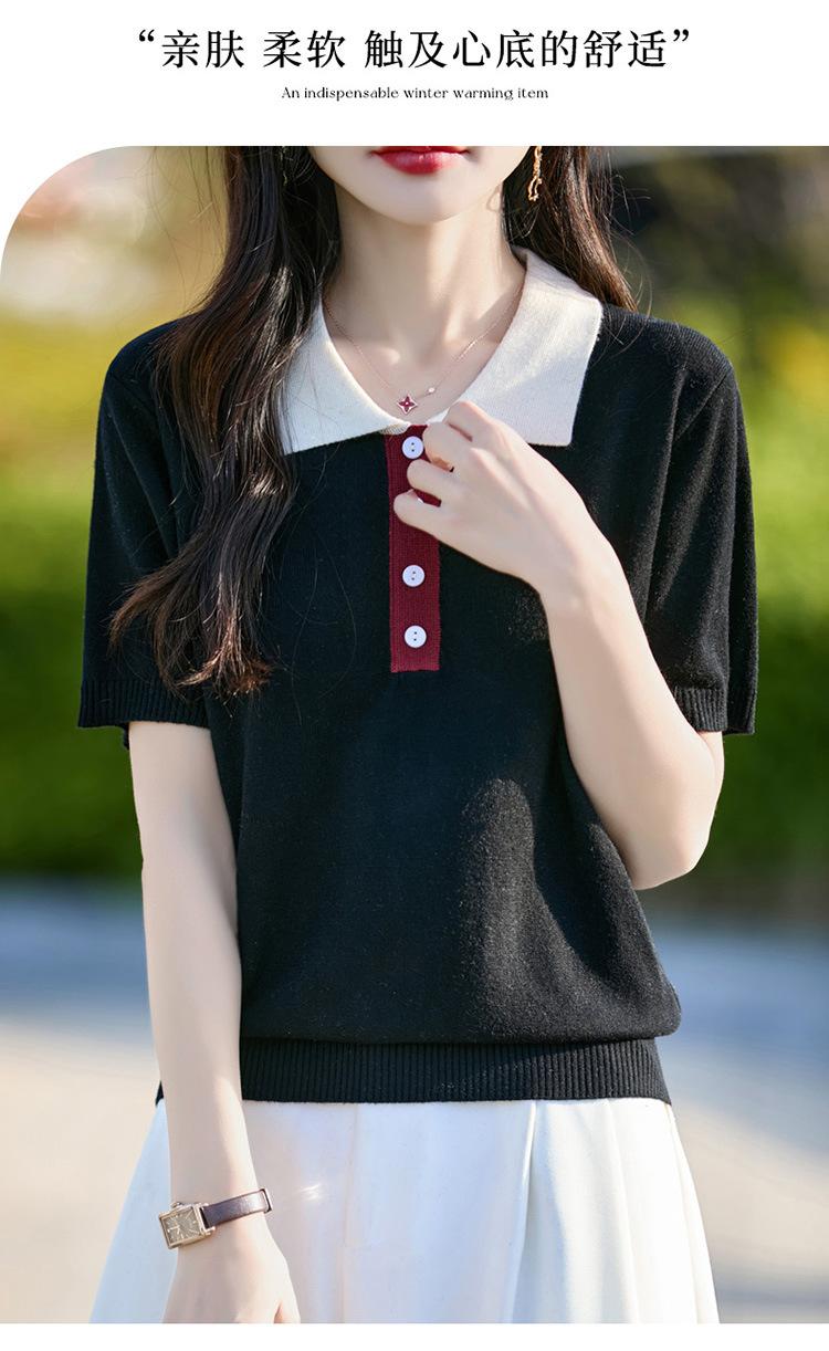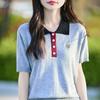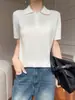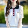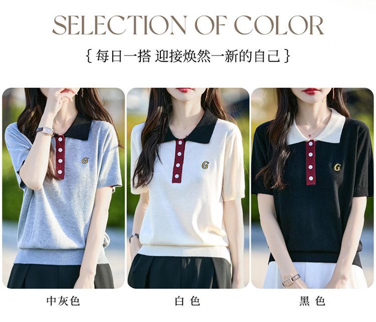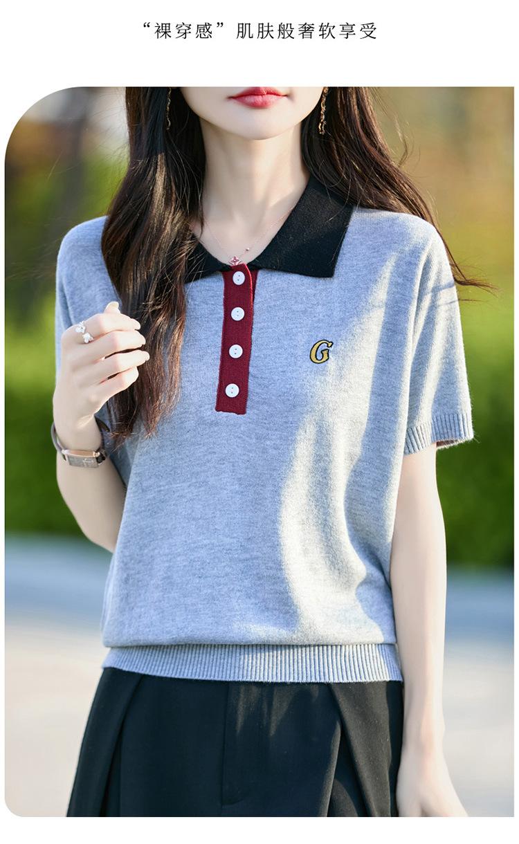 2025 Nuevo Verano Lana Peinada Polo Cuello Tejido Camiseta de Manga Corta para Mujer Color Bloqueado Bordado Letra Top