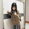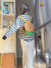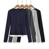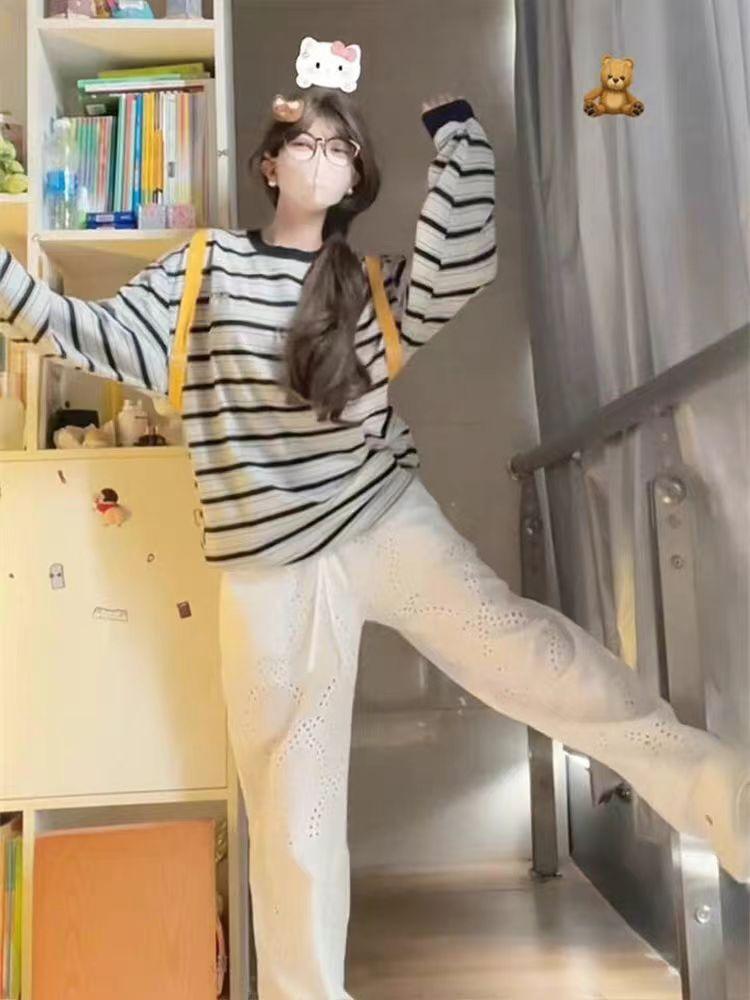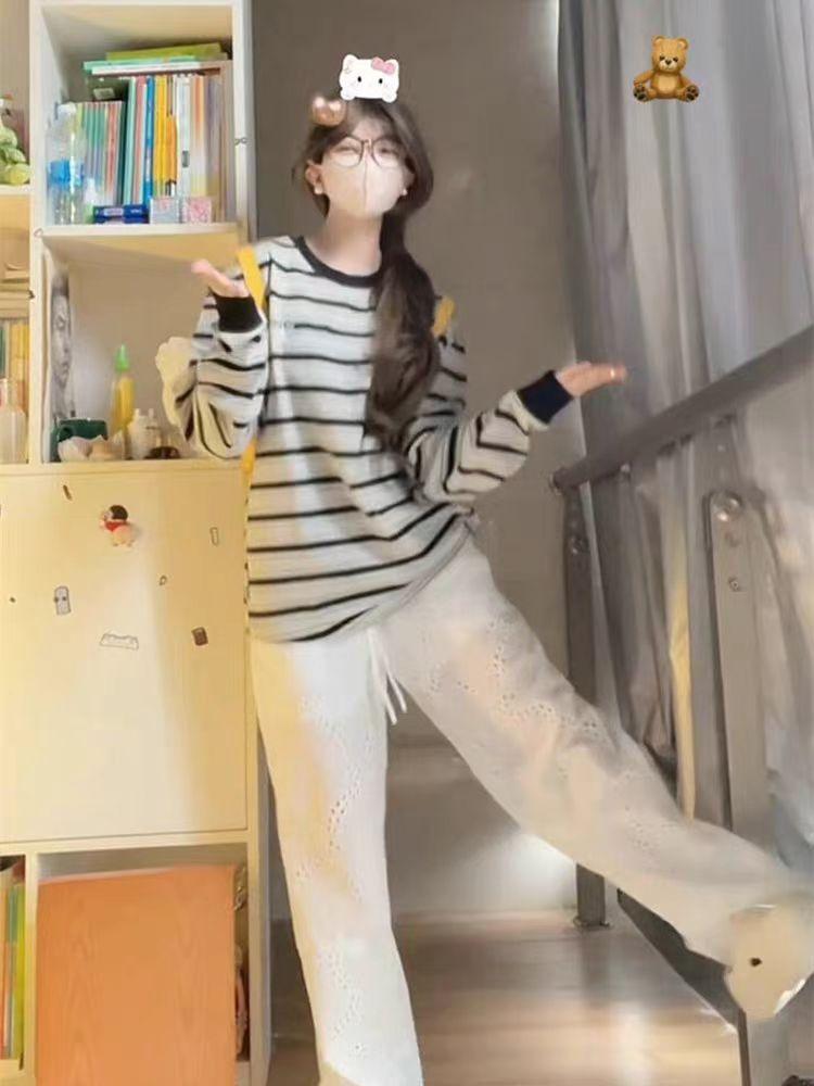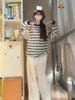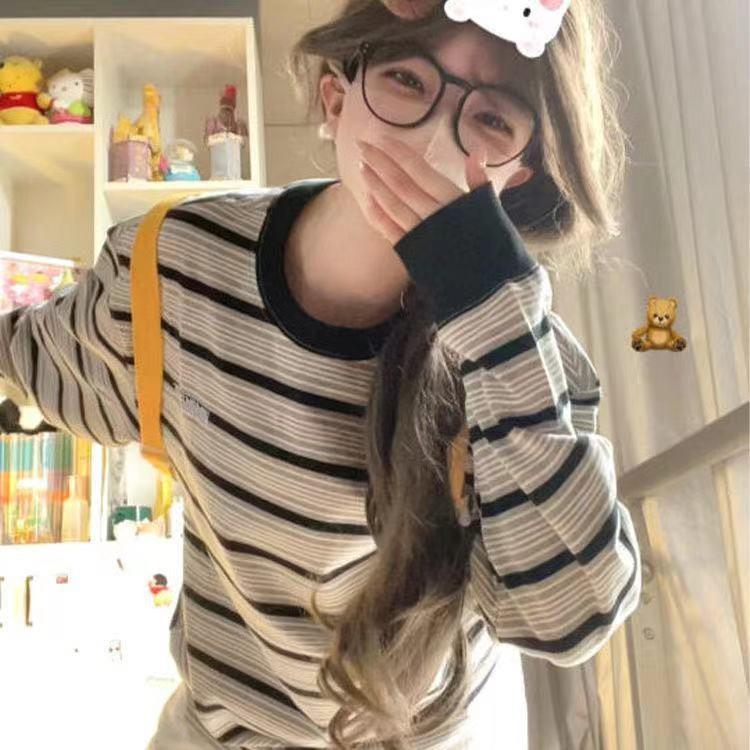 Camiseta casual de pareja retro americana a rayas en contraste de manga larga para mujer, top de estilo holgado y perezoso para primavera y otoño de 2024