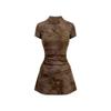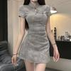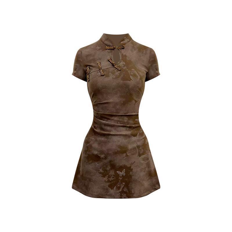 Nuevo Cheongsam Mejorado de Estilo Chino con Pliegues y Cuello Mao para Mujer 2024 Verano Nuevo Vestido Corto Ajustado
